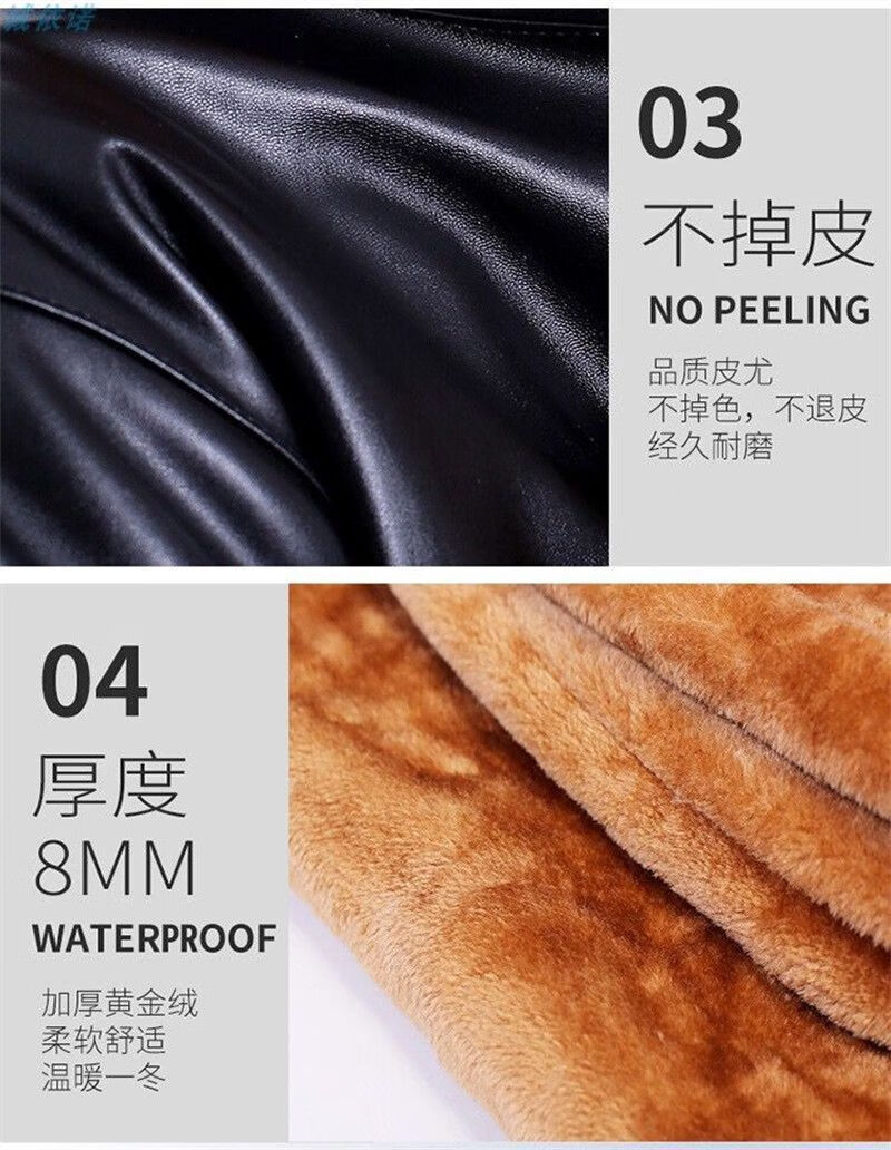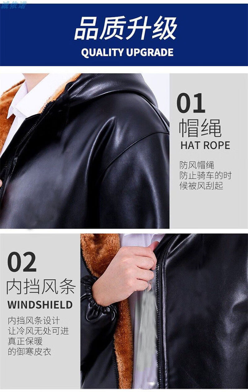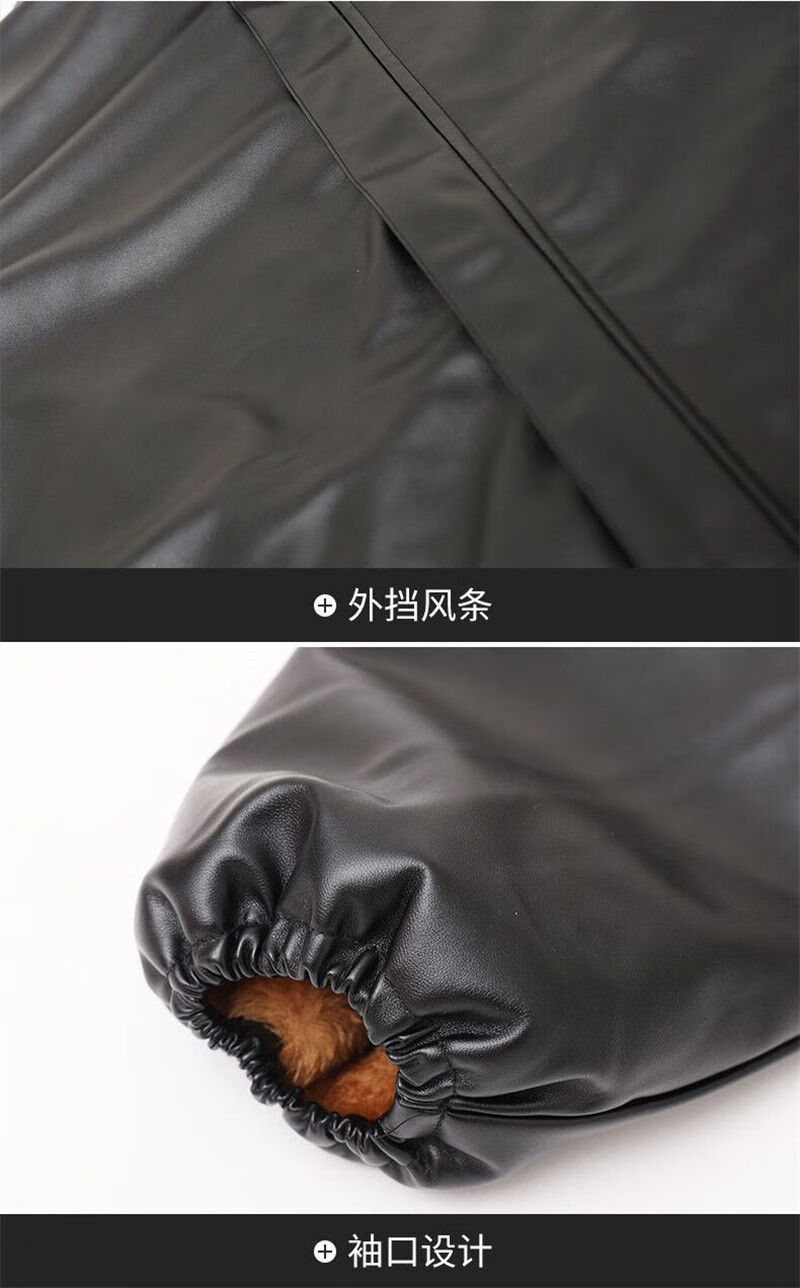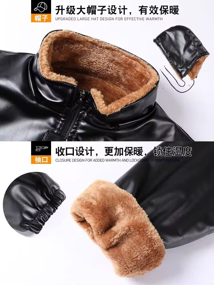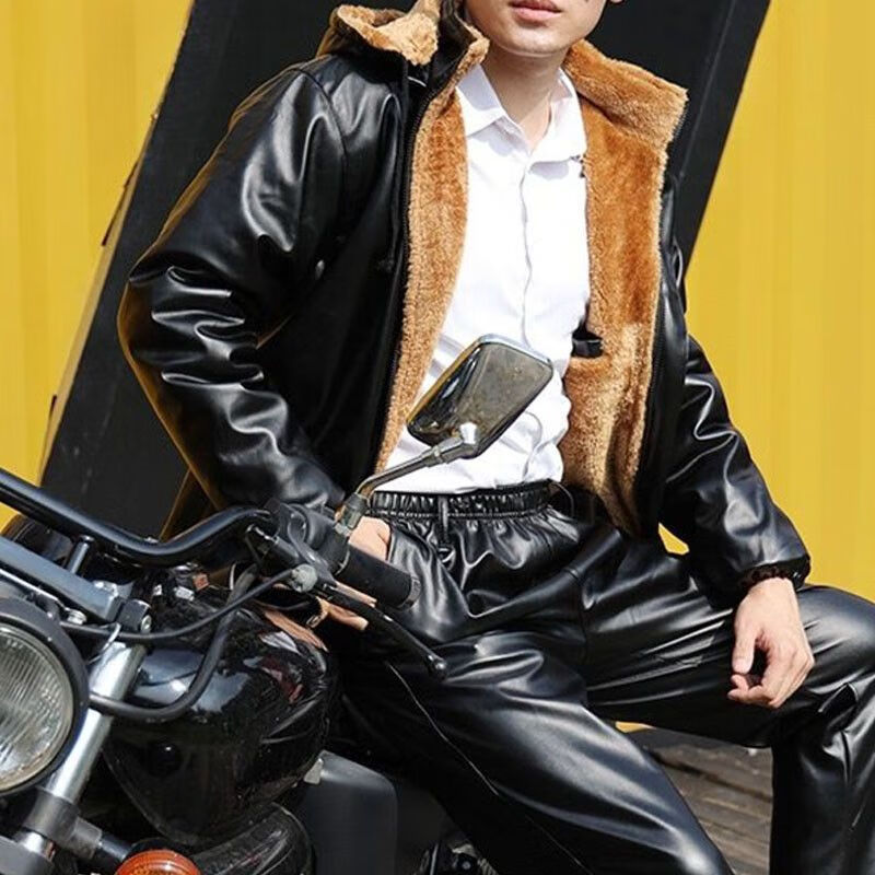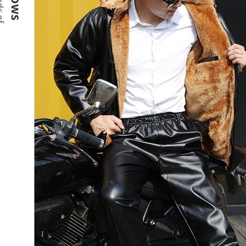 Qisiman Leather Jacket and Leather Pants Suit Men's Velvet Thickened Takeaway Rider Driving Windproof, Waterproof, Warm and Cold-Resistant Workwear Leather Cotton Jacket Plus Velvet Leather Top Thickened XL Recommended 100 to 130