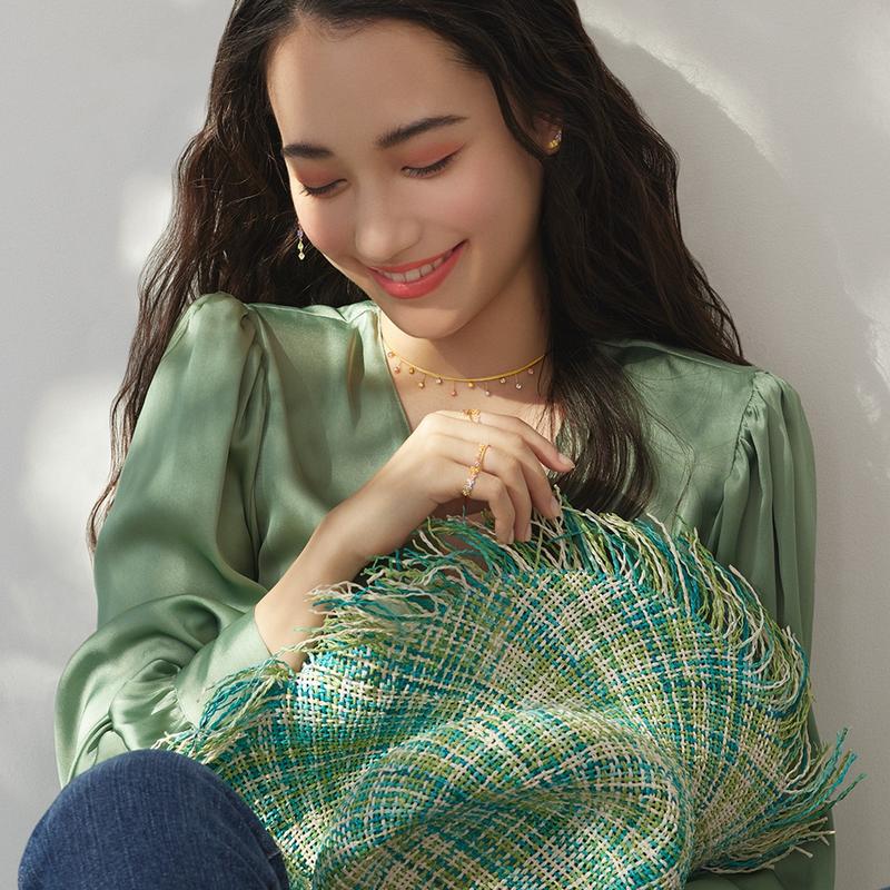 AHKAH women's ear clips are exquisite, elegant, fashionable and lightweight 18K gold pink topaz tanzanite yellow beryl picture color