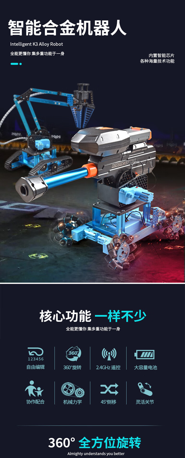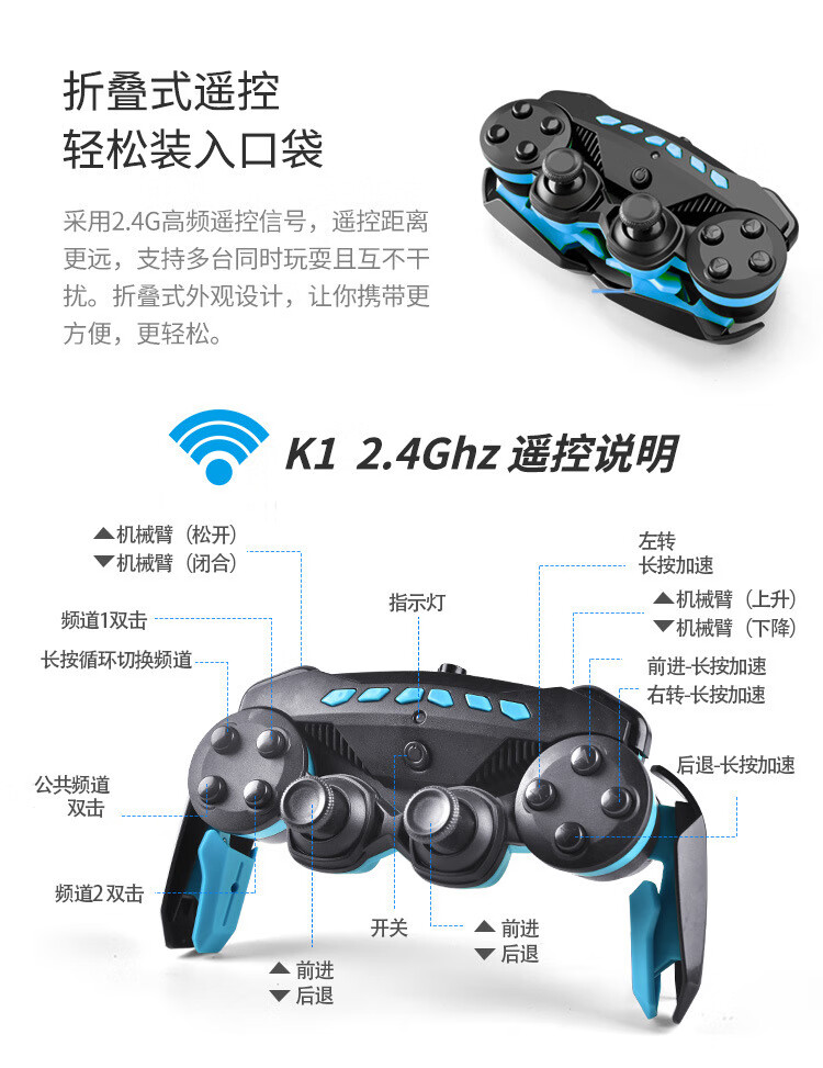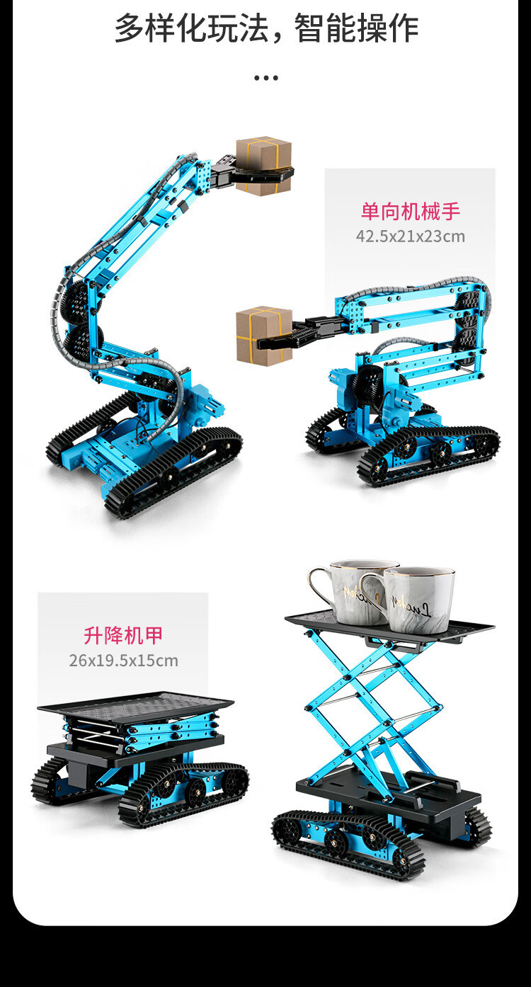 Huanyu (HUANYU) multifunctional stunt remote control robot high-tech children's alloy mechanical arm smart mecha car competition gift K2-alloy crawler lift mecha car-full version
