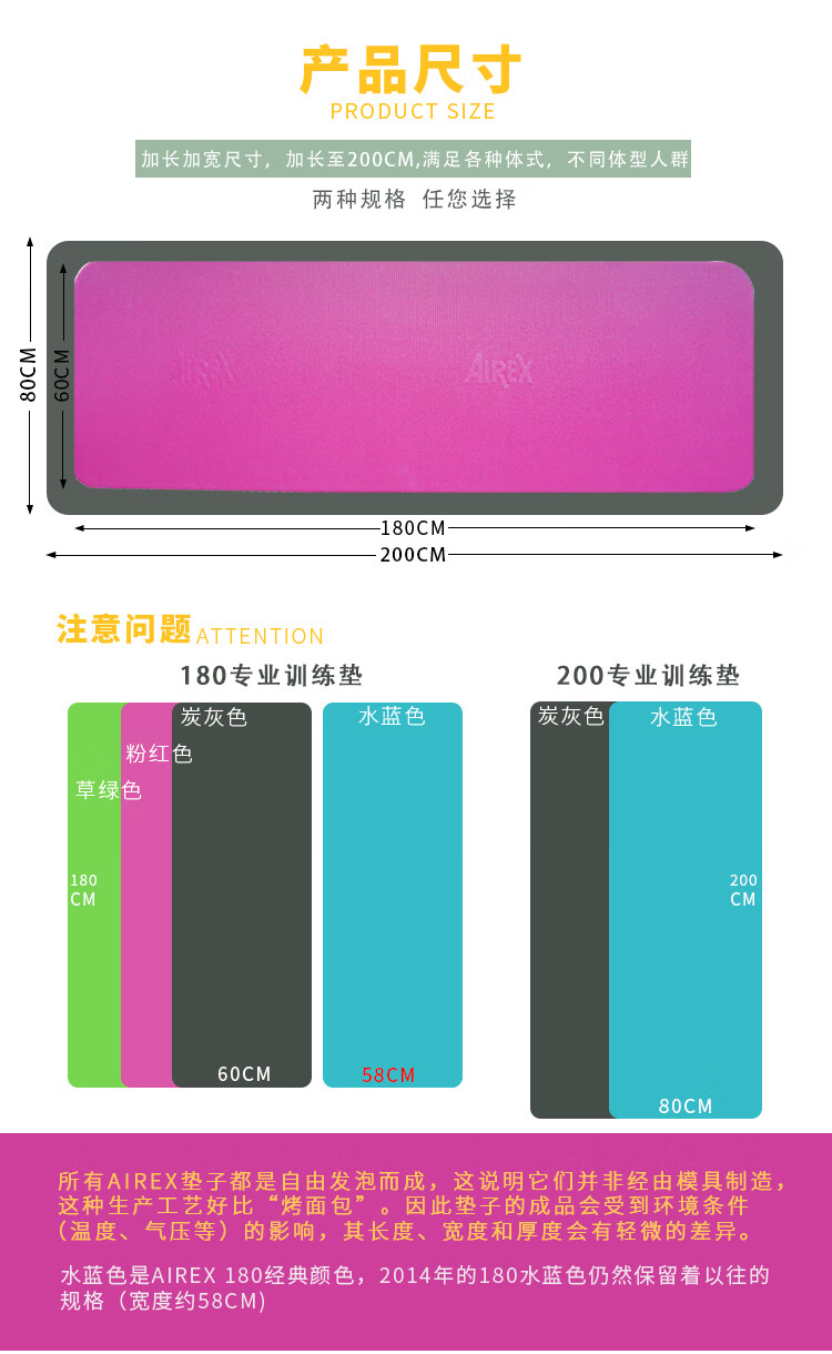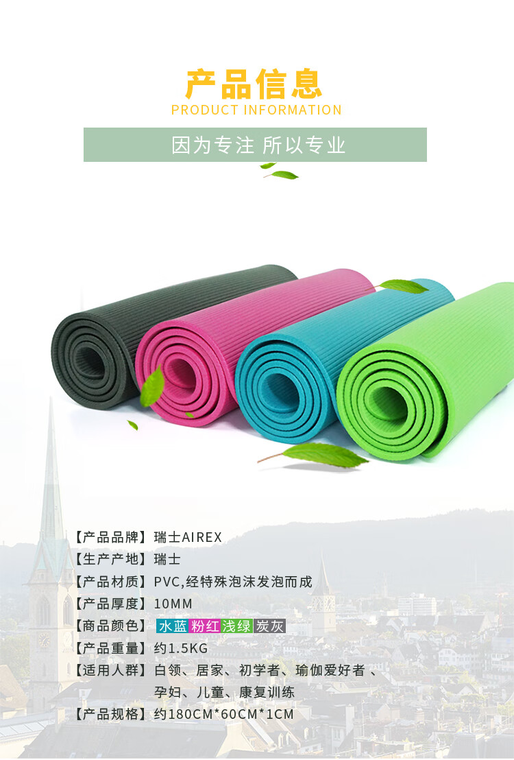AIREX Swiss AIREX Fitline180 training mat Pilates fitness mat imported shock-absorbing yoga mat Fitline180 training mat__charcoal gray 10mm (beginner)_180x60cm