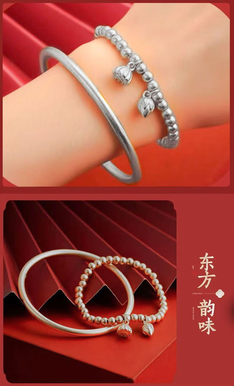 Miaojufu quality bracelet Two Worlds Happy Lotus Bracelet Silver Bracelet Valentine's Day gift for girlfriend Two Worlds Happy Bracelet (universal style) Inner diameter 58 mm (recommended 95-110 Jin Jin is equal to 0.5 kg)