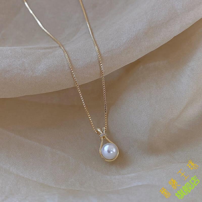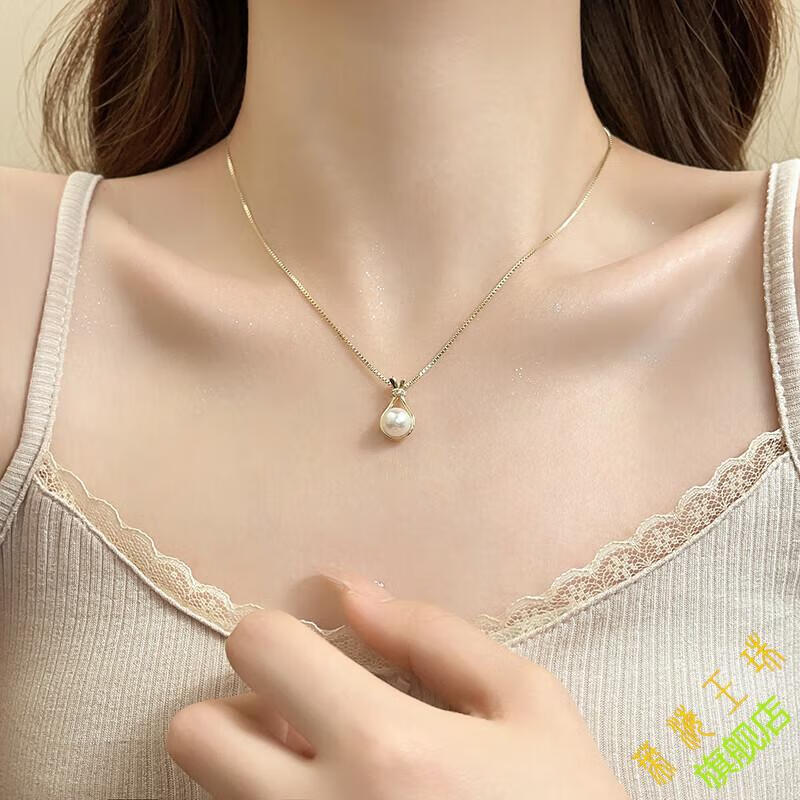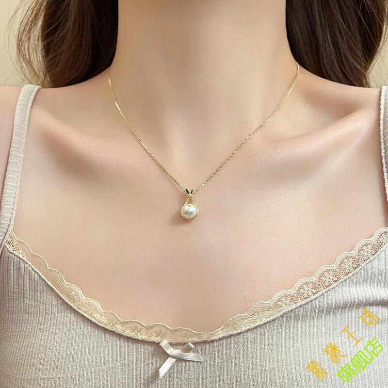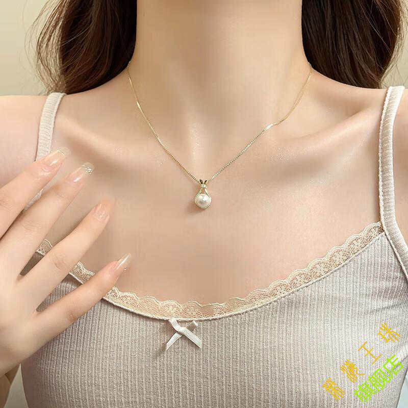 Kalain Seawater Pearl Pendant Lucky Bag Necklace Women's Niche Design Light Luxury Necklace 20 Bag Pearl Necklace Bag Pearl Necklace