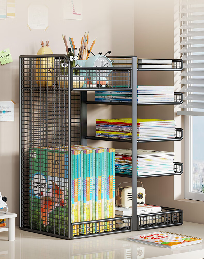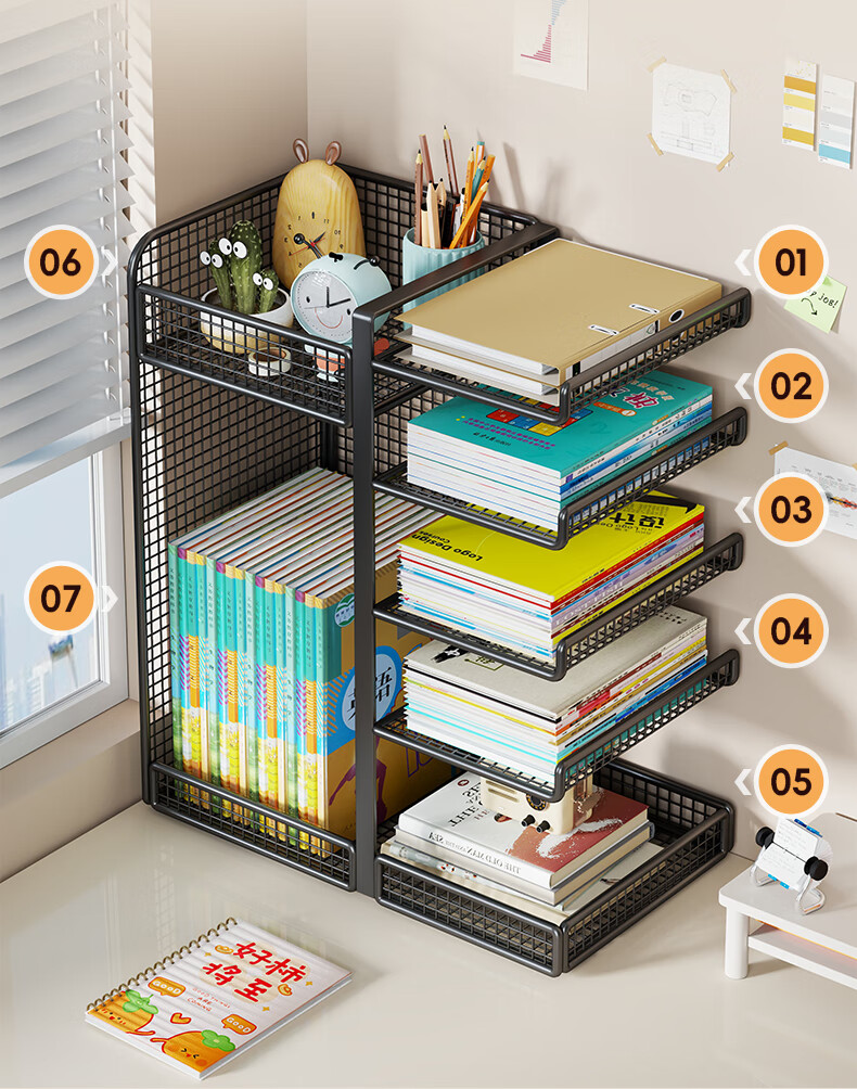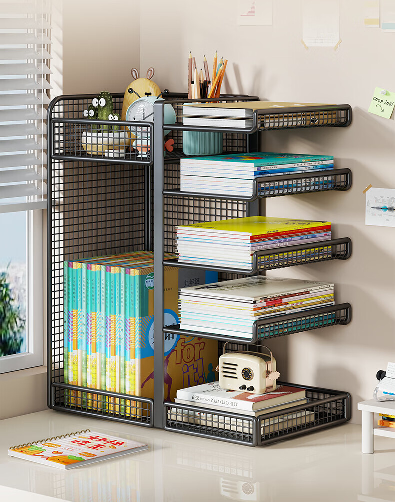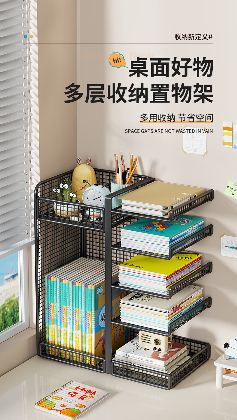 Lin's boy subject classification storage rack desktop bookshelf desk book storage with wheels removable bookend layered rack storage rack white
