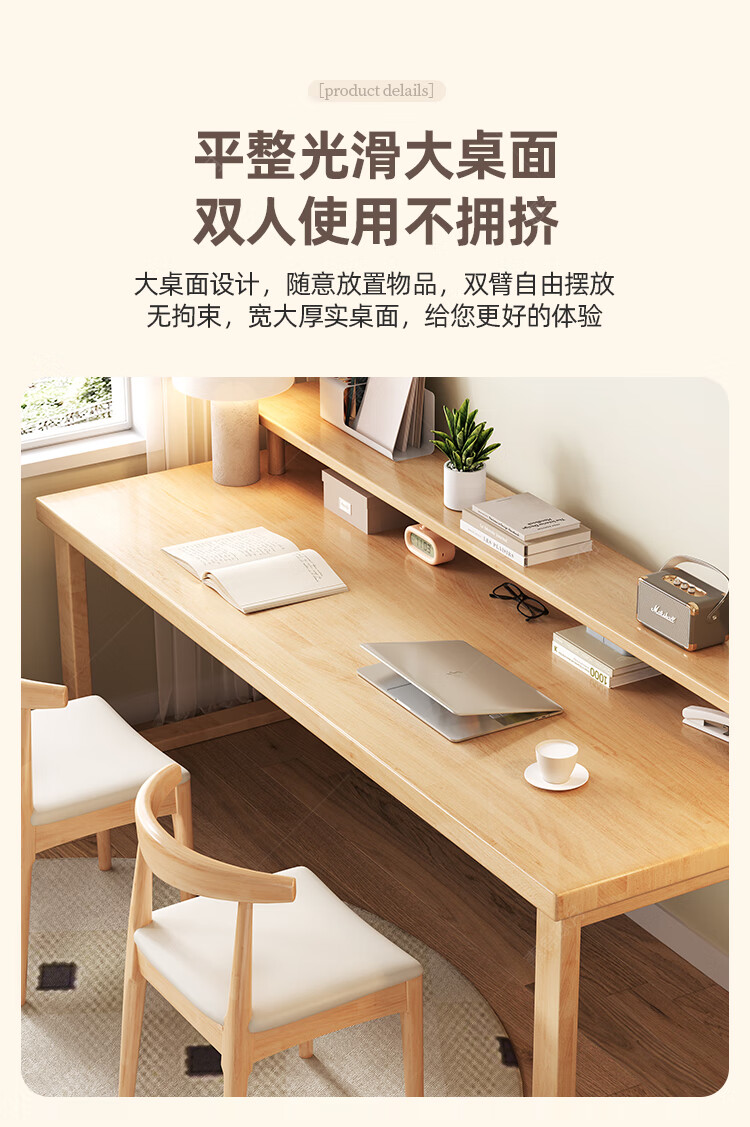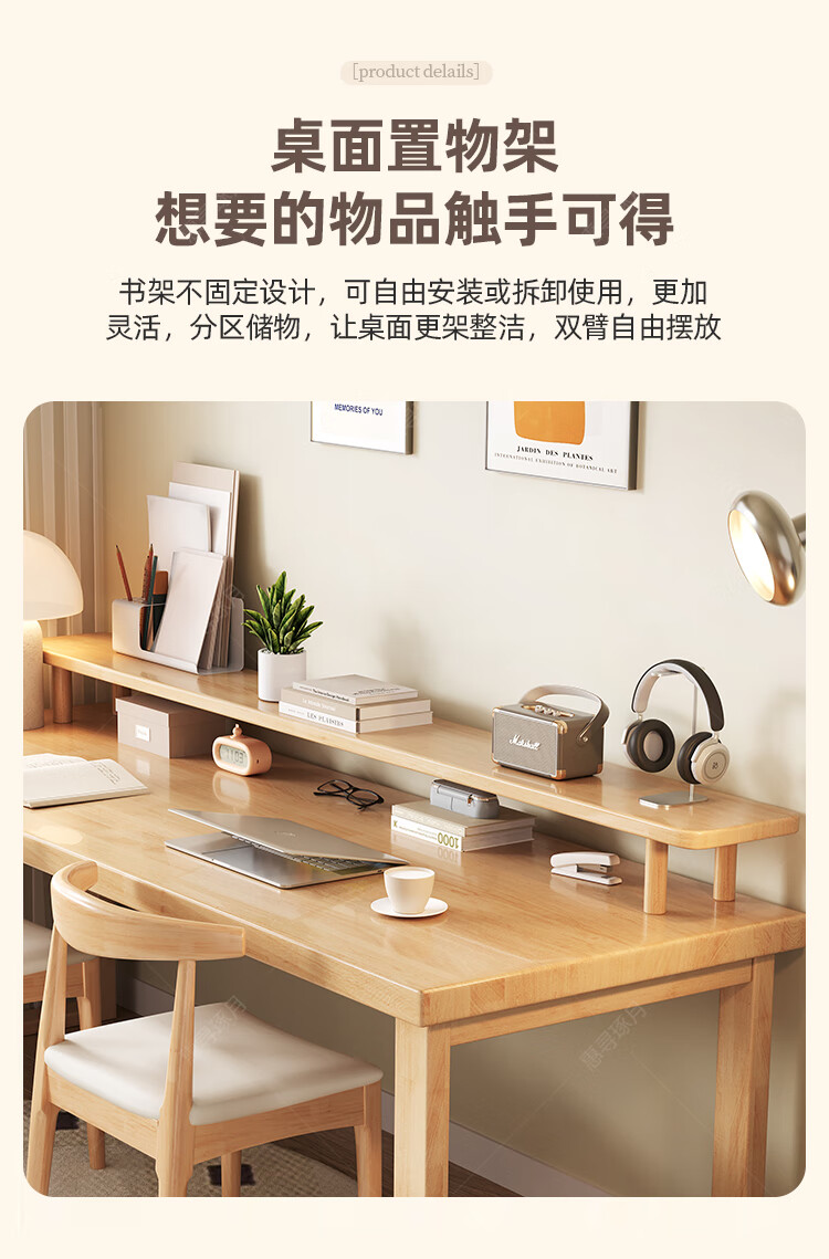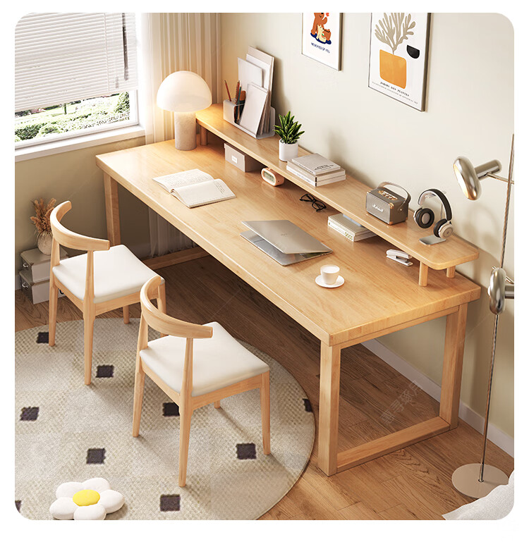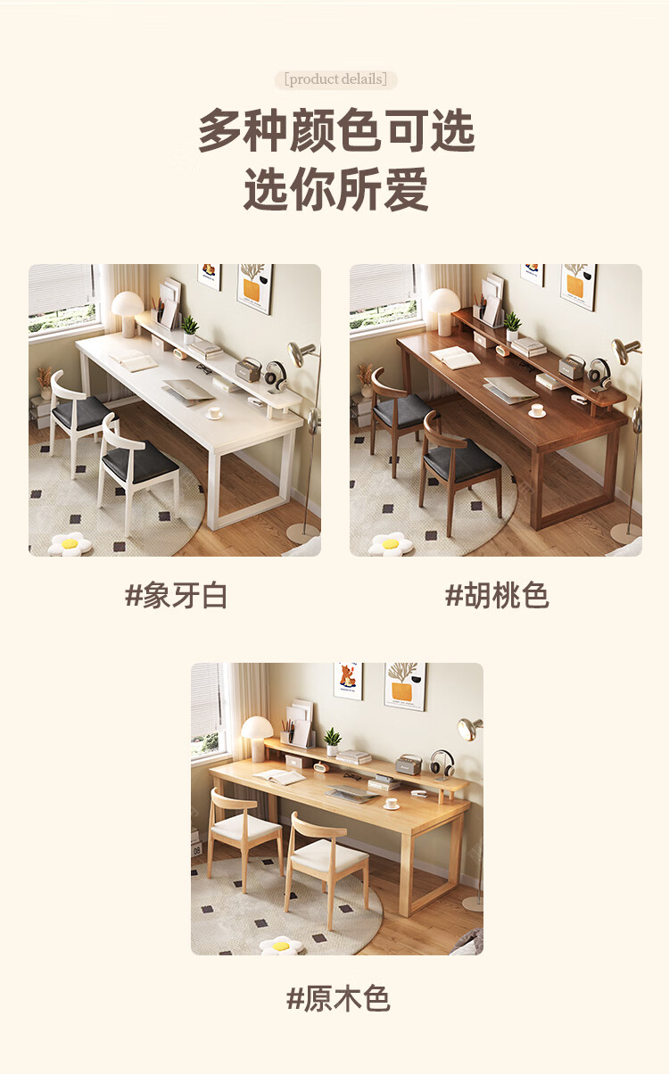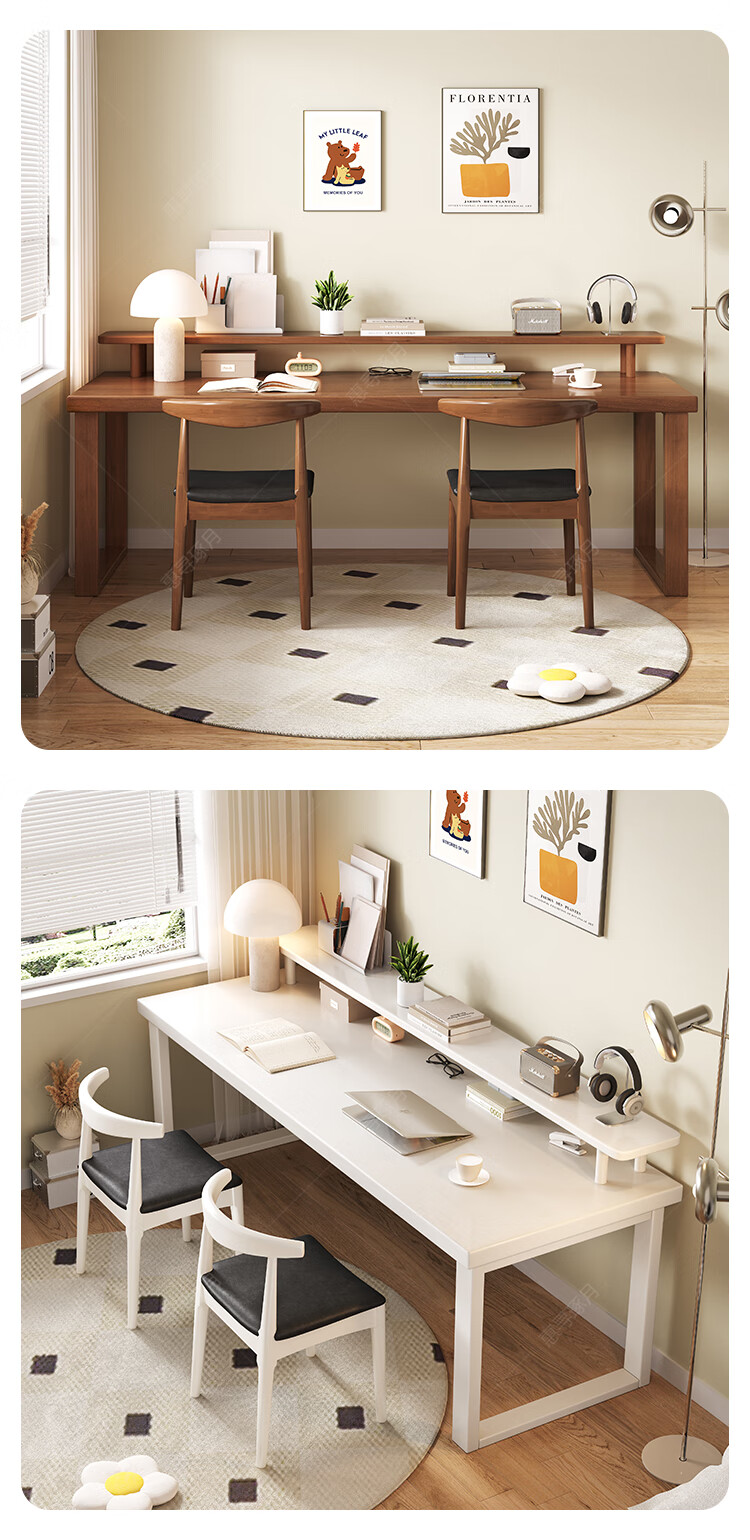 Huixun pure solid wood double desk with bookshelf simple computer desk home desk wall workbench long large table walnut #desk + C bookshelf 100cm*60cm*75cm