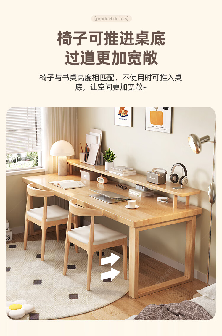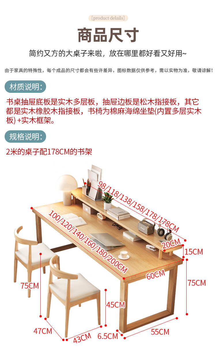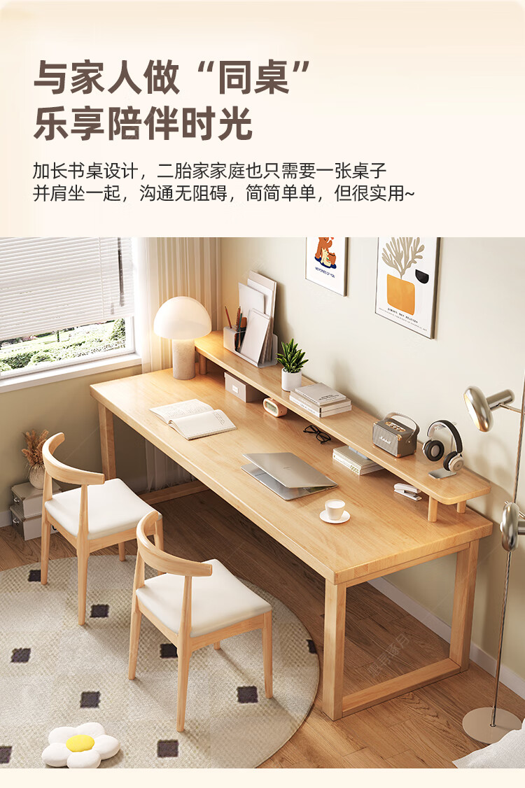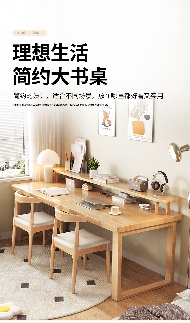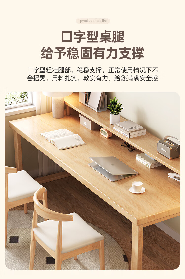 Huixun pure solid wood double desk with bookshelf simple computer desk home desk wall workbench long large table walnut #desk + C bookshelf 100cm*60cm*75cm