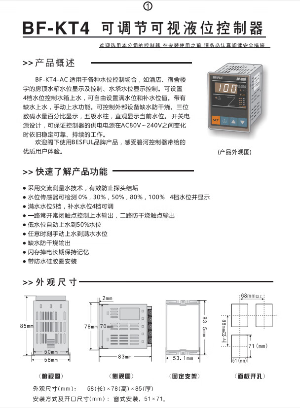 Bihe BF-KT4 water level controller water pump water tank intelligent digital display fully automatic 220V water supply level switch BF-KT4 single meter