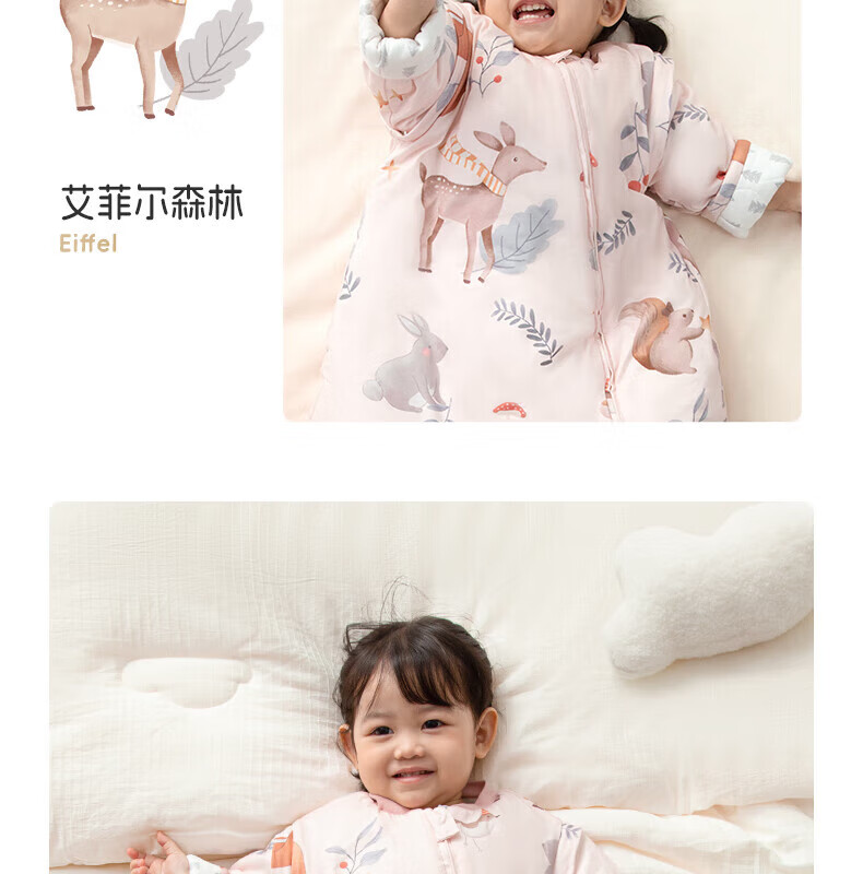 Bei Chuzhong baby sleeping bag spring, autumn and winter 0-1-3 years old baby 2 all-in-one thickened pure cotton anti-cold anti-kicking quilt anti-jumping thickened autumn and winter-Eiffel Forest-Pink Intelligent temperature measurement room temperature 0-15 M size Height 65-80cm Recommended age 9 months-2 years