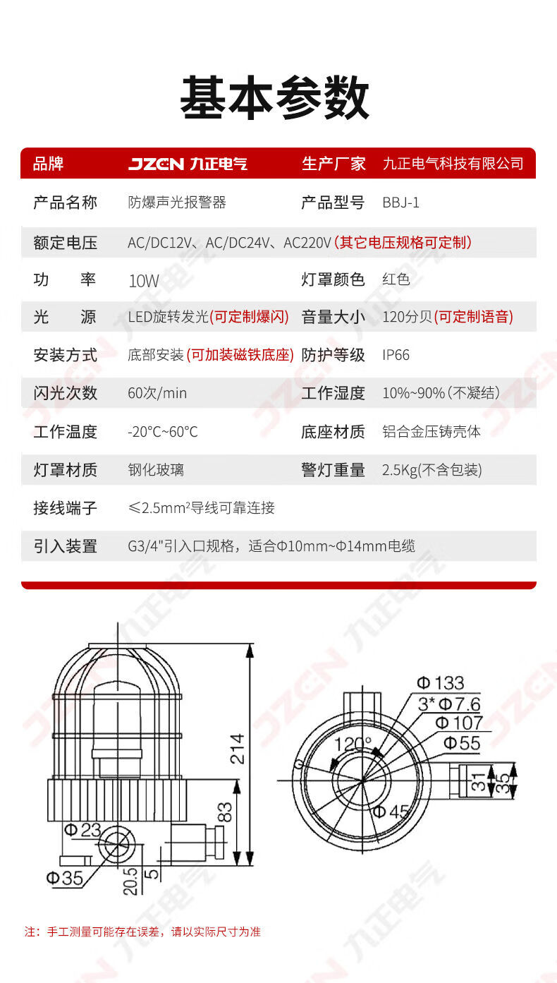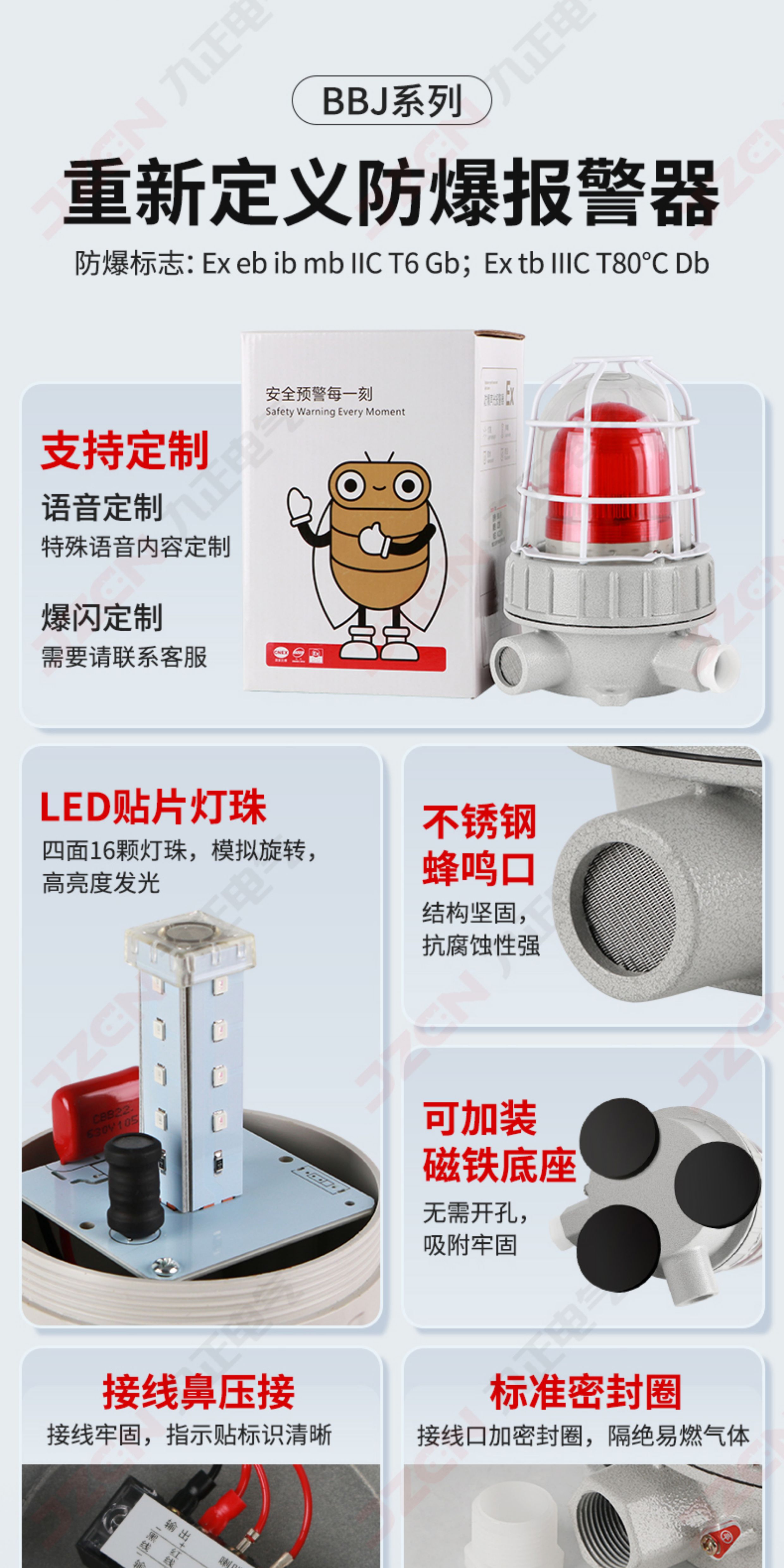 BBJ explosion-proof sound and light alarm 24V explosion-proof alarm light 220V industrial mine warning flashing light (gray base) explosion-proof sound and light type BBJ-1 24V