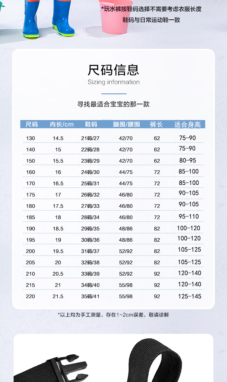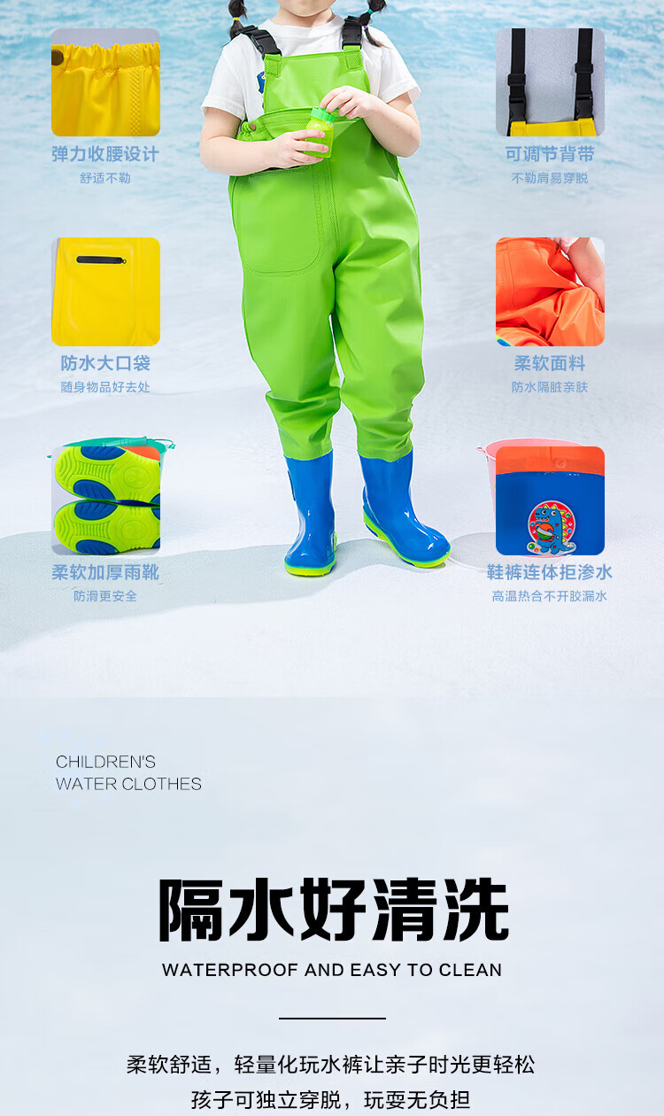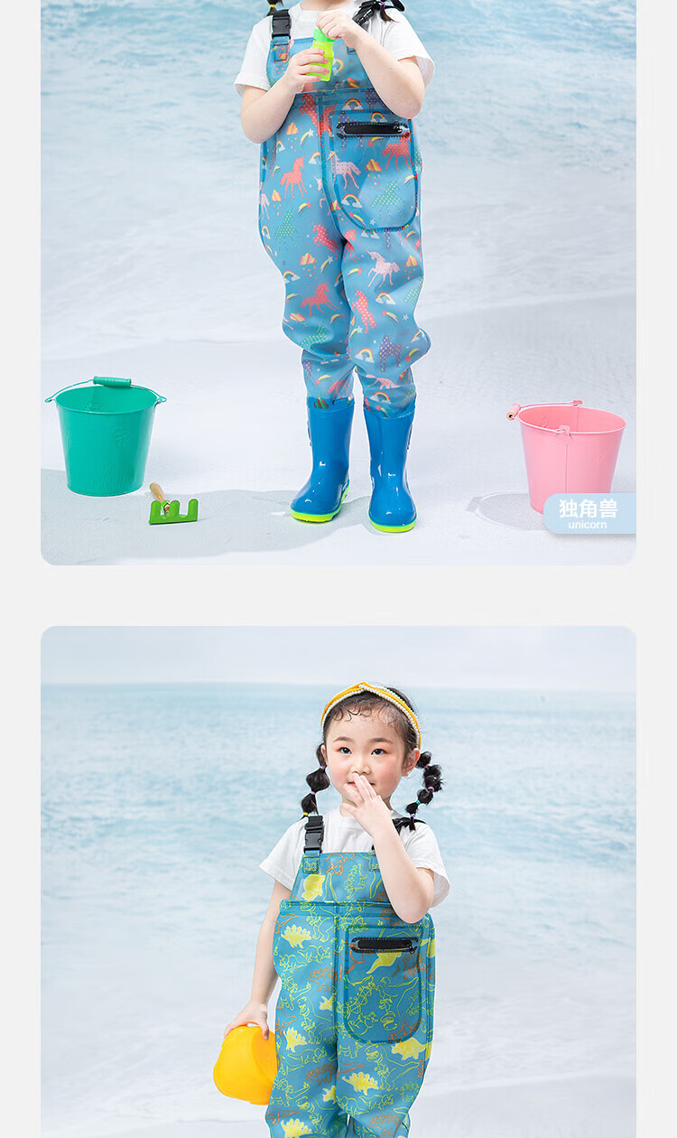 Jiaojing Children's Water Play Jumpsuit Kindergarten Waterproof Clothes Men and Women Rain Shoes Catching Fish Rain Pants Beach Size 21 Children's Pink Overalls (Pocket) Size M 30 (Shoe Inner Length 19c)