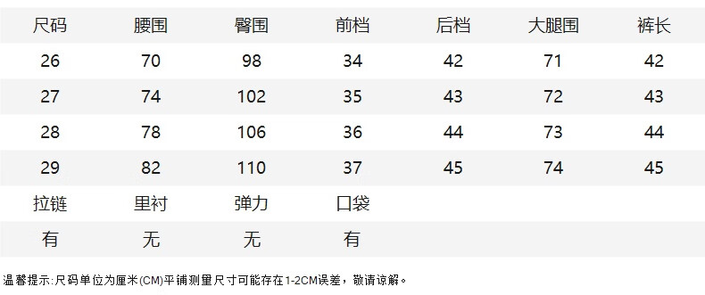 Outseam (cm) 99 cm 101.5 cm 104 cm 106.5 cm 109 cm