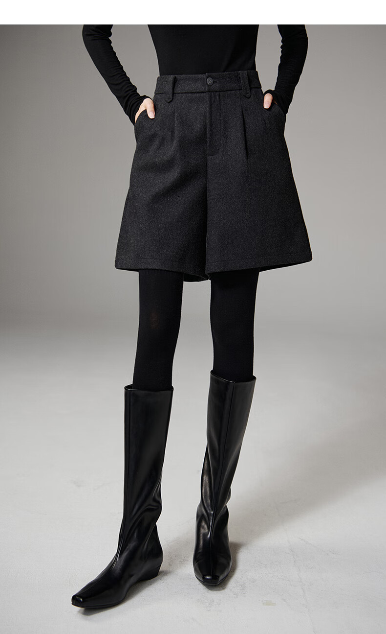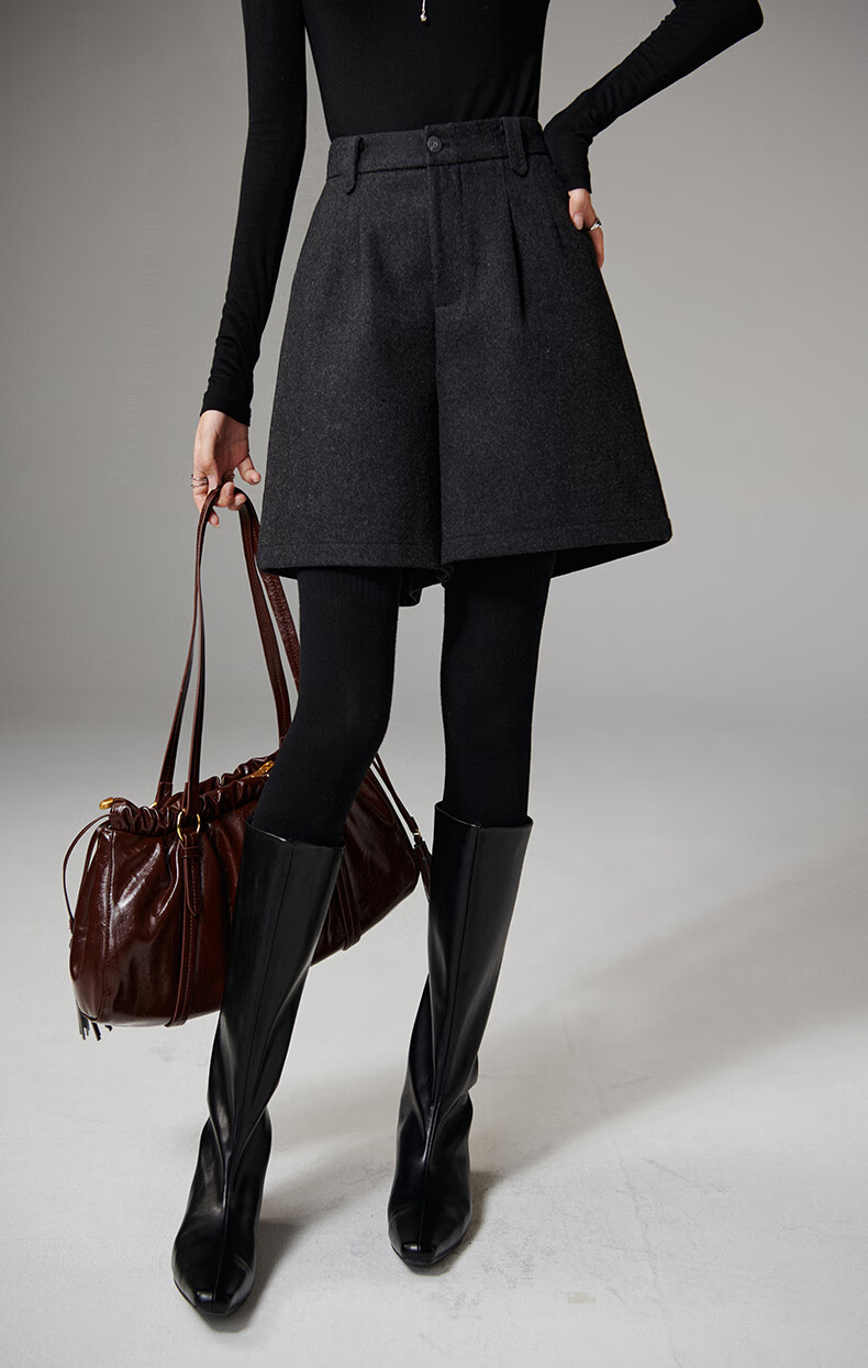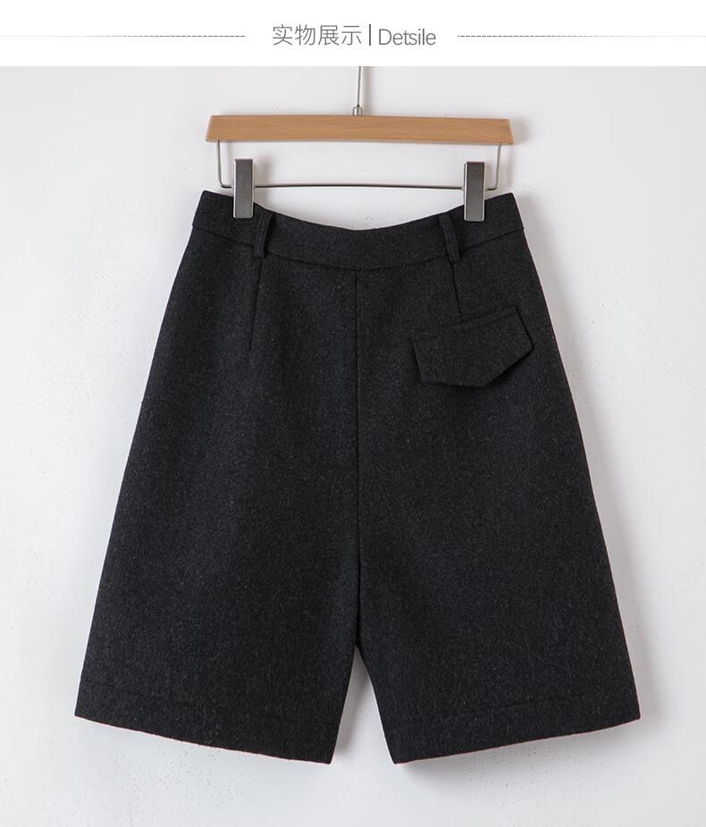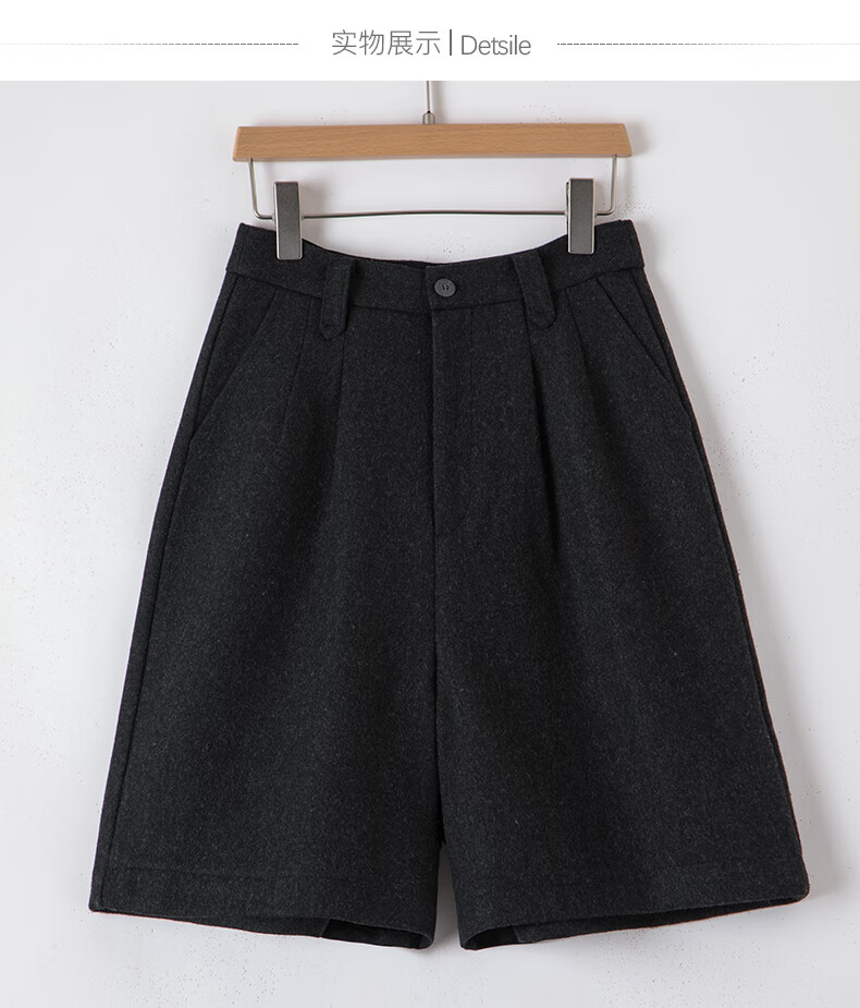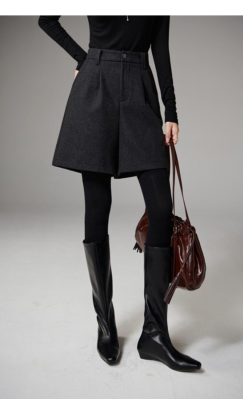 Late White New Product 2025 Winter Temperament Sheep Wool Skirts Simple and Elegant High Waist Casual Woolen Shorts Boot Pants Women Dark Gray 28