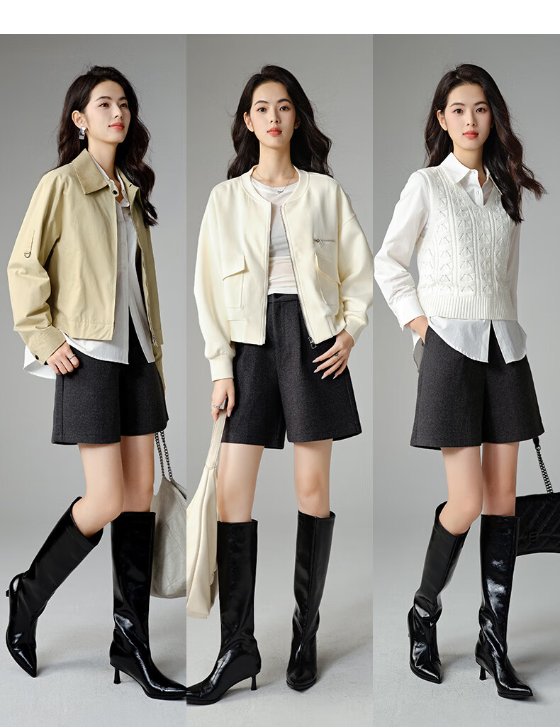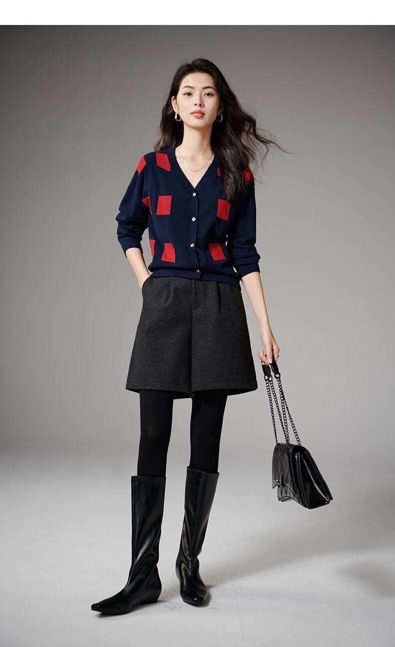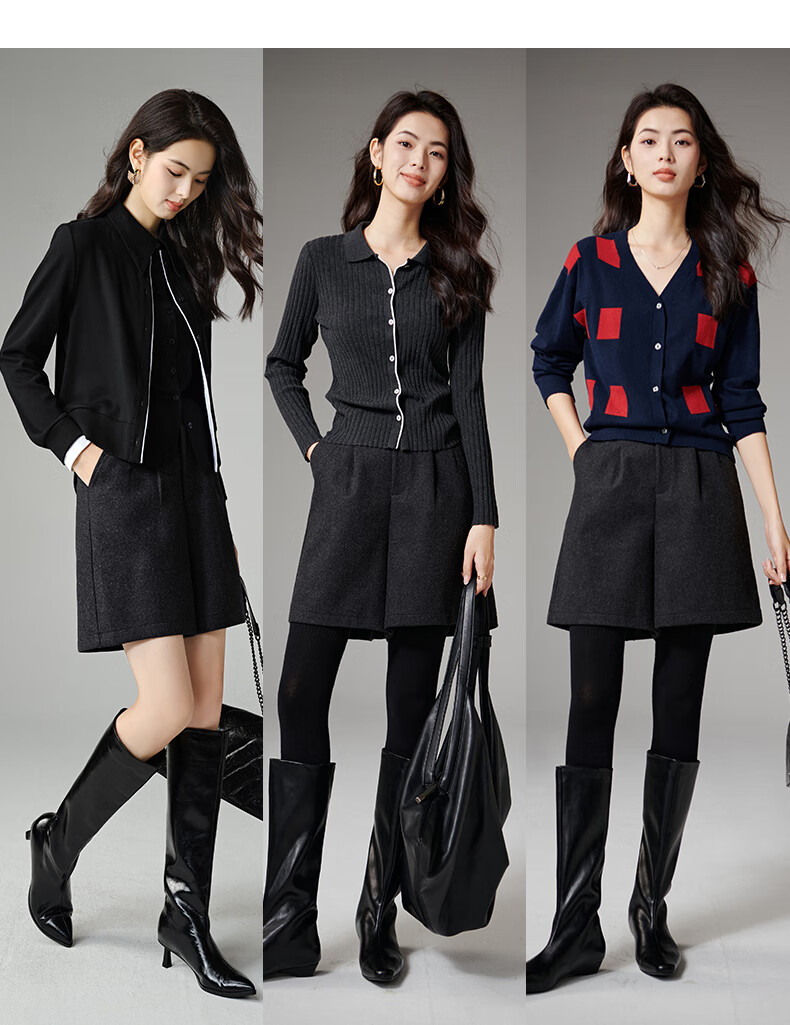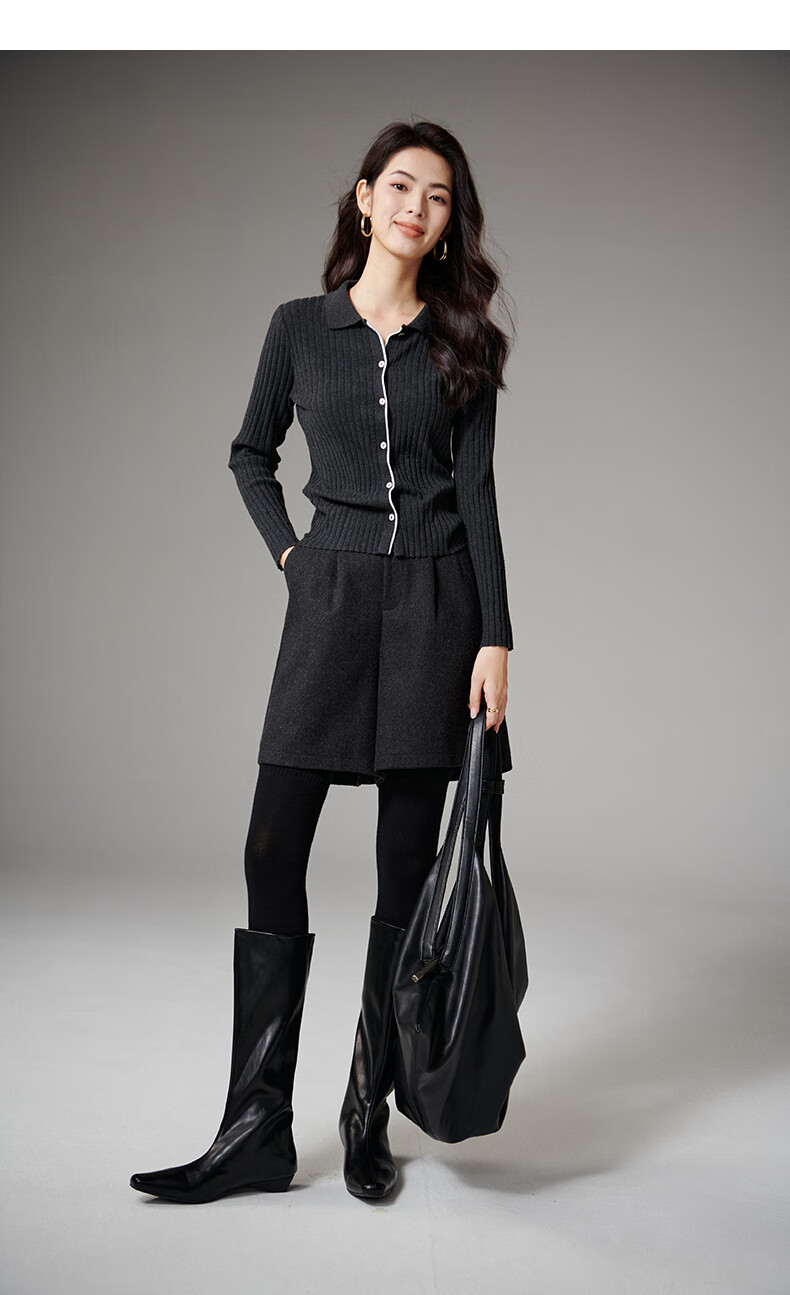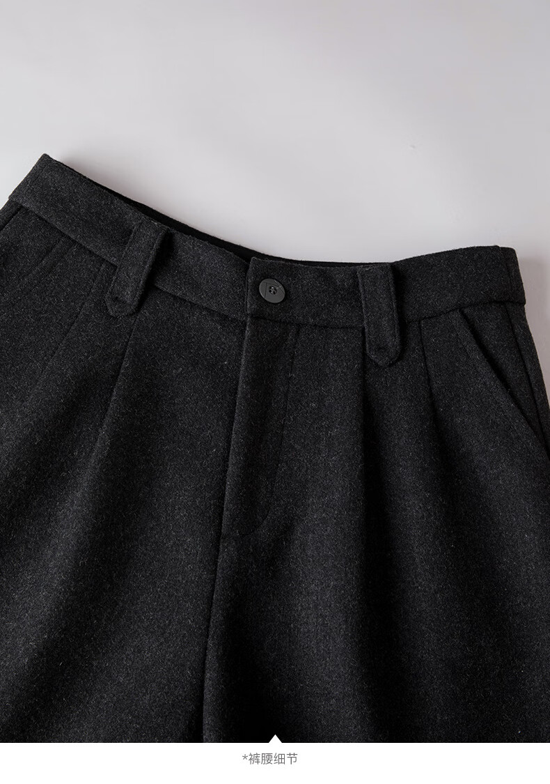 Late White New Product 2025 Winter Temperament Sheep Wool Skirts Simple and Elegant High Waist Casual Woolen Shorts Boot Pants Women Dark Gray 28