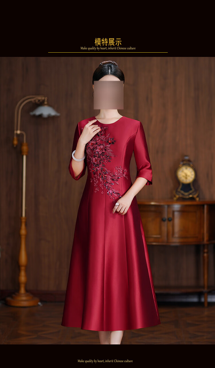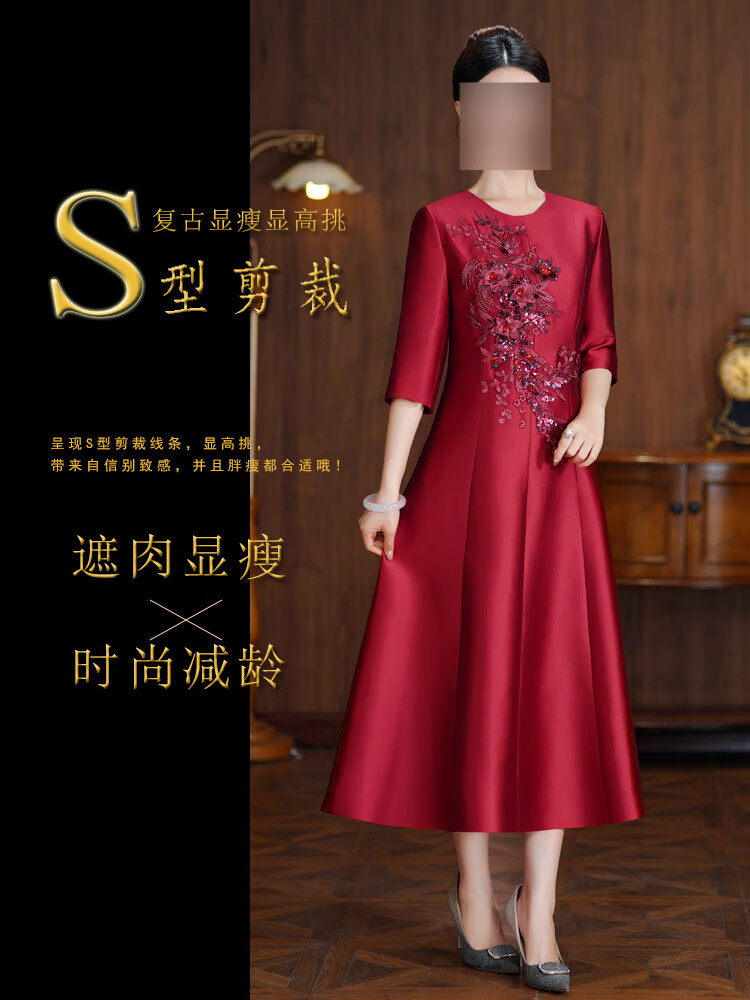 Xiaohanlu Xi's grandma's wedding banquet dress plus size new mother's wedding improved cheongsam spring dress is elegant and can be worn at ordinary times champagne color 8010 M (95Jin Jin is equal to less than 0.5 kg)