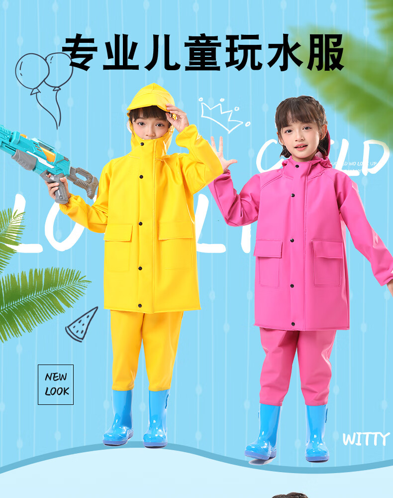 Children's full body water play one-piece waders, kindergarten waterproof clothes, fishing equipment, men's and women's rain pants beach, children's yellow overalls + yellow jacket M 25_ (shoe inner length 16c)