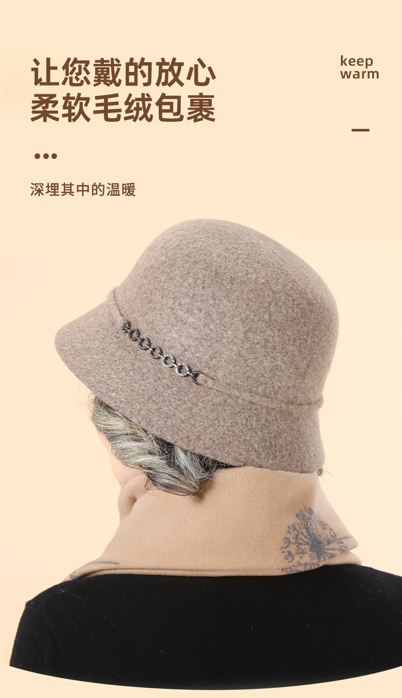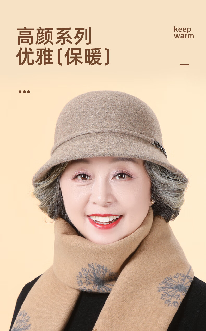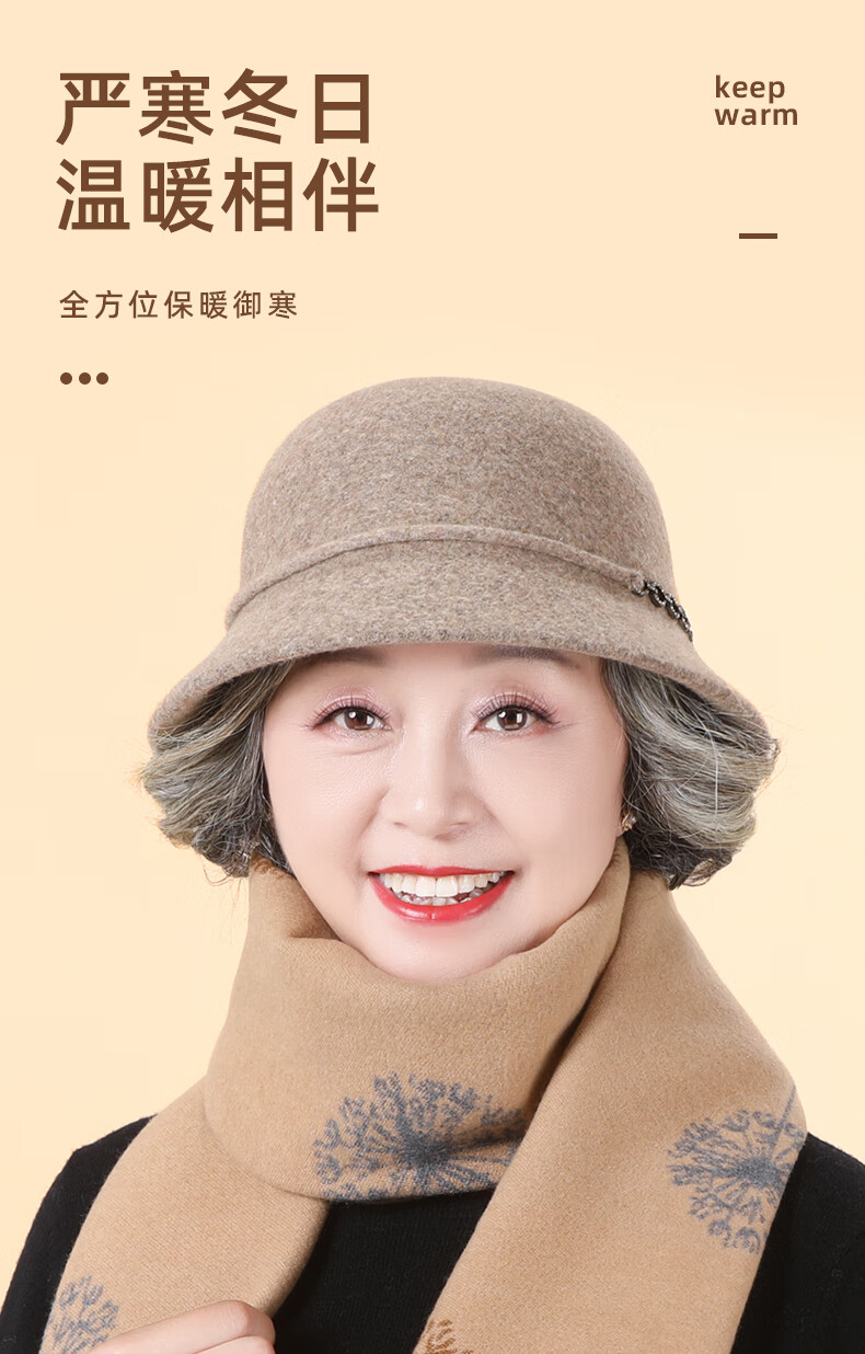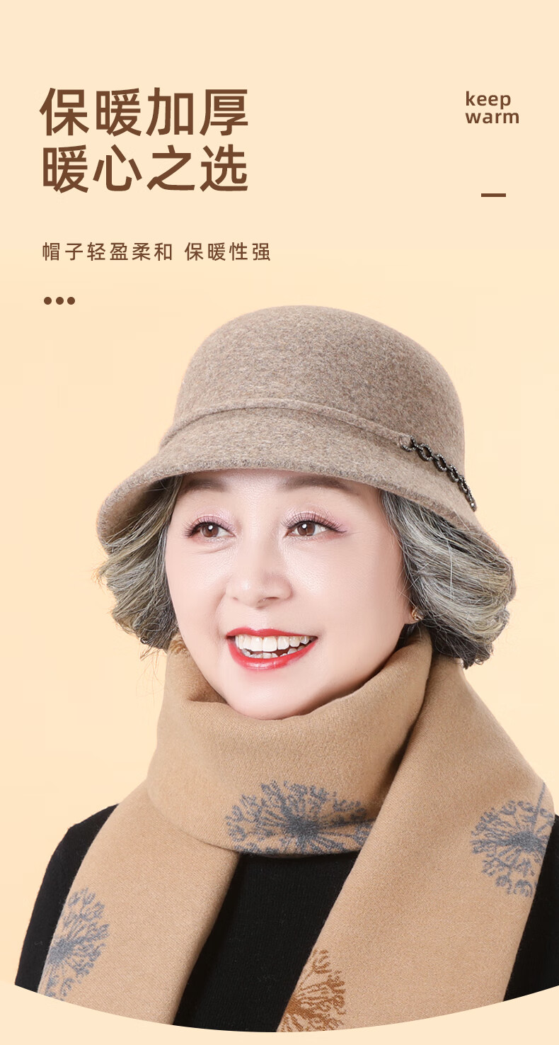 SOMUBAY (SOMUBAY) middle-aged and elderly women's new style wool hat mom hat autumn and winter thickened warm temperament fisherman hat camel one size (56-58cm)