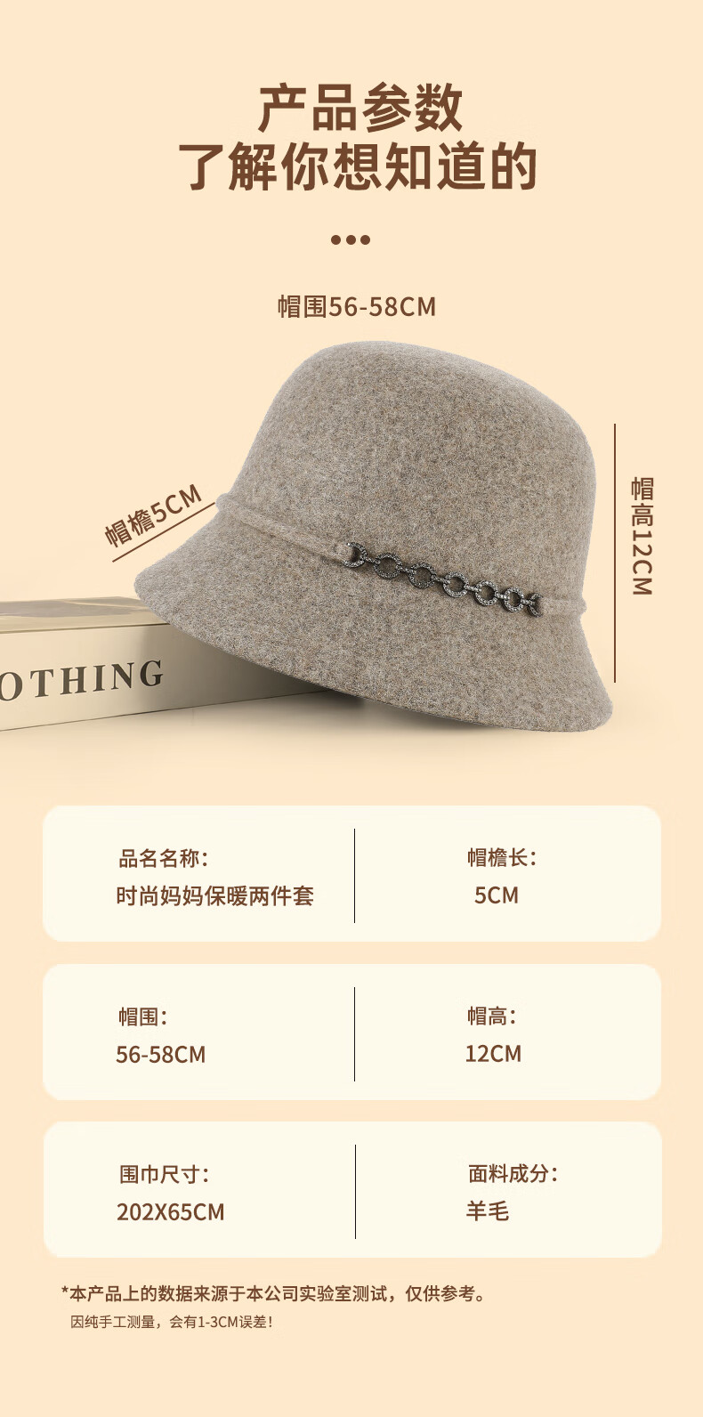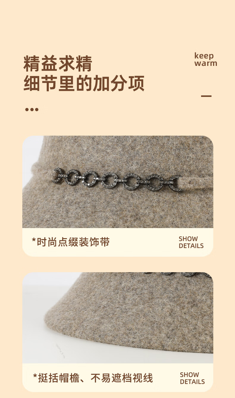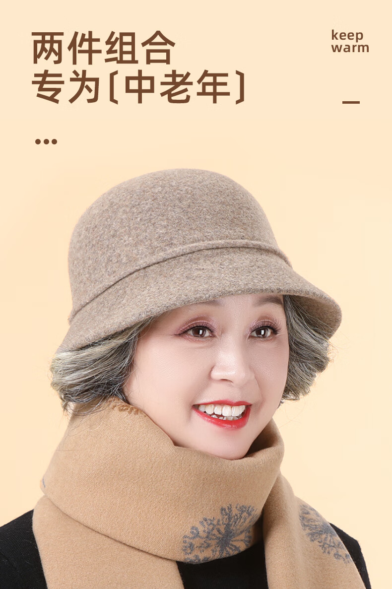 SOMUBAY (SOMUBAY) middle-aged and elderly women's new style wool hat mom hat autumn and winter thickened warm temperament fisherman hat camel one size (56-58cm)