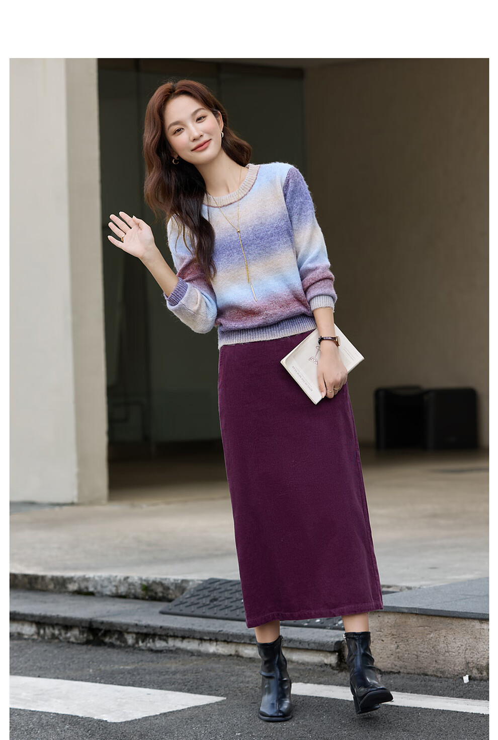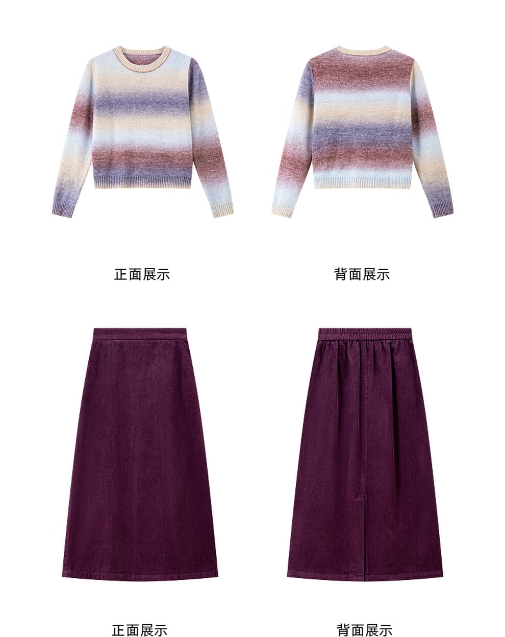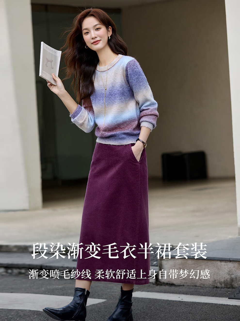 Fanximan Gradient Purple Sweater Skirt Set Women's 25th Autumn New Round Neck Sweater Long Skirt Two-piece Set A2539 Gradient Purple L (Recommended 110-120 Jin Jin equals 0.5 kg)