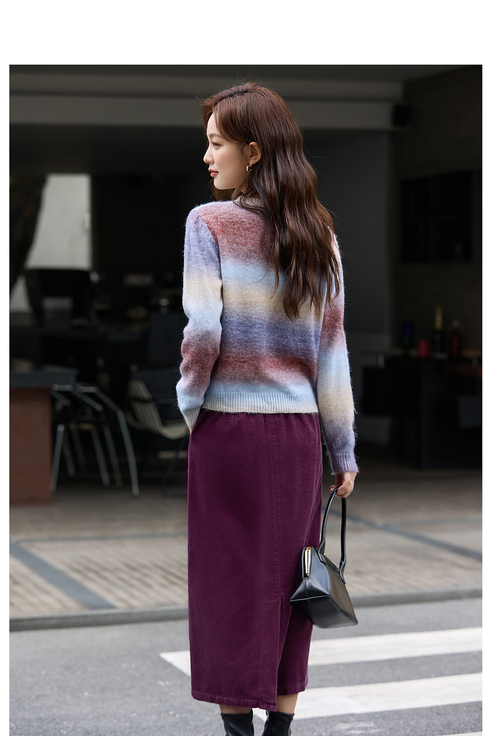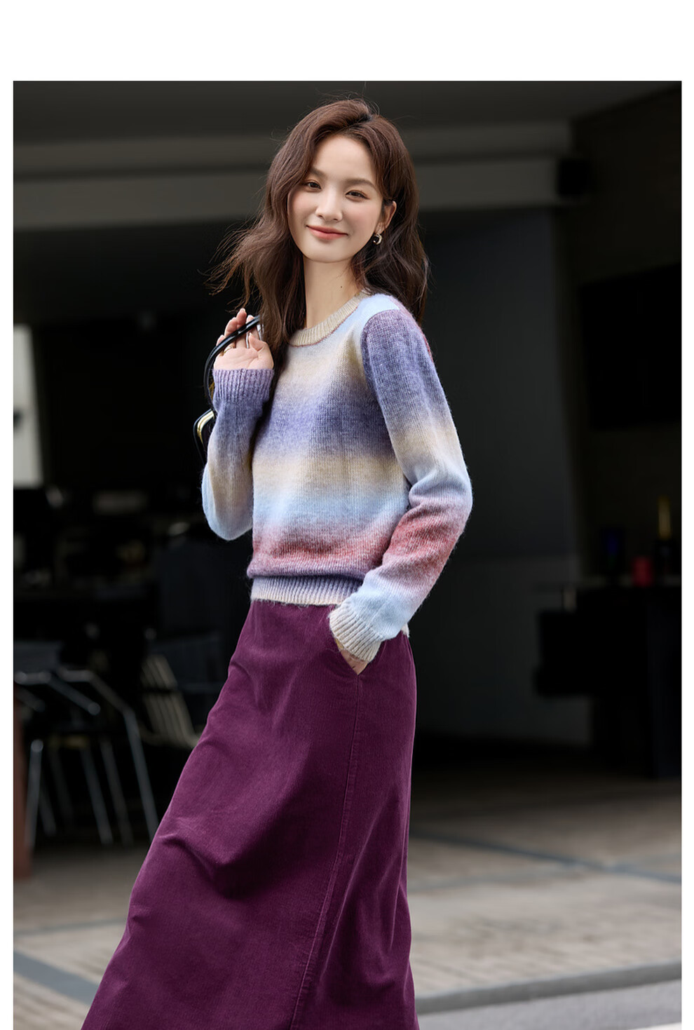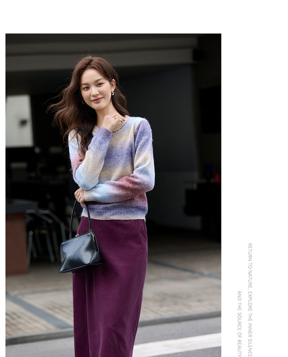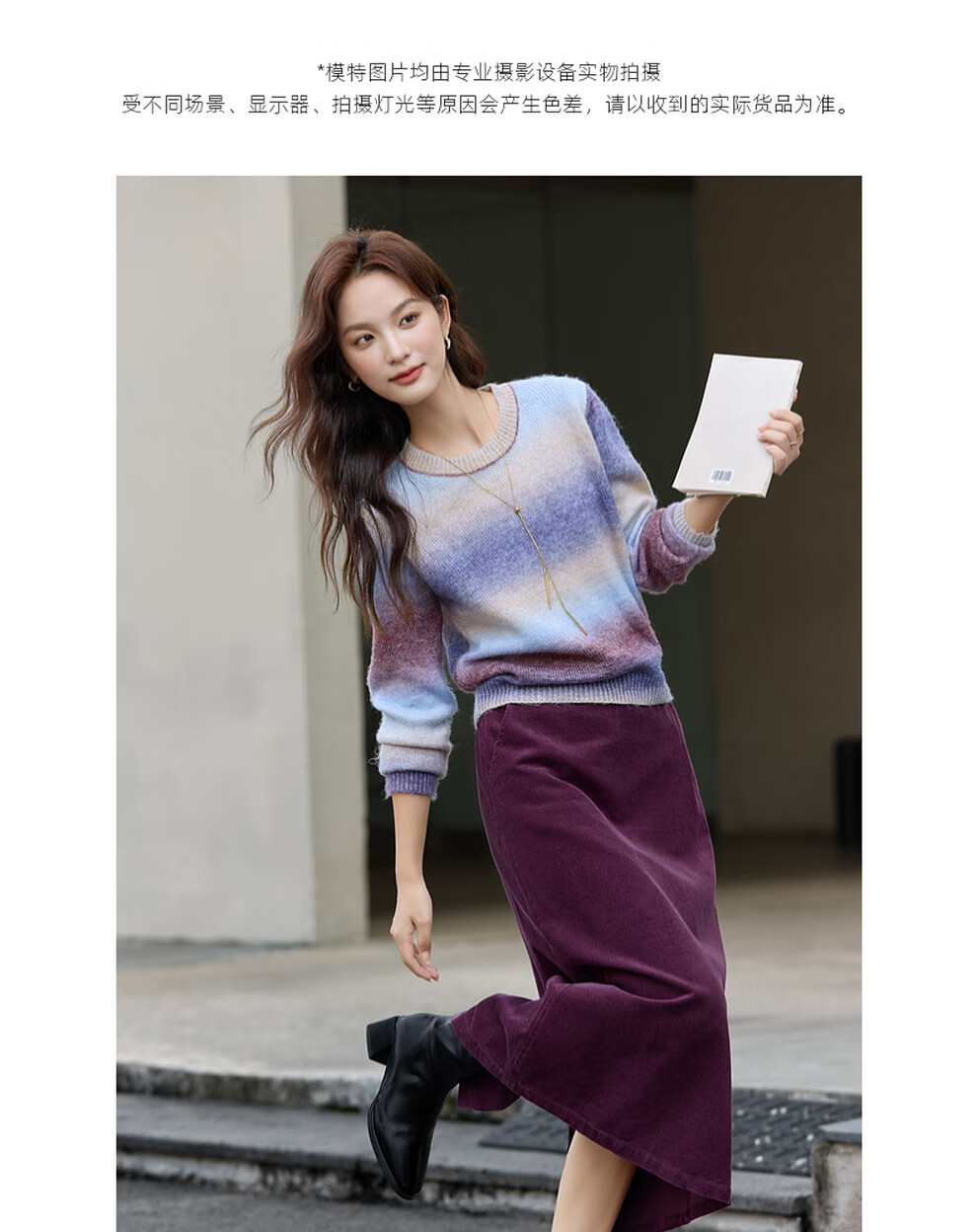 Fanximan Gradient Purple Sweater Skirt Set Women's 25th Autumn New Round Neck Sweater Long Skirt Two-piece Set A2539 Gradient Purple L (Recommended 110-120 Jin Jin equals 0.5 kg)