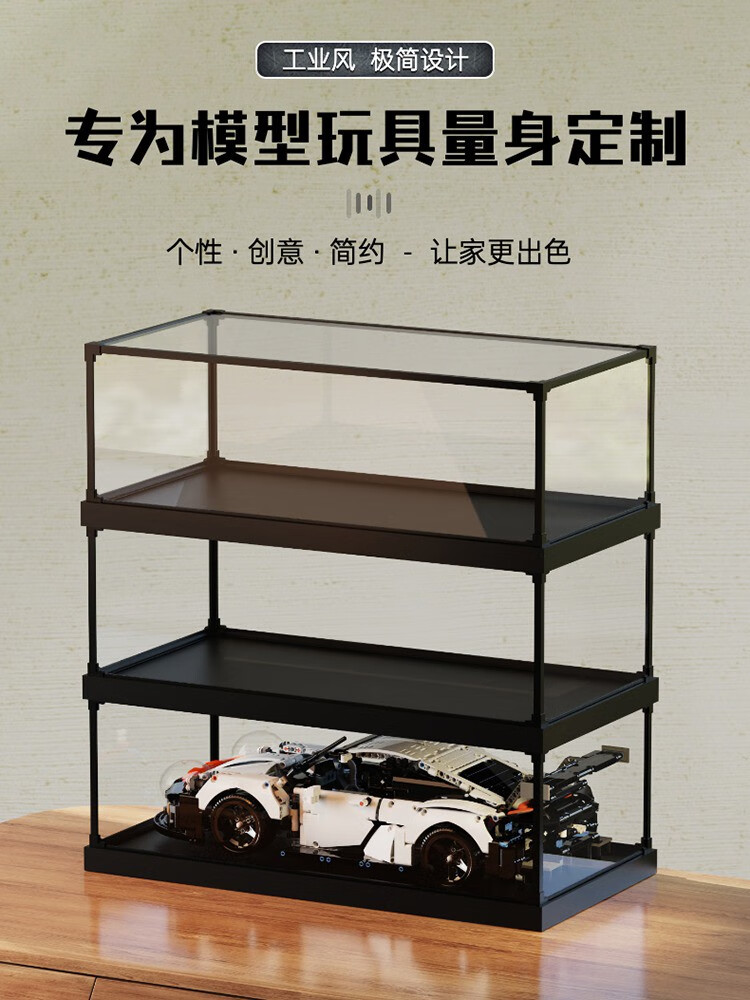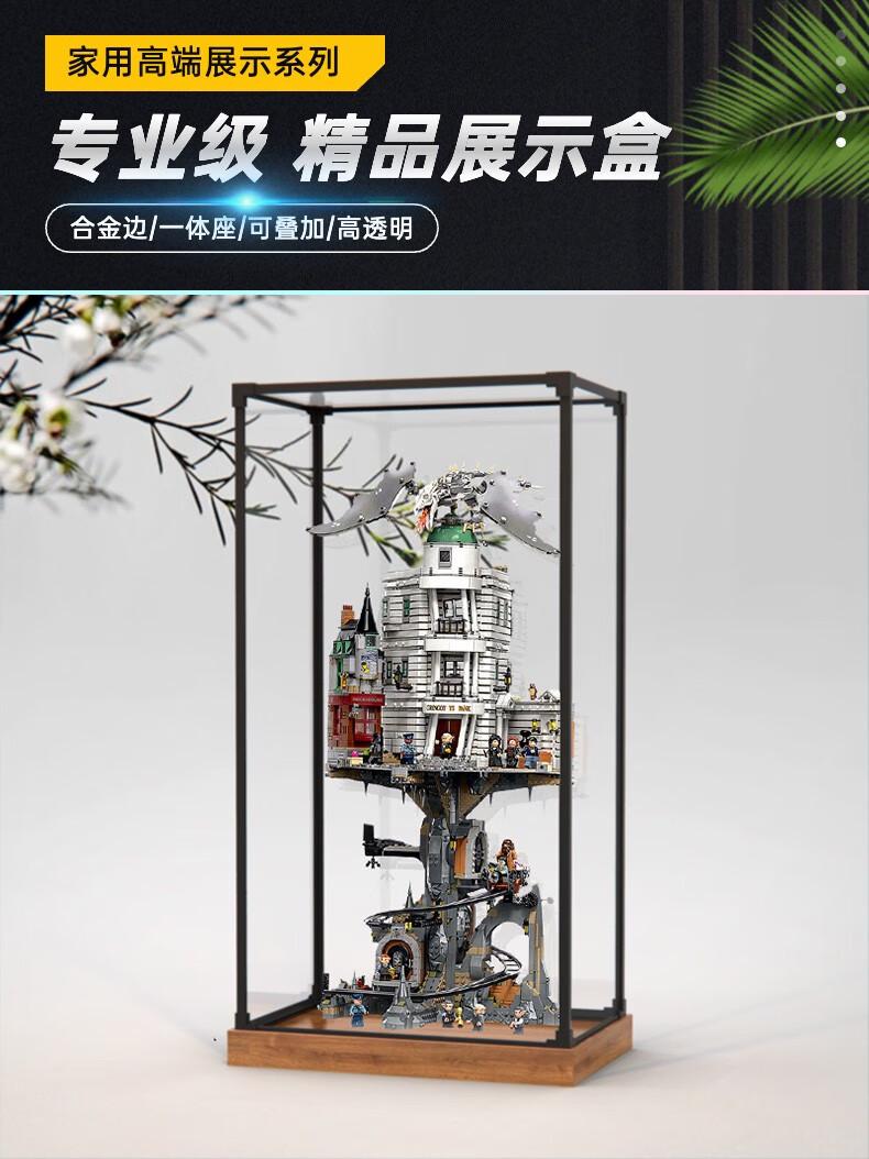 Acrylic display box suitable for LEGO 76417 Gringotts Harry Potter Wizard Bank building block dust cover box alloy frame and elevated wood grain base