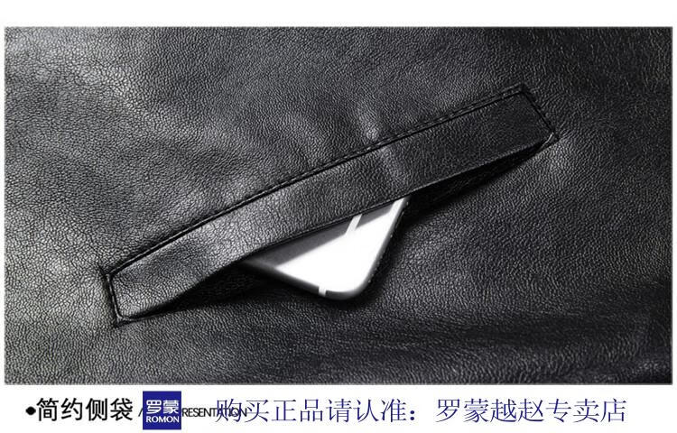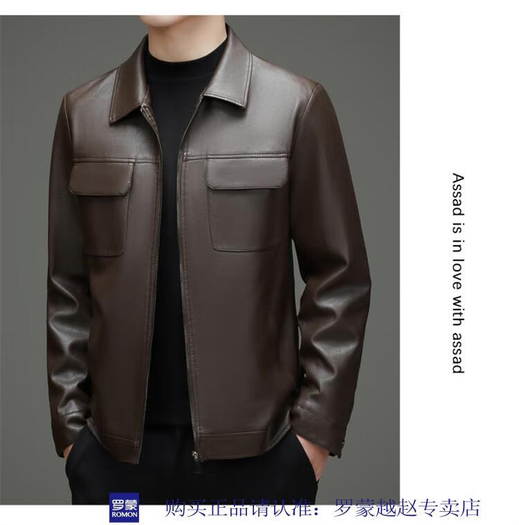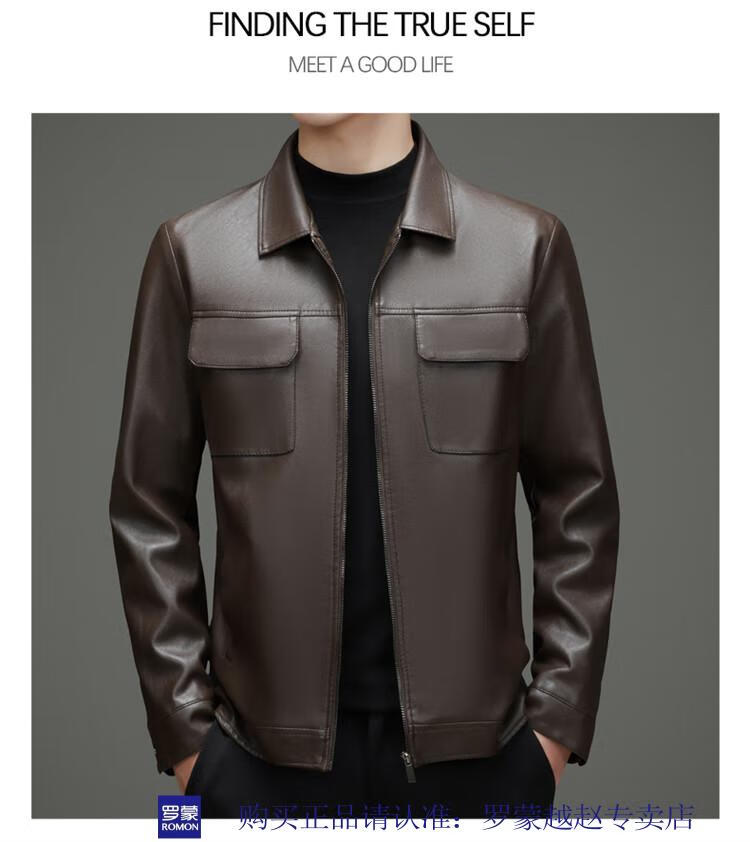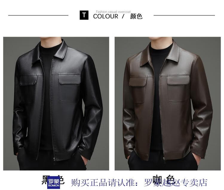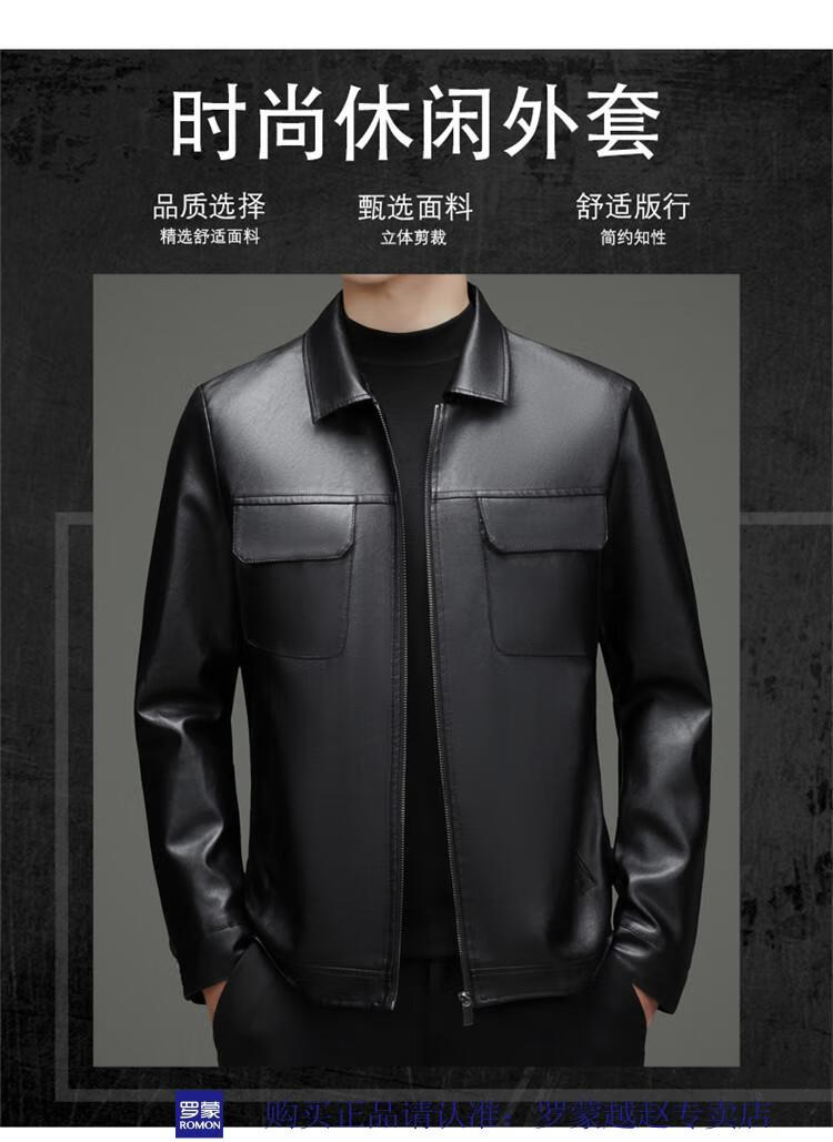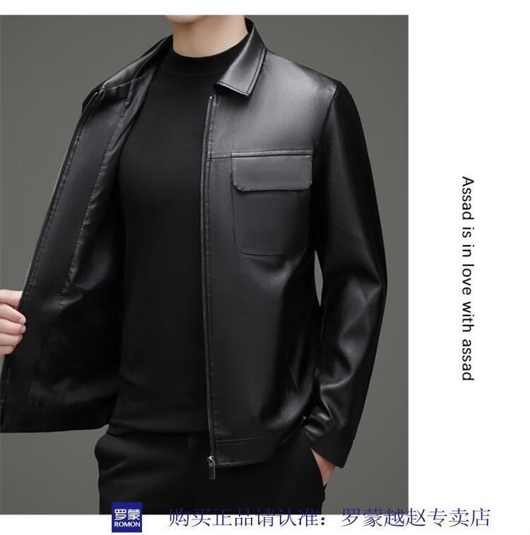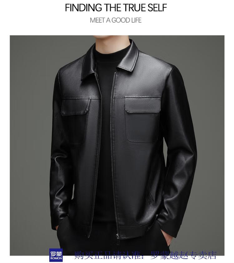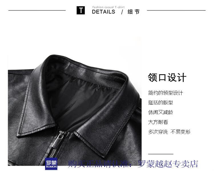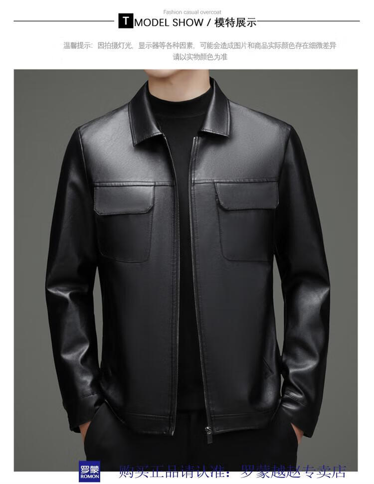 Luo Meng's new imitation leather men's leather jacket autumn and winter casual business lapel leather jacket dad tops men's black L