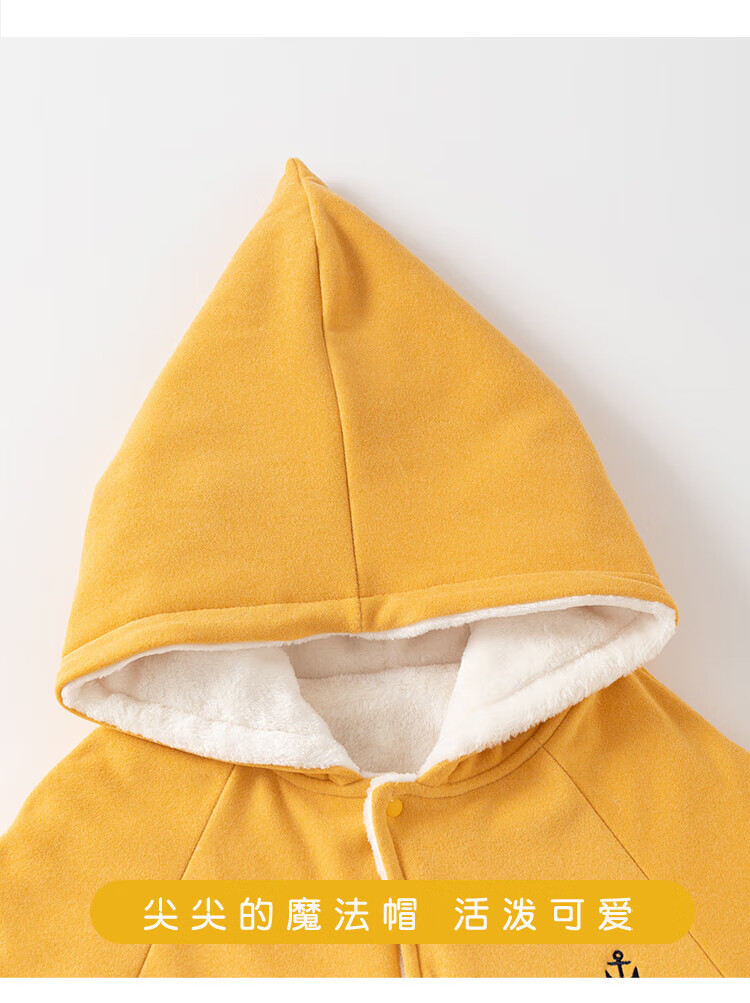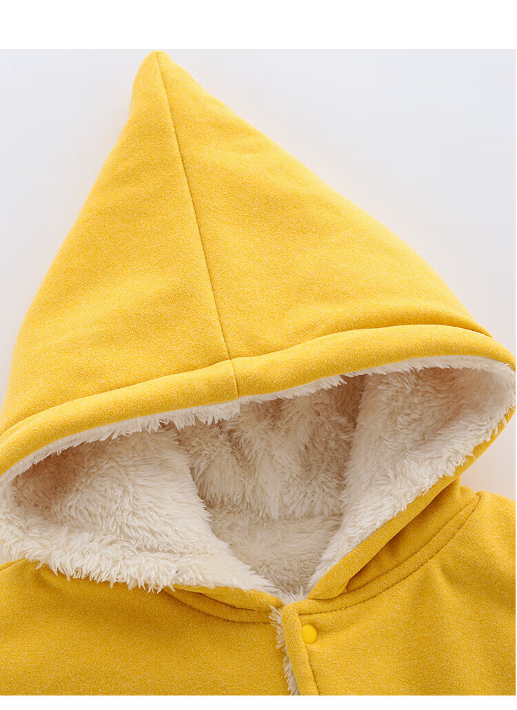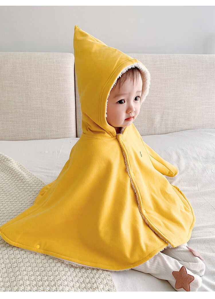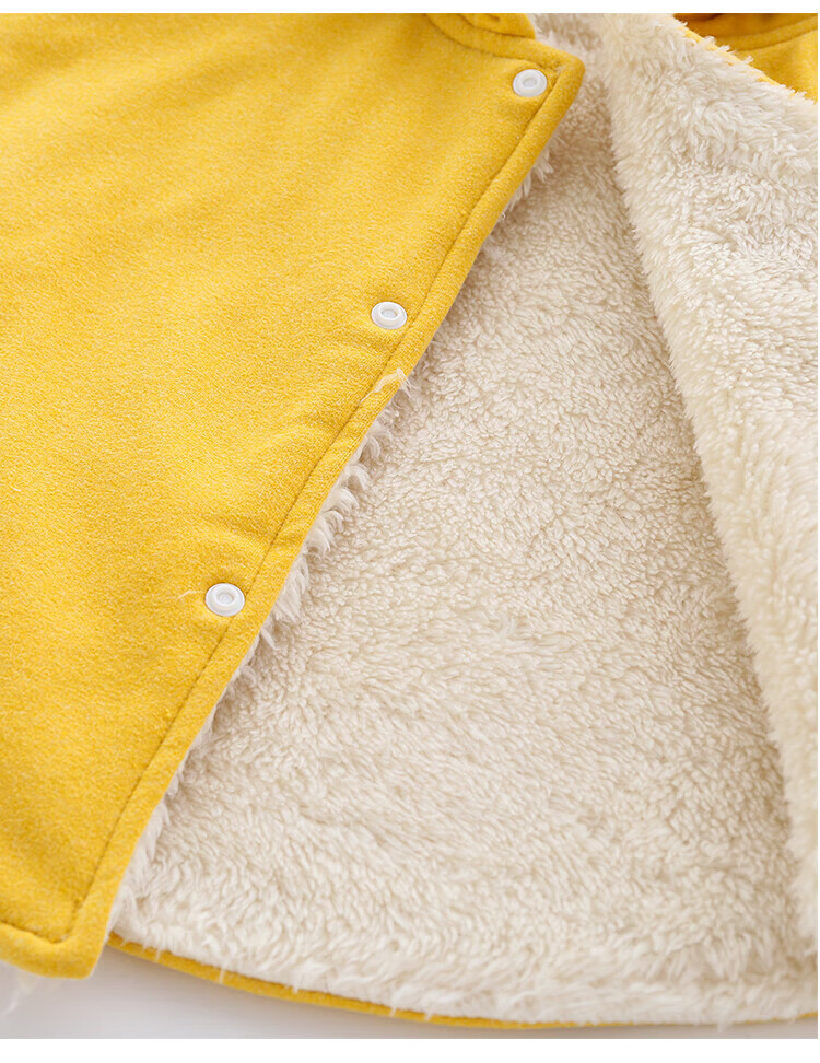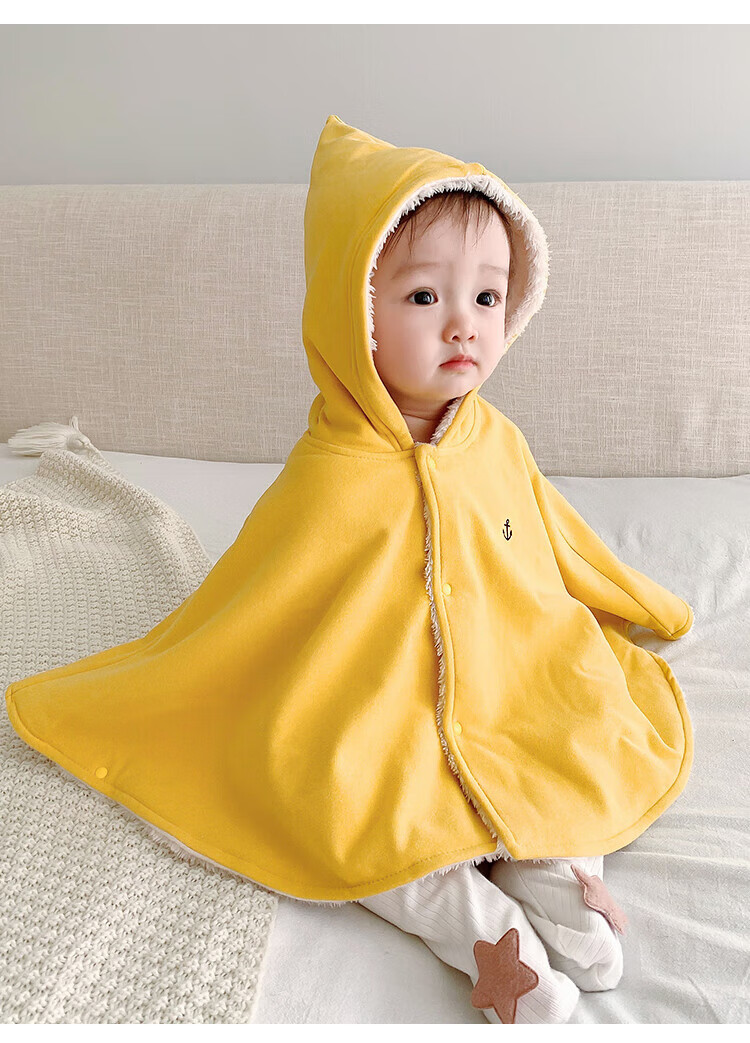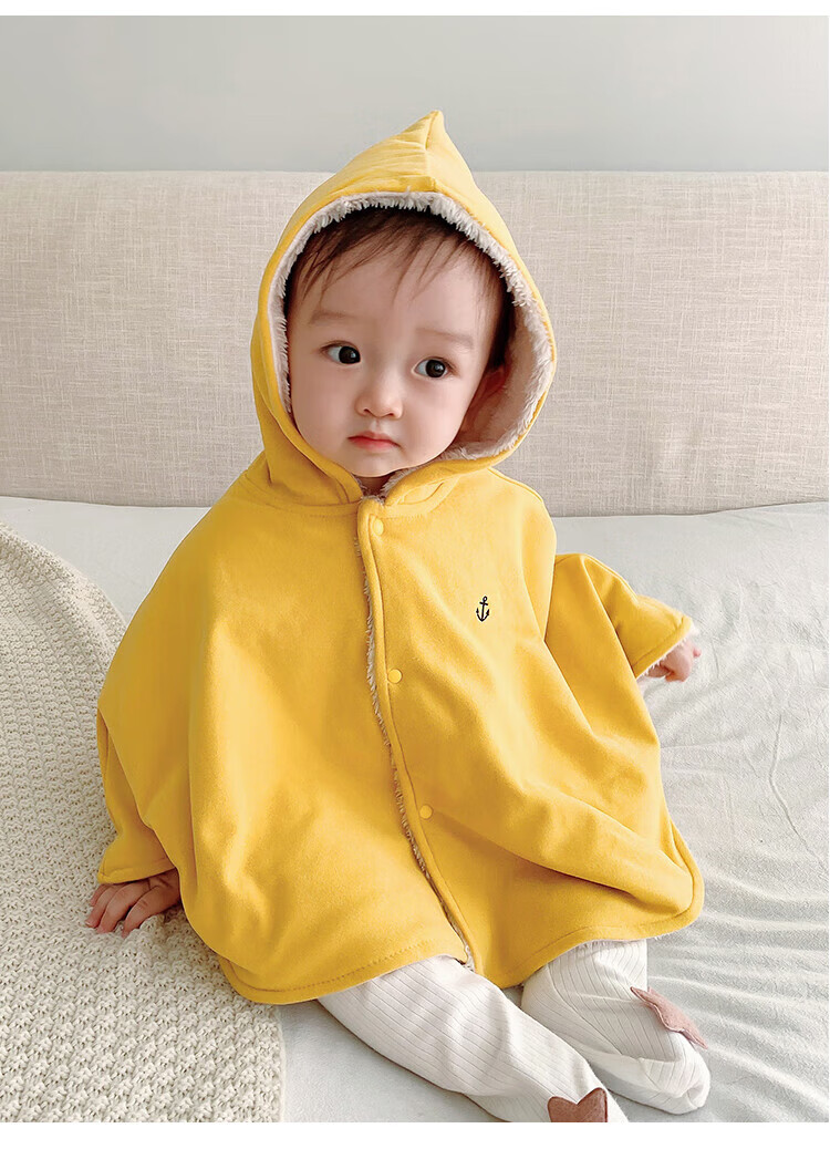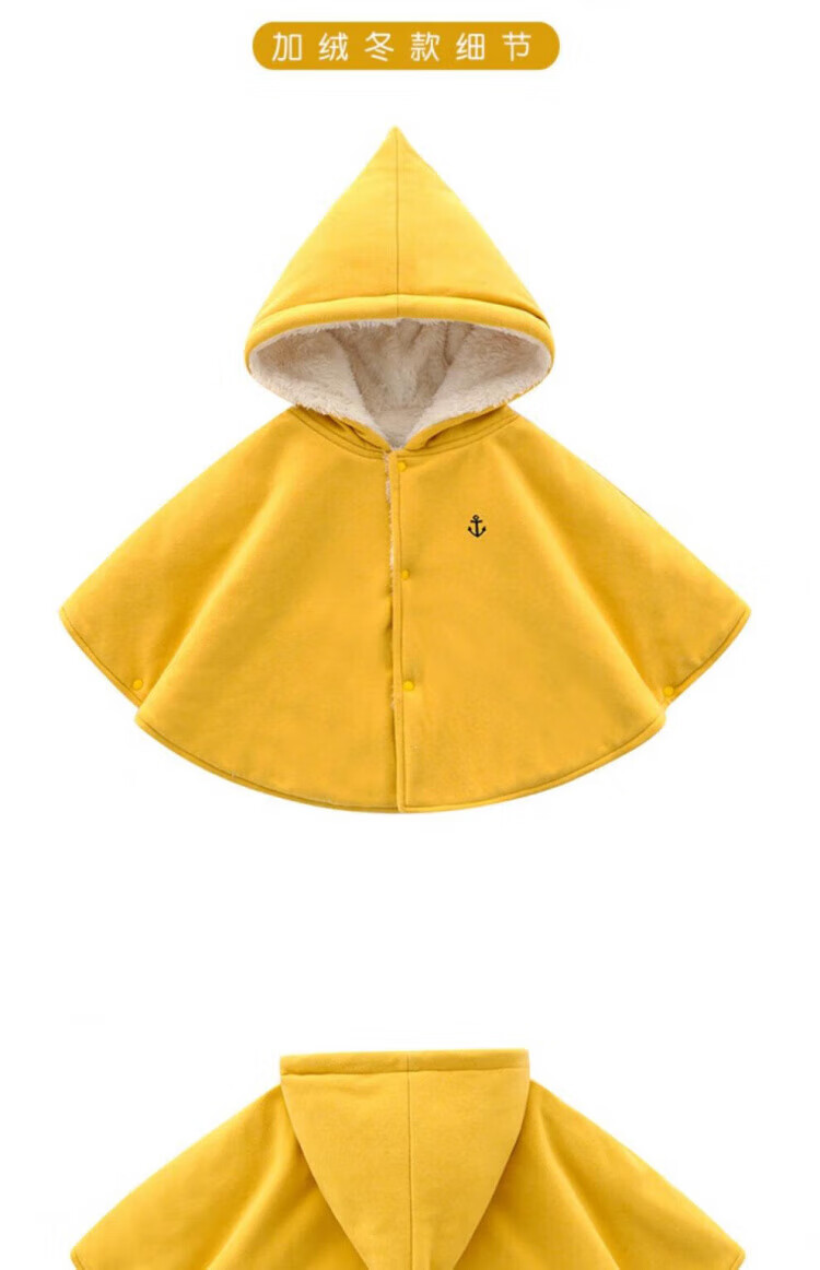Disney baby windproof jacket for boys and girls, shawl and quilt, baby western-style cape and cloak for outdoor wind protection in spring, autumn and winter, yellow, double layer plus velvet, autumn and winter style, reference 15 degrees below 100 size, length of about 37cm, reference 0-18 months, large size recommended