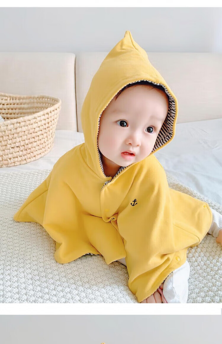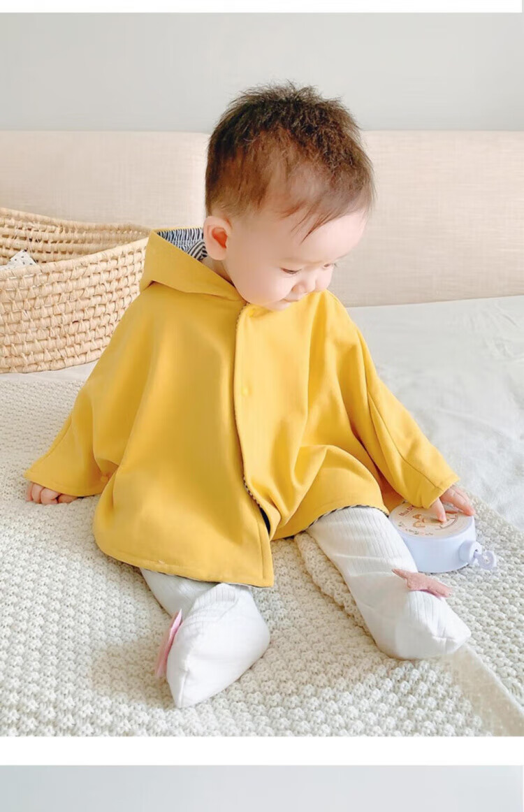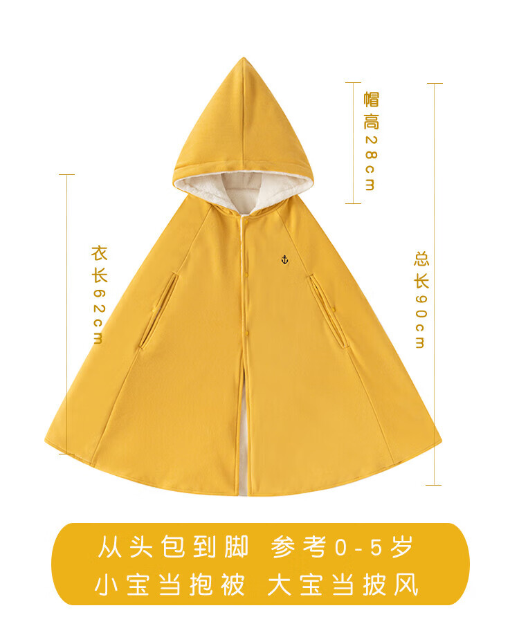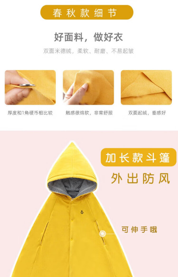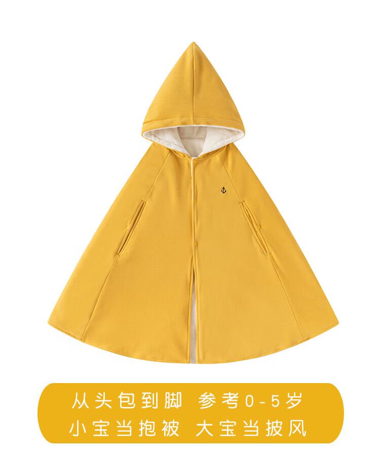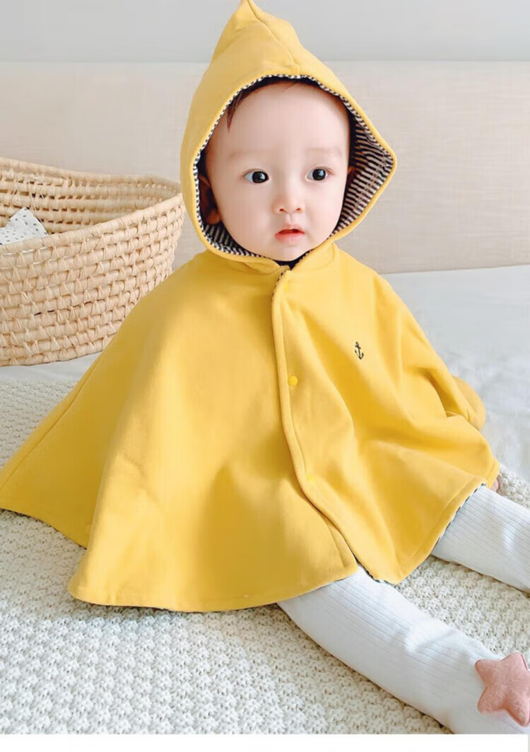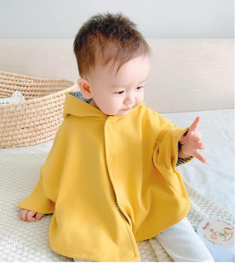 Disney baby windproof jacket for boys and girls, shawl and quilt, baby western-style cape and cloak for outdoor wind protection in spring, autumn and winter, yellow, double layer plus velvet, autumn and winter style, reference 15 degrees below 100 size, length of about 37cm, reference 0-18 months, large size recommended