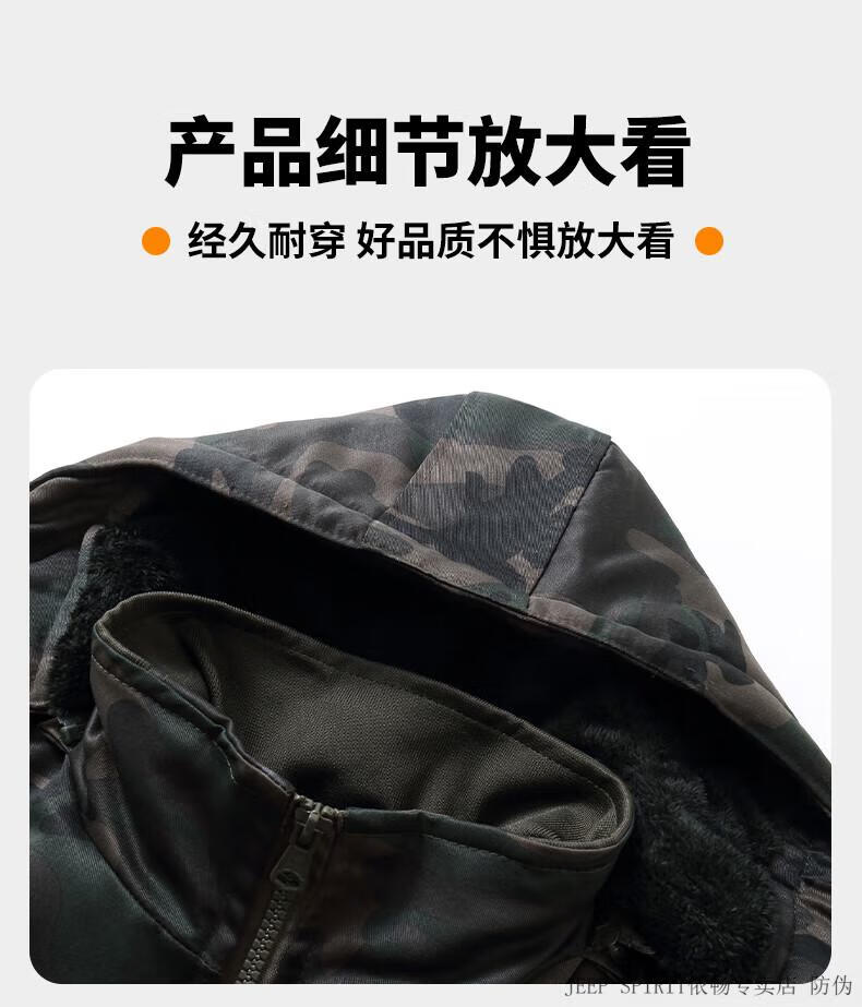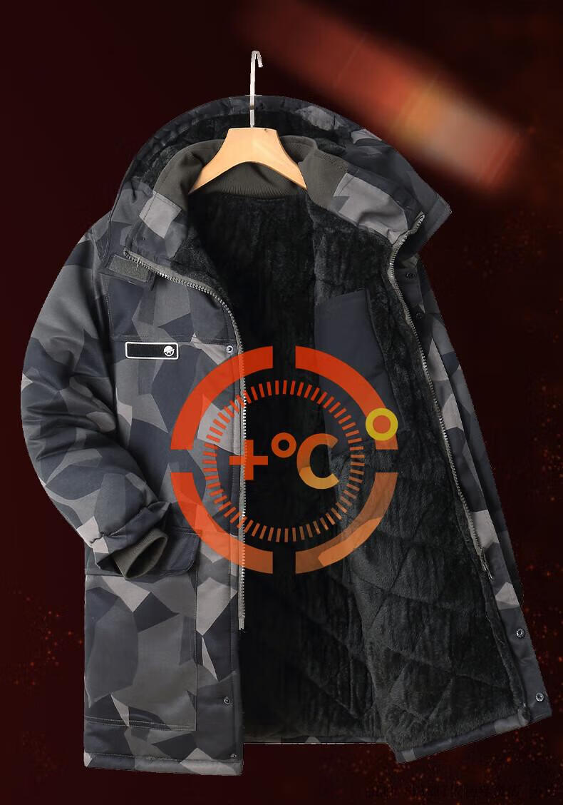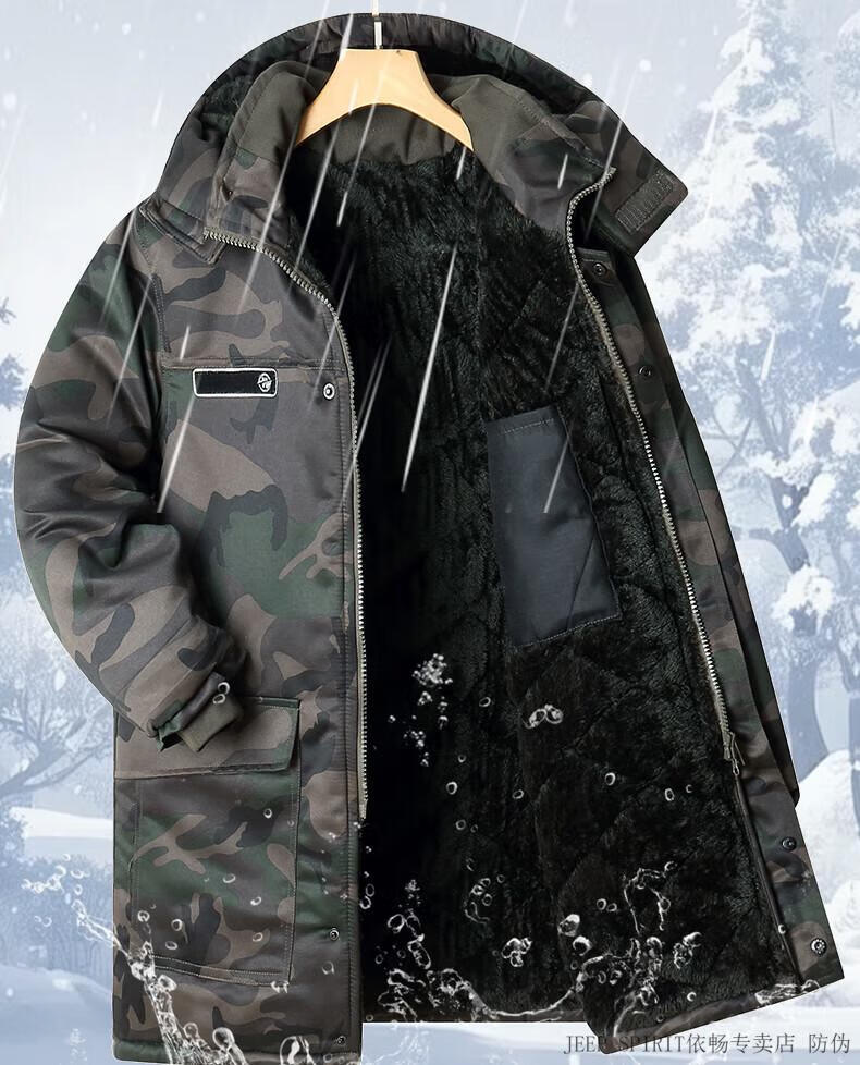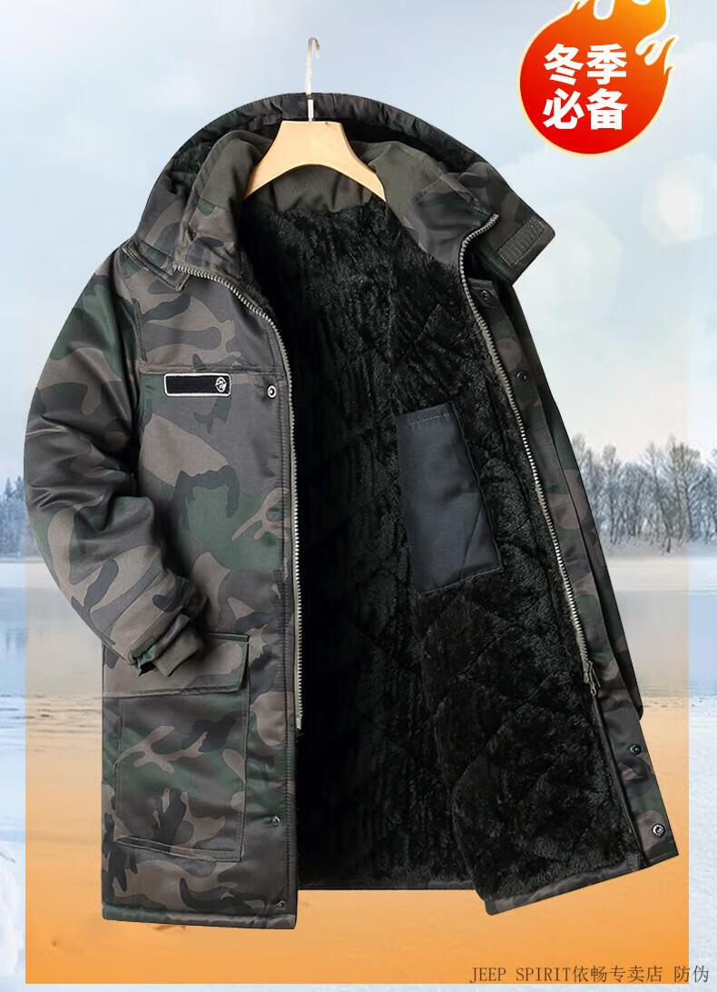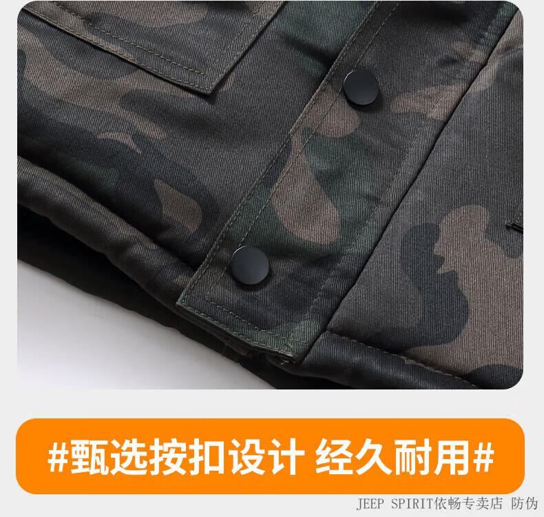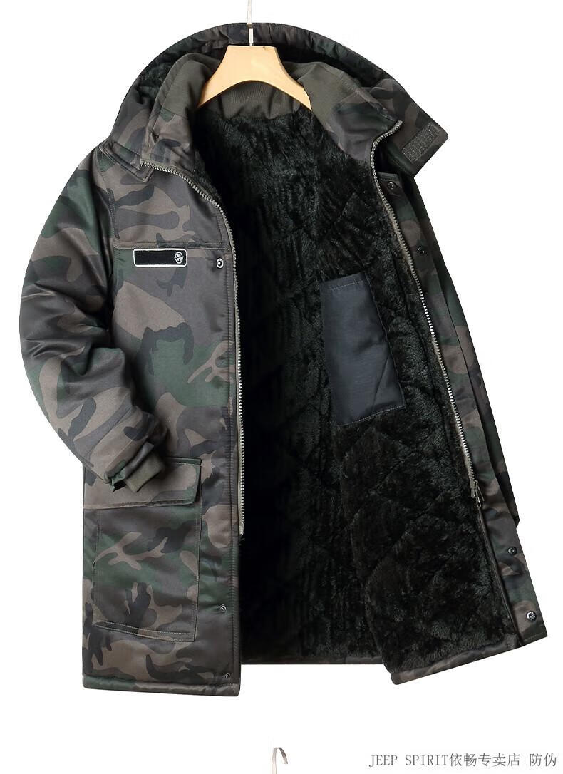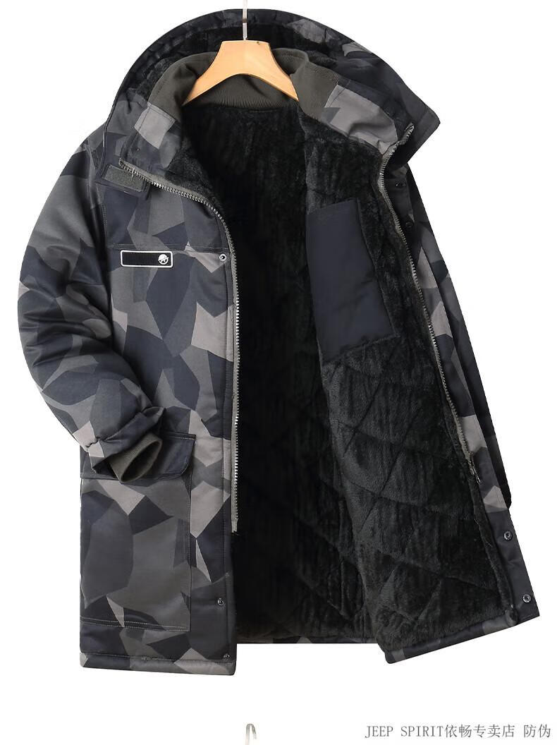 JEEP SPIRIT Jeep cotton-padded jacket for men in winter thickened mid-length camouflage coat cold-proof workwear warm workwear labor protection cotton-padded jacket for men G geometry mid-length to protect thighs plus velvet thickening L 175 suitable for 120-140 Jin Jin equals 0.5 kg