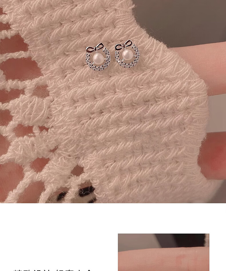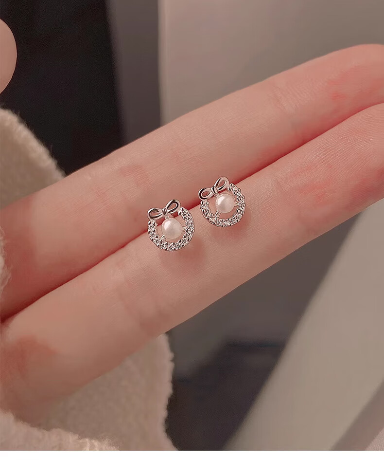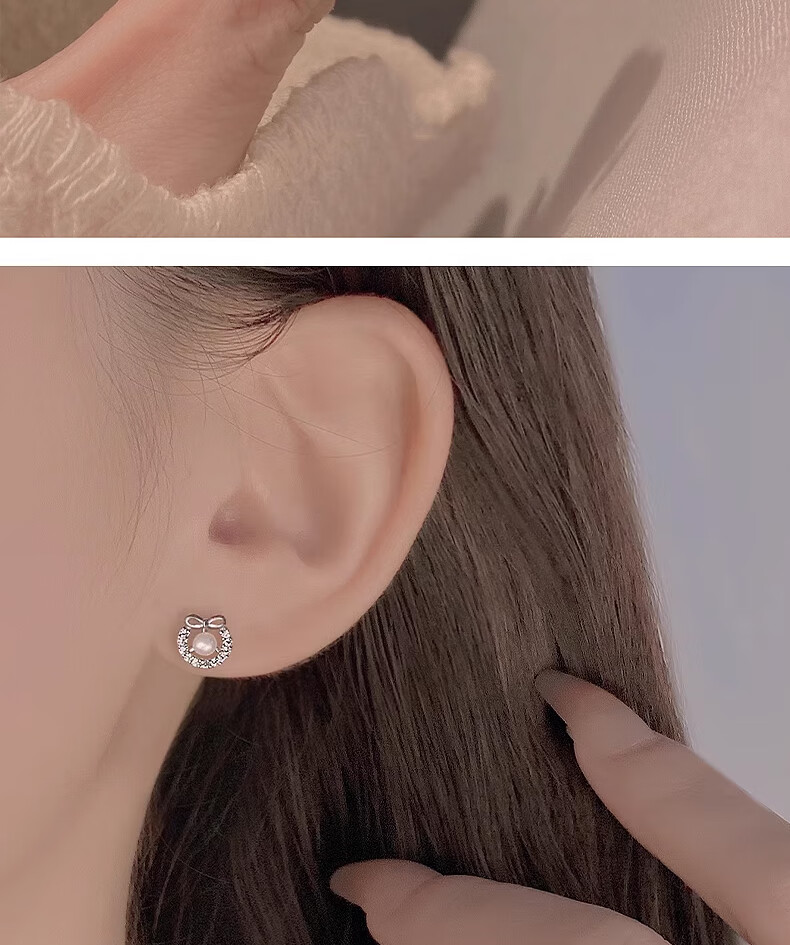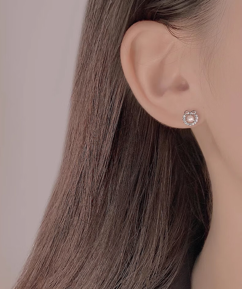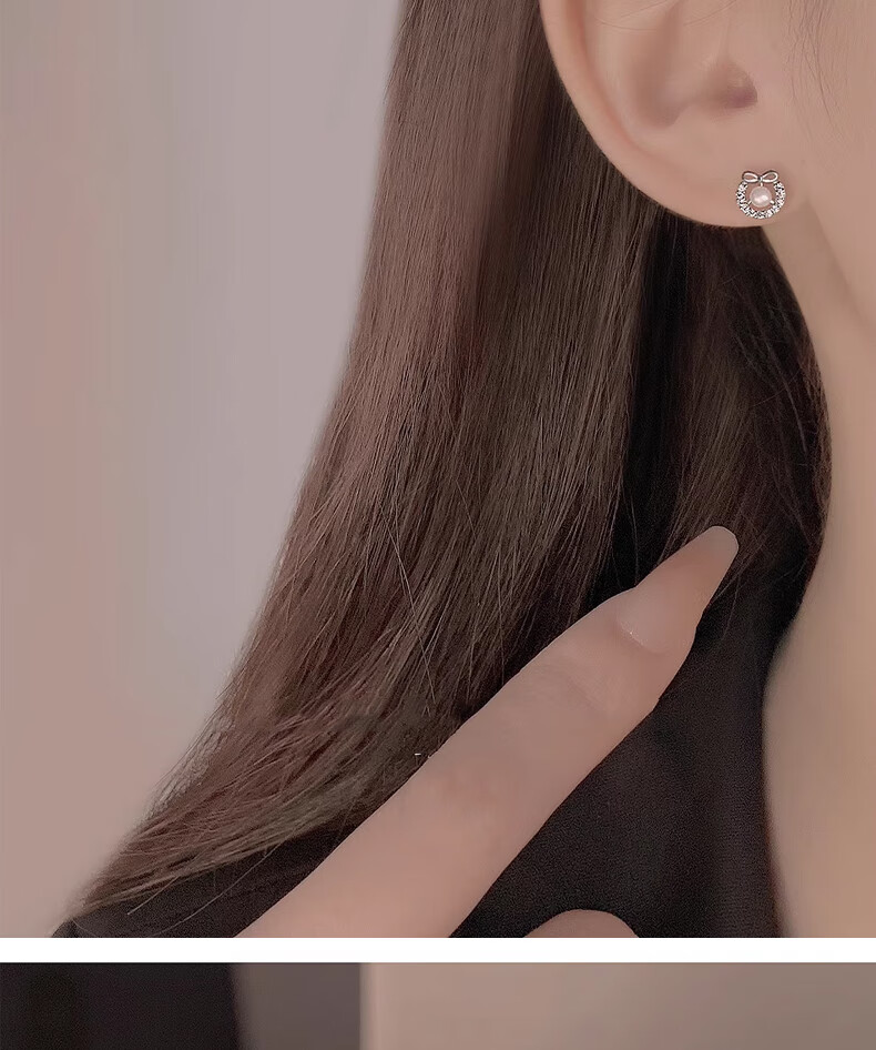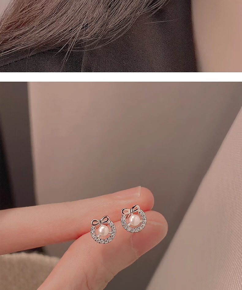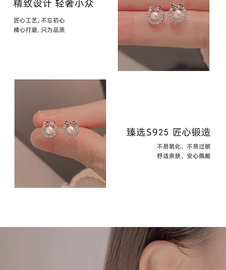 Qi Xiaomi s925 sterling silver bow pearl earrings for women 2025 new popular earrings niche light luxury high-end earrings a pair of bow pearl earrings s925 silver
