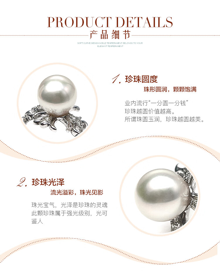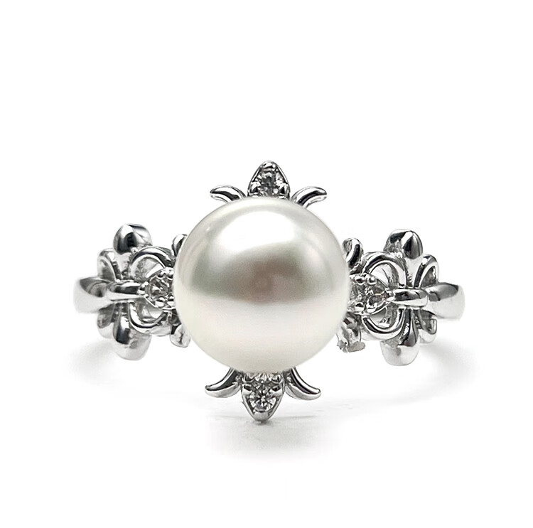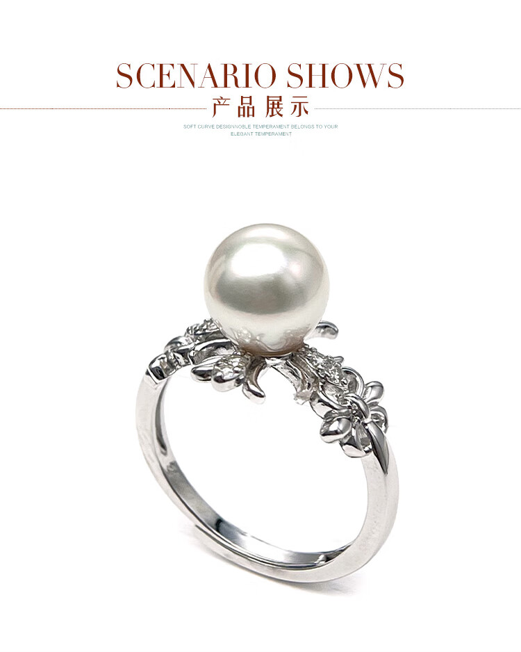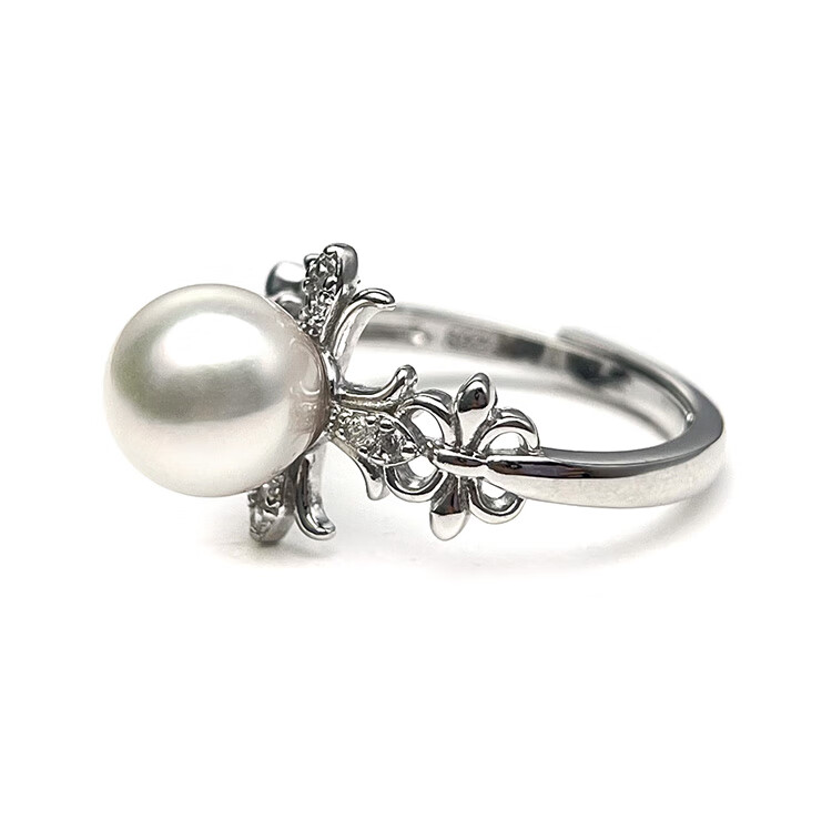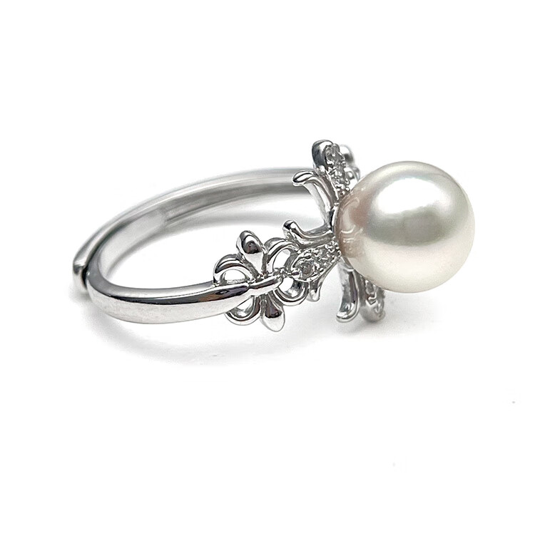 Queen of Pearls S925 Silver Akoya Seawater Pearl Ring 8-9mm Live Adjustable Women's Ring Birthday Gift