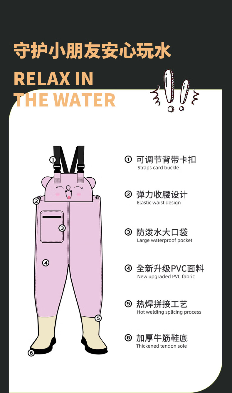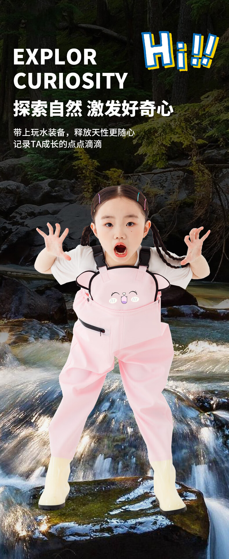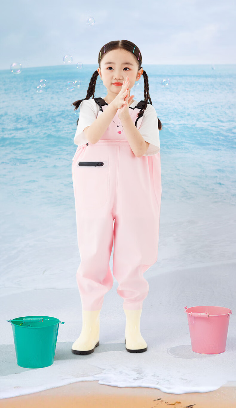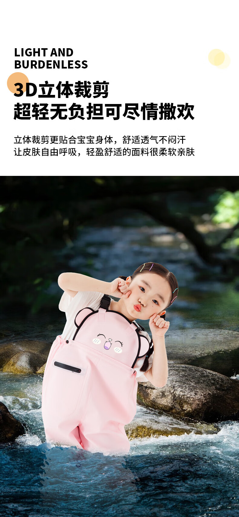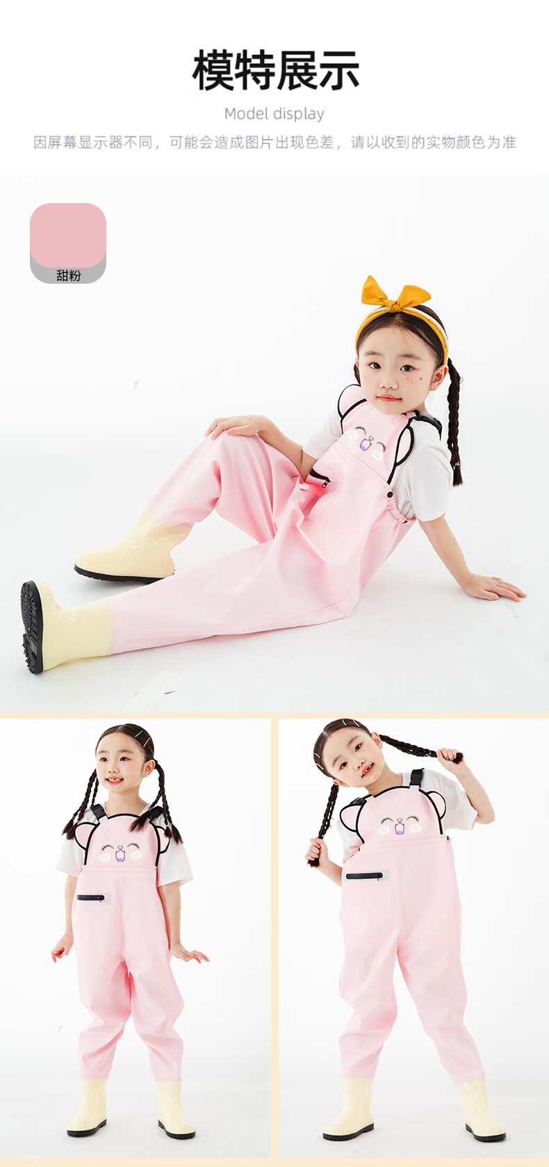 Children's waders, waterproof, sea-going equipment, kindergarten sand play suit, one-piece rain boots and rain pants, one-piece fish catching girl, children's cute cat overalls, sweet pink 23_shoe inner length 15.5