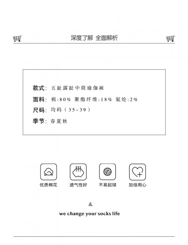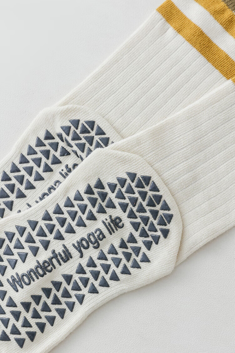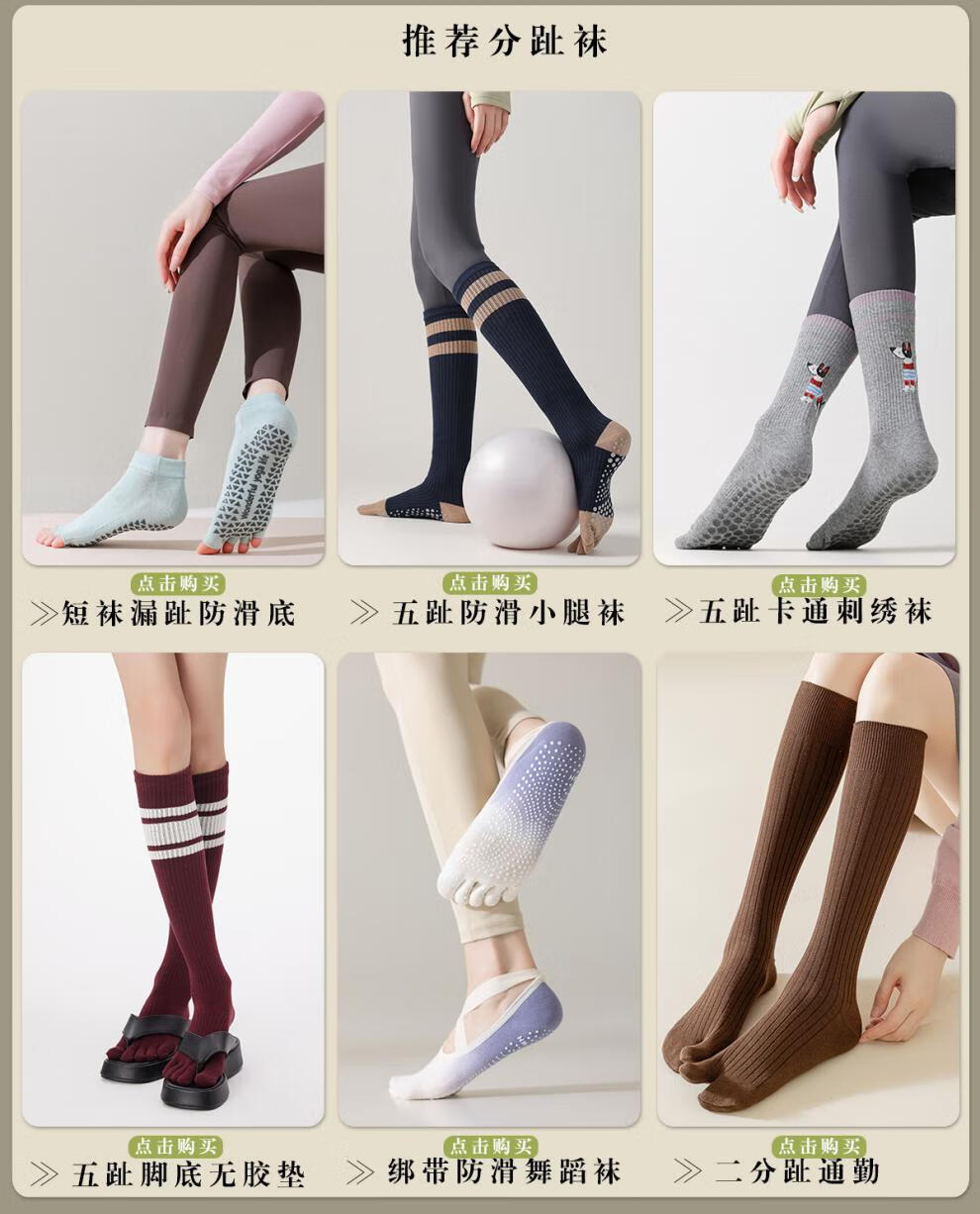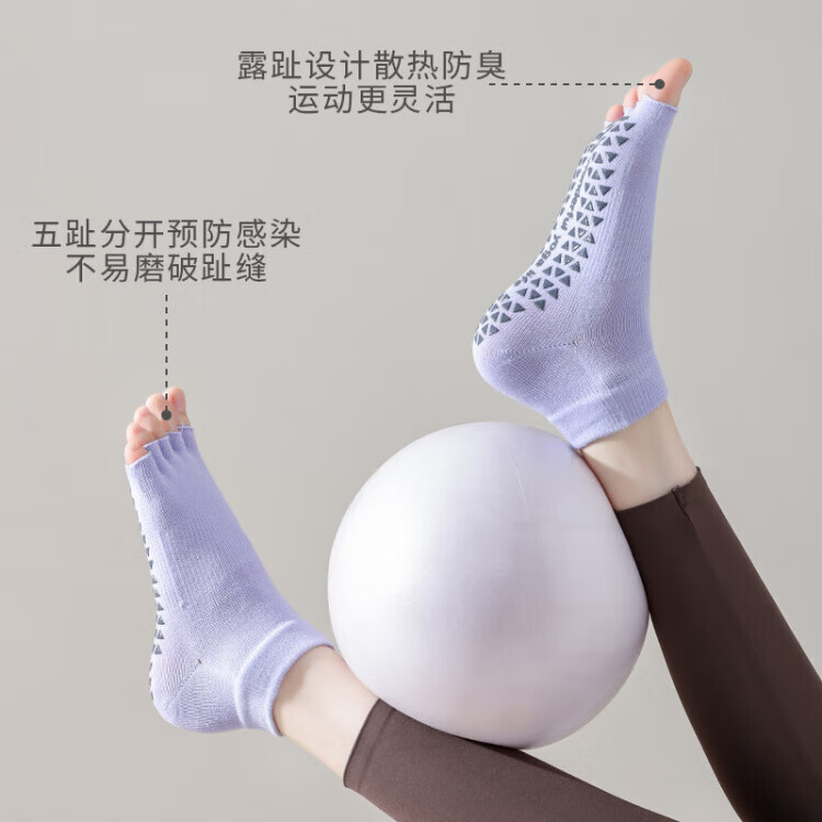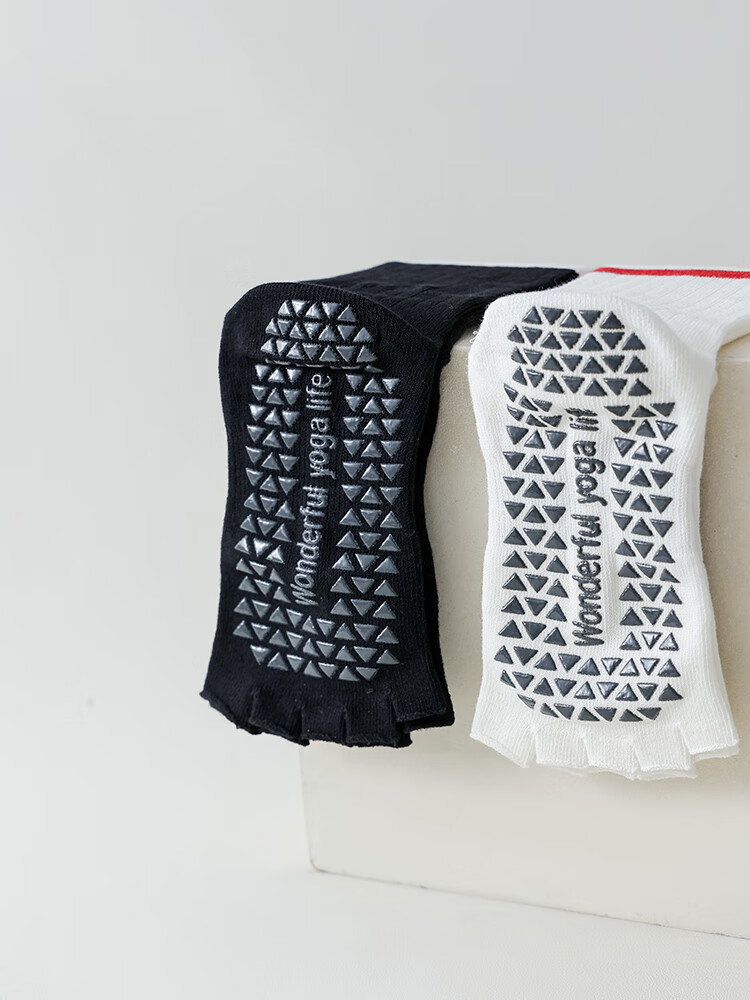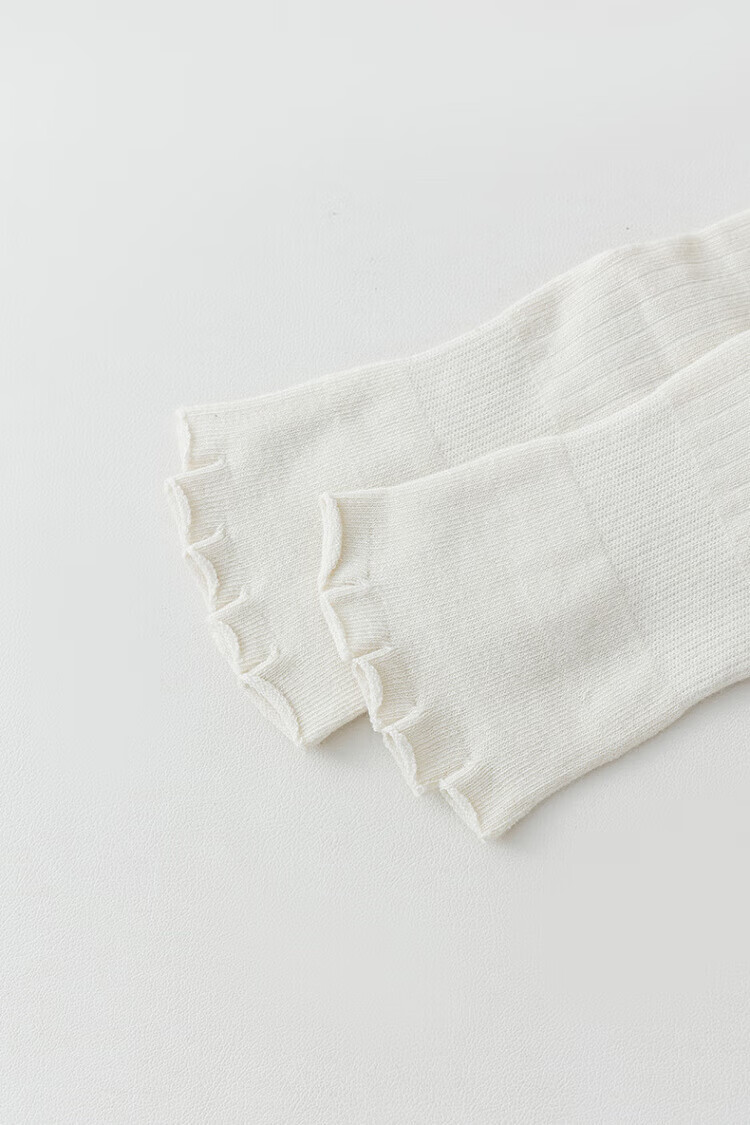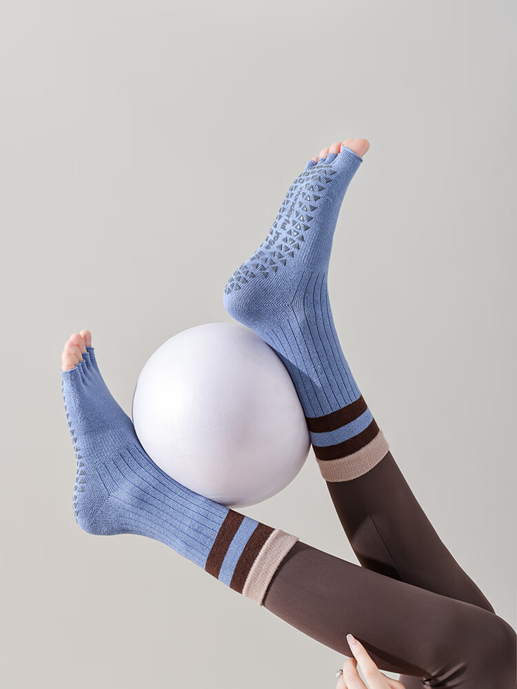 OEMG Autumn and Winter Sports and Fitness Five Finger Open Toe Mid-Tube Yoga Pilates Floor Combed Cotton Anti-Slip Indoor Women's Socks Beige (Mid-Tube Open Toe) One Size