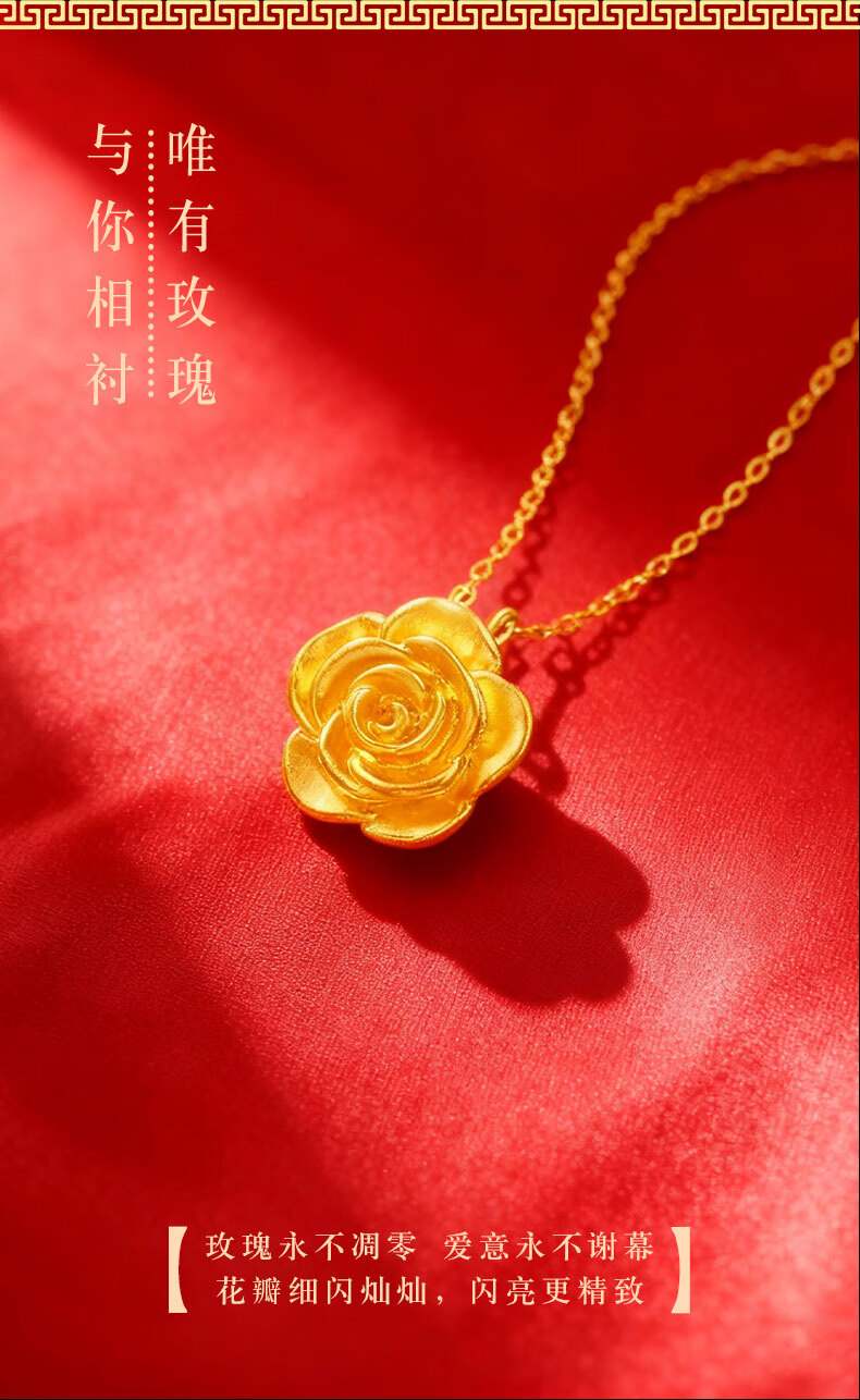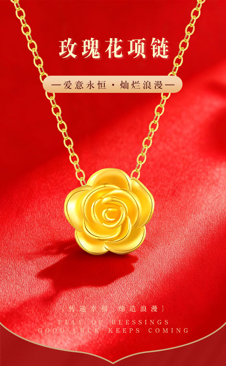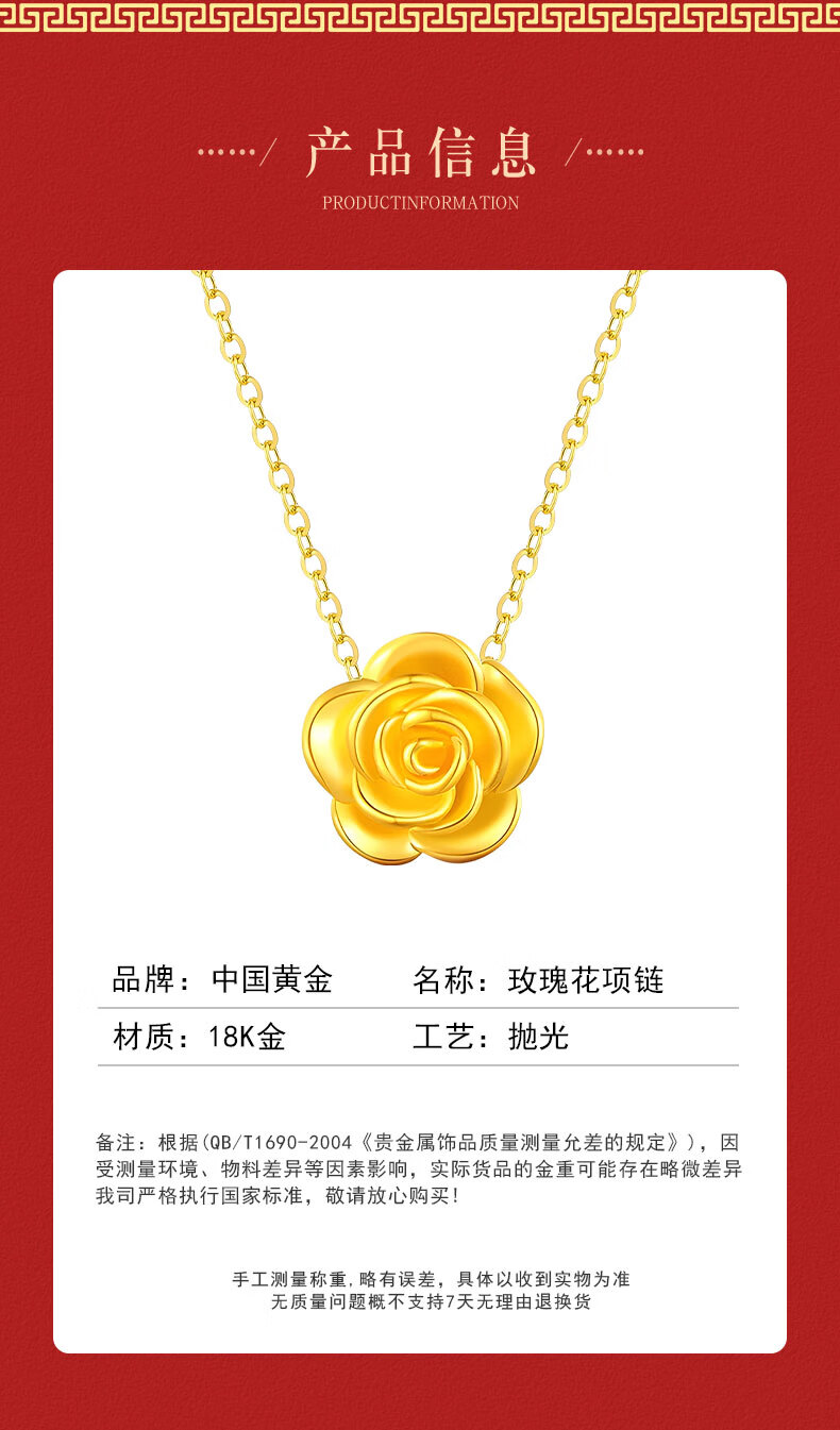 CHINA GOLD 18K gold necklace women's versatile rose pendant jewelry Valentine's Day birthday gift for girlfriend and wife 18K rose pendant free S925 chain