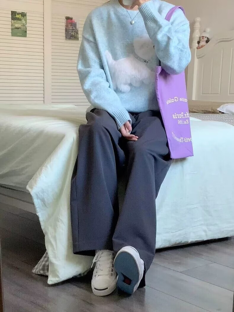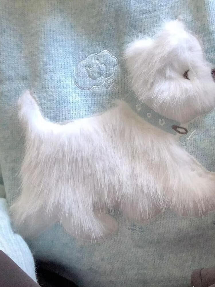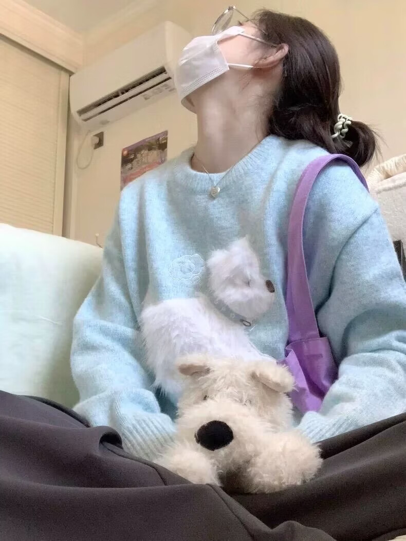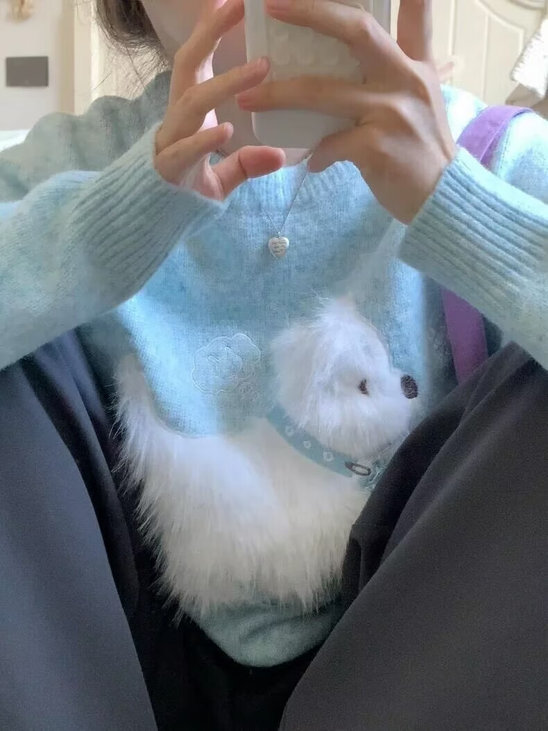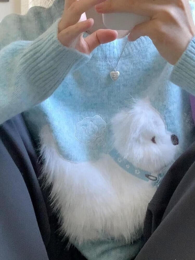 Sidi Shu blue round neck flocked puppy sweater for women 2025 new autumn and winter preppy style sweet age-reducing sweater top blue M recommended 97-110Jin Jin equals 0.5 kg