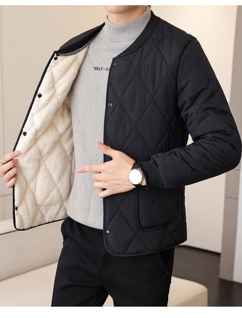 Playboy (PLAYBOY) Lined Cotton Jacket Men's Autumn and Winter Warm Cotton Jacket with Velvet for Junior and High School Uniforms Magic Inner Cotton Jacket Black XL 120-140Jin Jin is equal to 0.5 kg