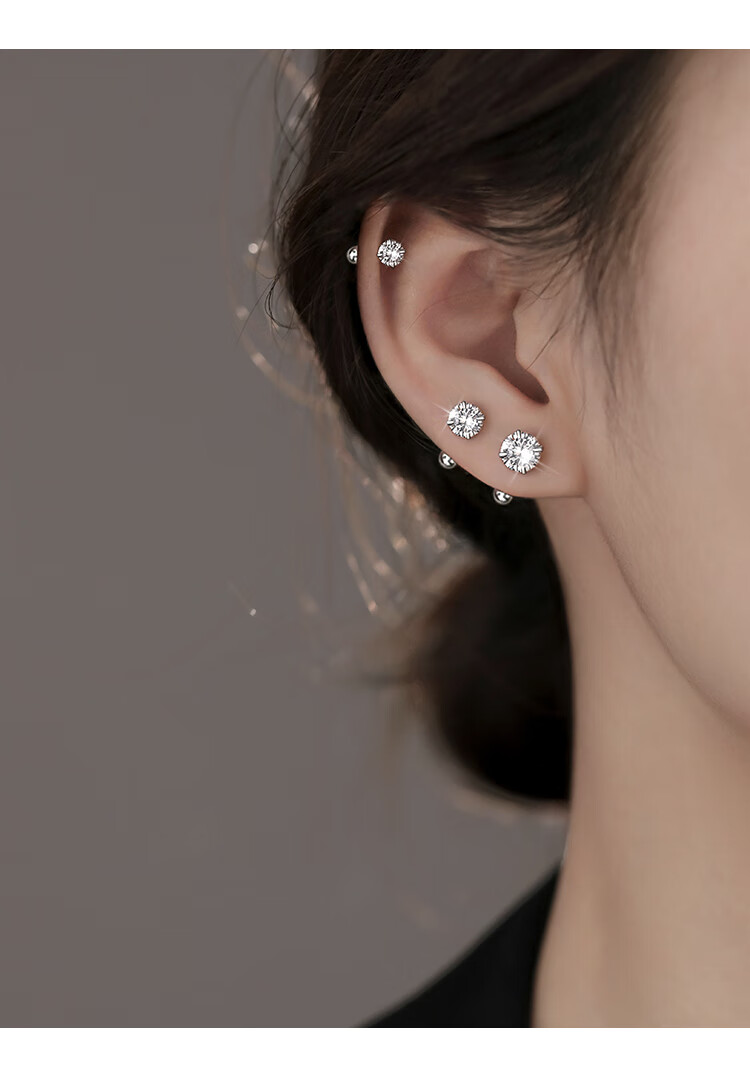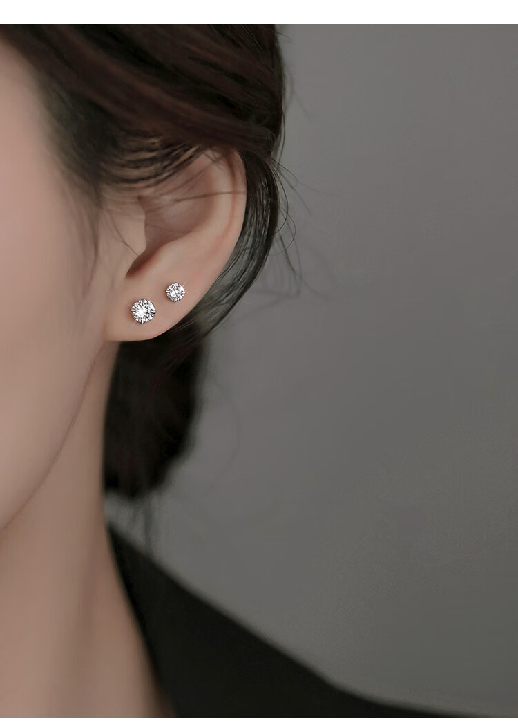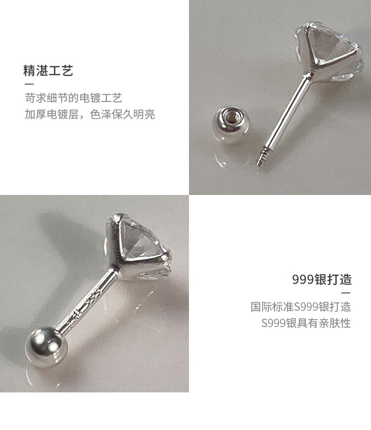 Xinshe 999 sterling silver earrings for women, pierced ears, non-allergenic ear bone nails, 2025 new pure silver mini earrings, no need to take them off when sleeping, 999 pure silver earrings-6mm