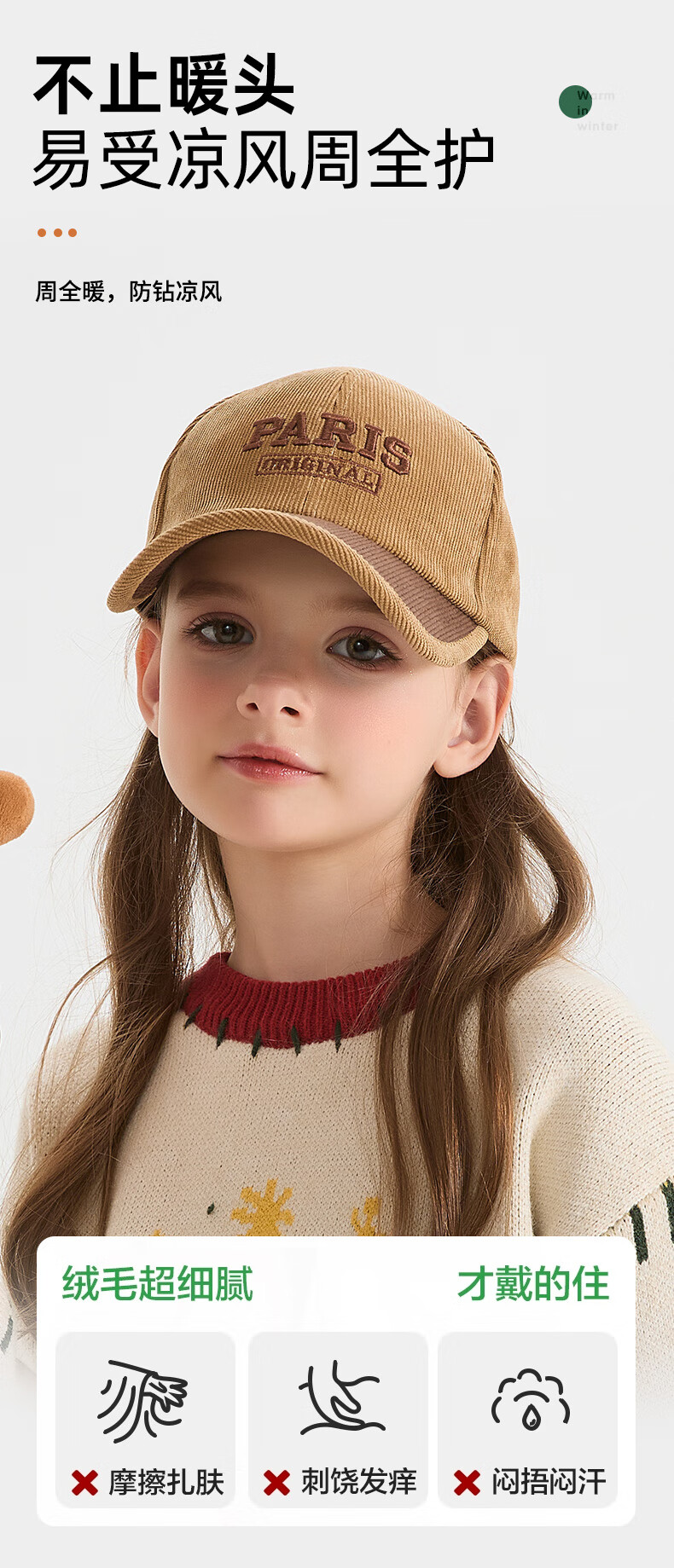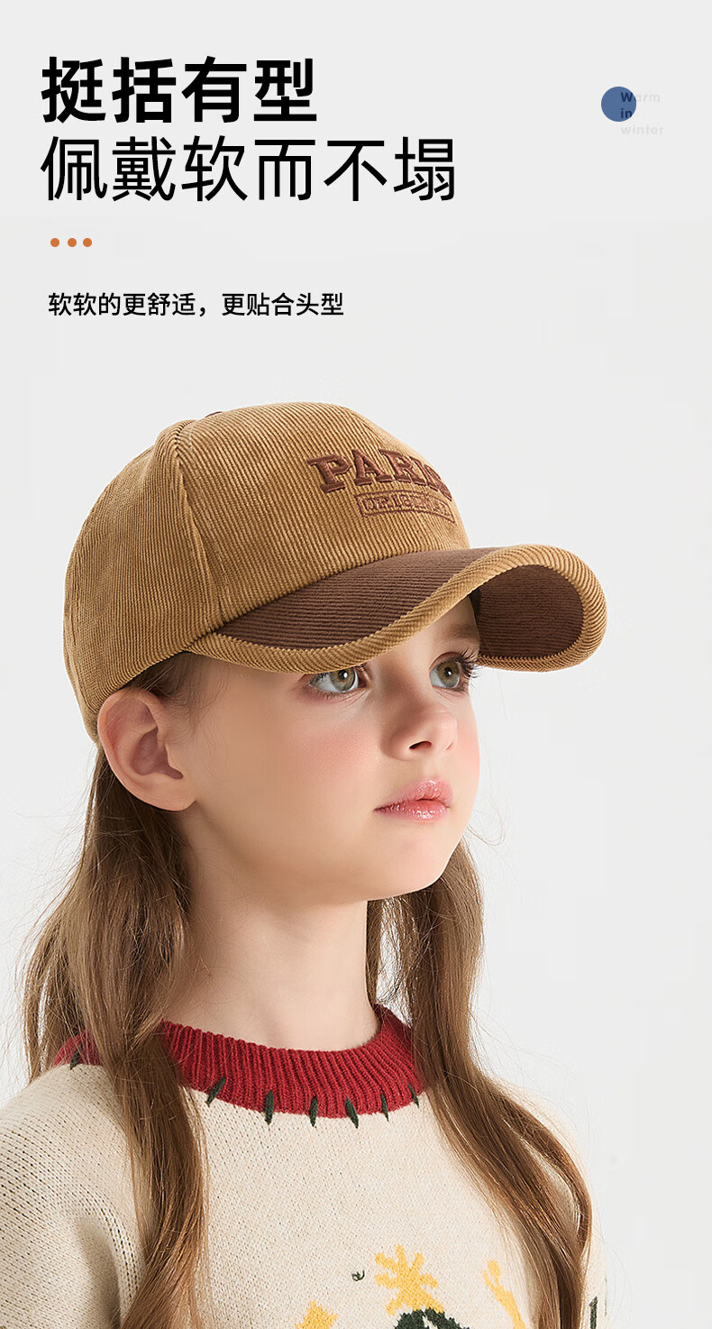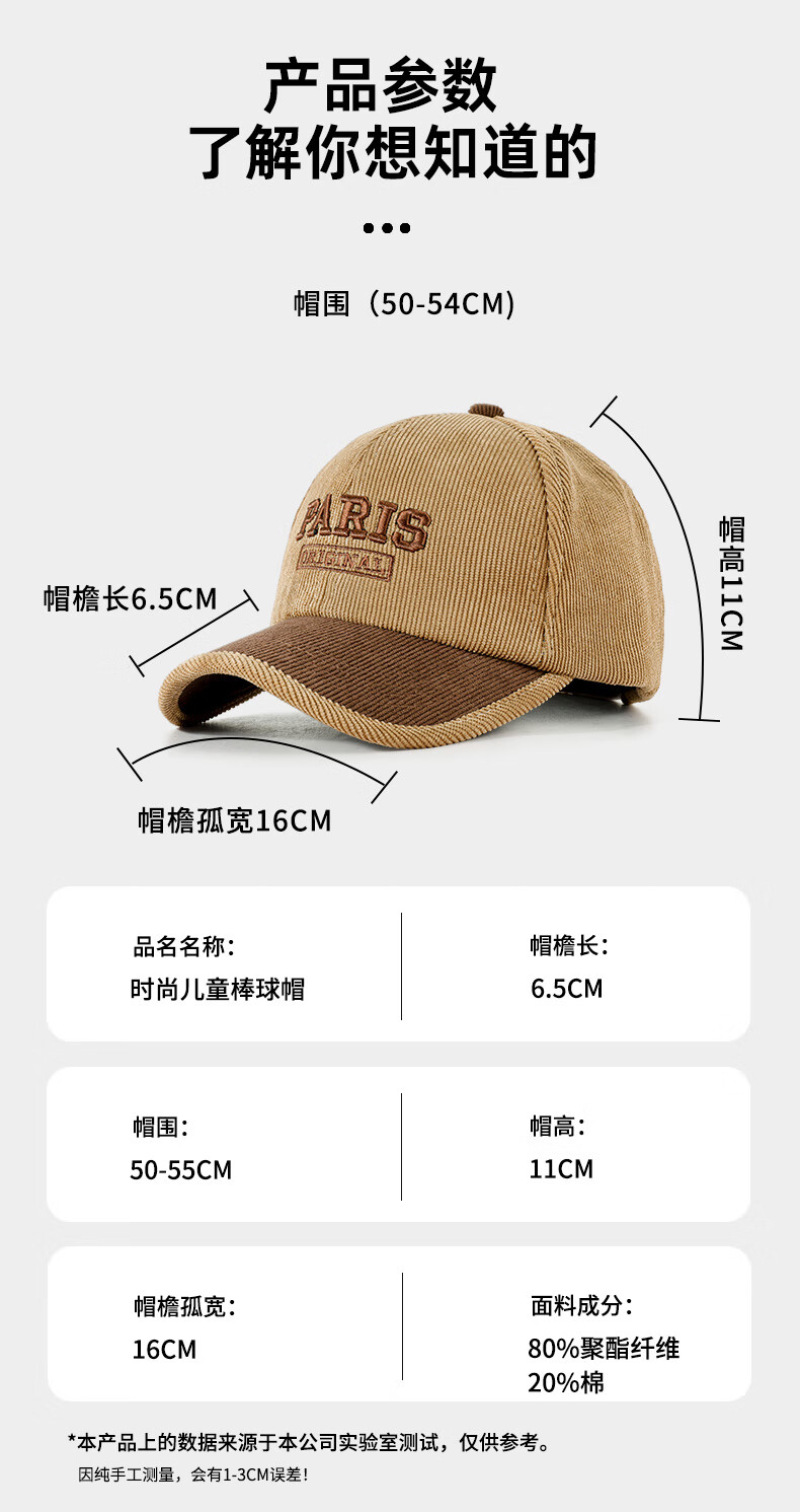 SOMUBAY children's hat spring and autumn breathable peaked cap for boys and girls versatile embroidered high-value winter baseball hat khaki 4-14 years old_one size (50-55CM)