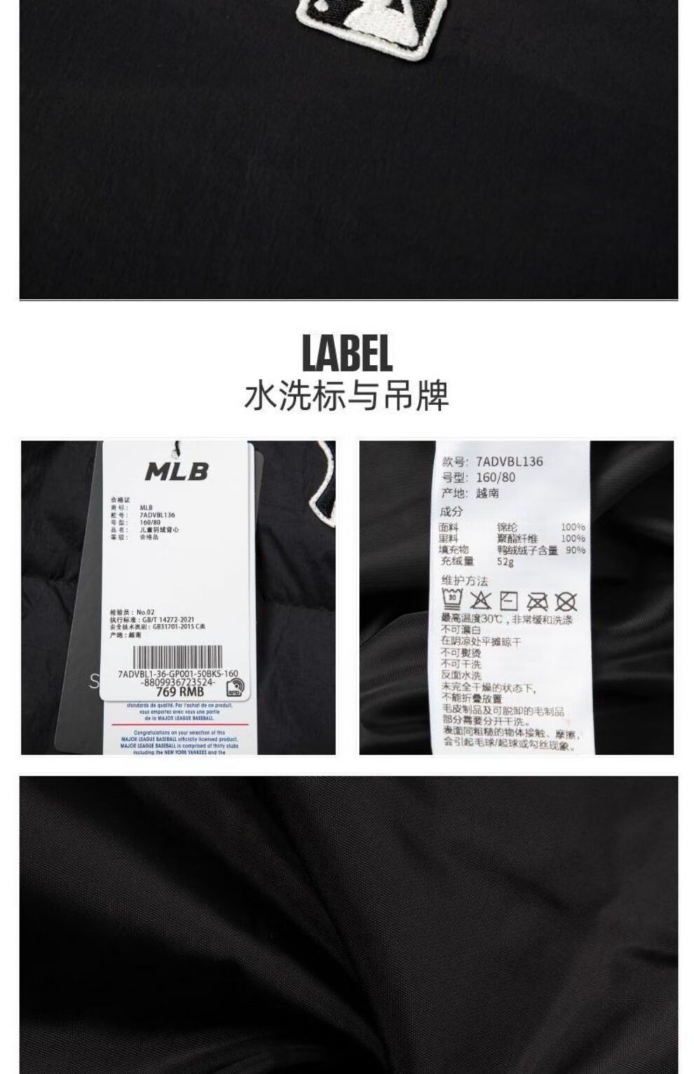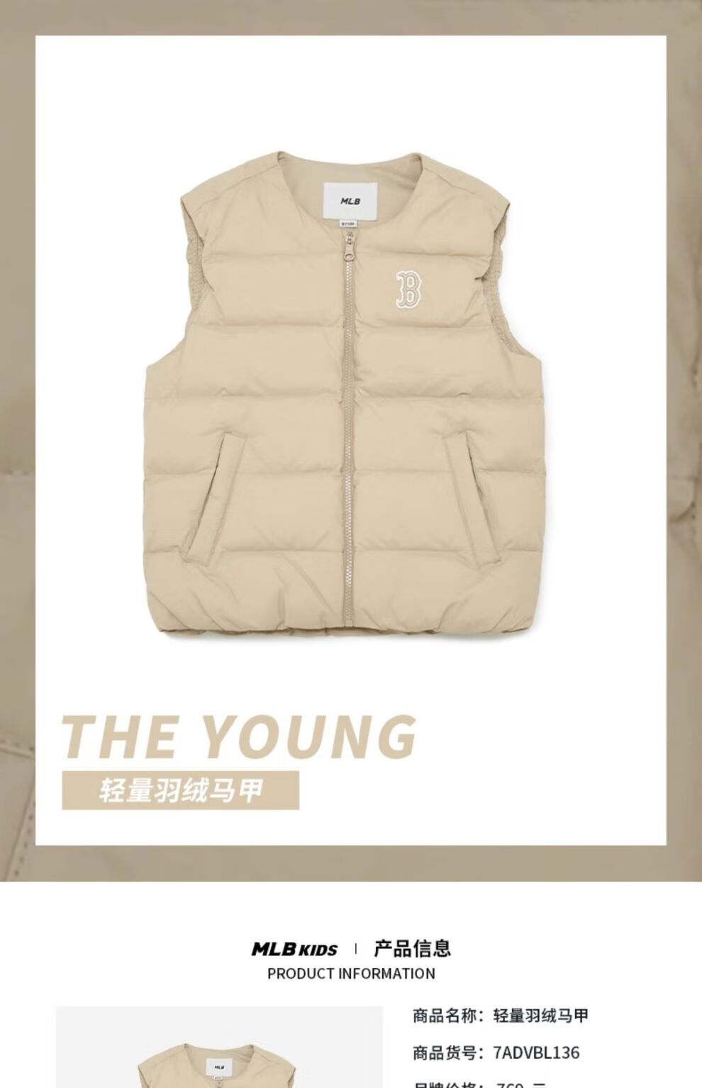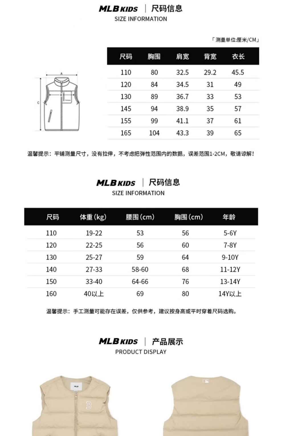 MLB down vest for boys and girls NY small standard children's down jacket jacket sleeveless thermal vest 7ADVBL136 black/50BKS New York Yankees 110