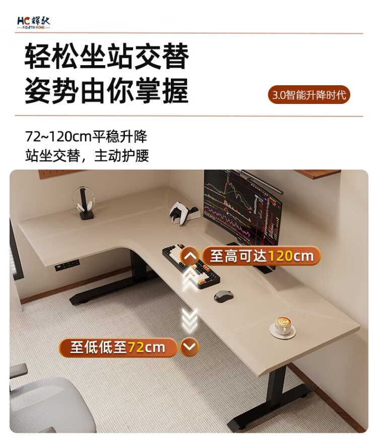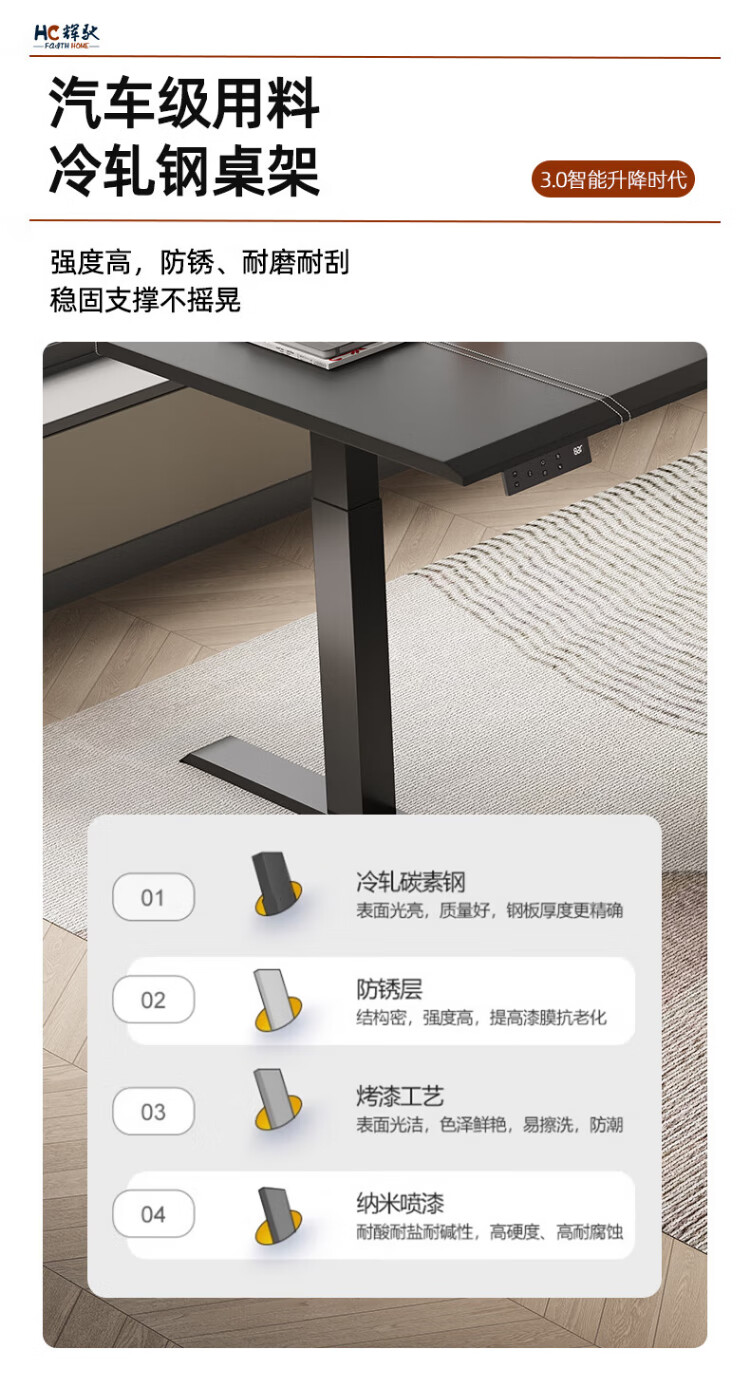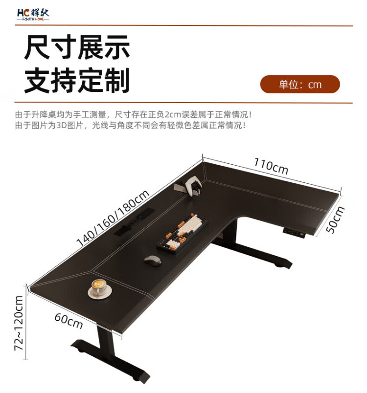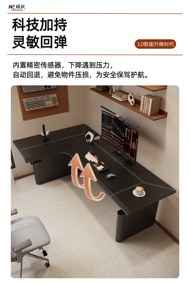 Corner computer desk smart electric lift table home L-shaped desk liftable gaming table corner desk H09 SE turn left black saddle leather desktop + I-beam double motor 1.4m*1.1m desktop size with row plug box