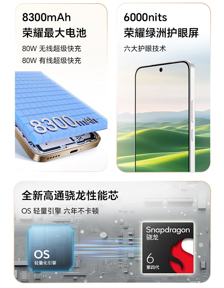 Honor (HONOR) mobile phone 2025 new model launched HONORX70 5G gold standard ten-sided drop-resistant and waterproof 8300mAh Qinghai Lake battery mate dual 80W fast charging policy subsidy pro 12+256GB Moon Shadow White headphone set version free 2-year extended warranty + quarterly broken screen insurance + freight insurance