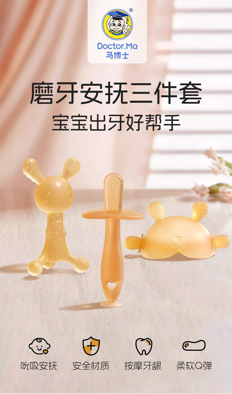 DOCTOR MA Baby Teether and Teething Sticks, Small Mushroom Baby Soothing Toys, Anti-eating Hand and Teeth Sticks, 2-piece Set for Small Months, Rabbit Half Set of Hands + Silicone Teething Sticks (Free Storage, 1 Pack)