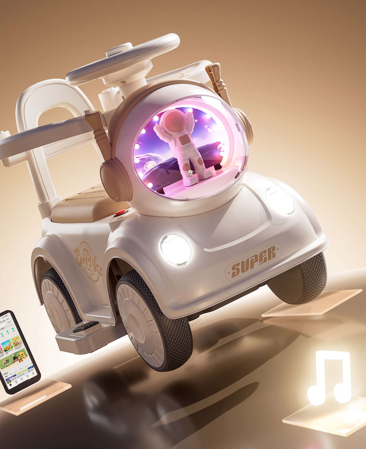 Barachi children's electric car 1-3-6 years old four-wheeled children's battery car can push a car, green remote control electric model, fence dinner plate + silent soft wheel + Bluetooth music