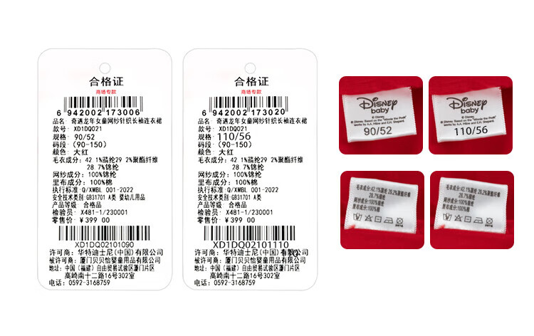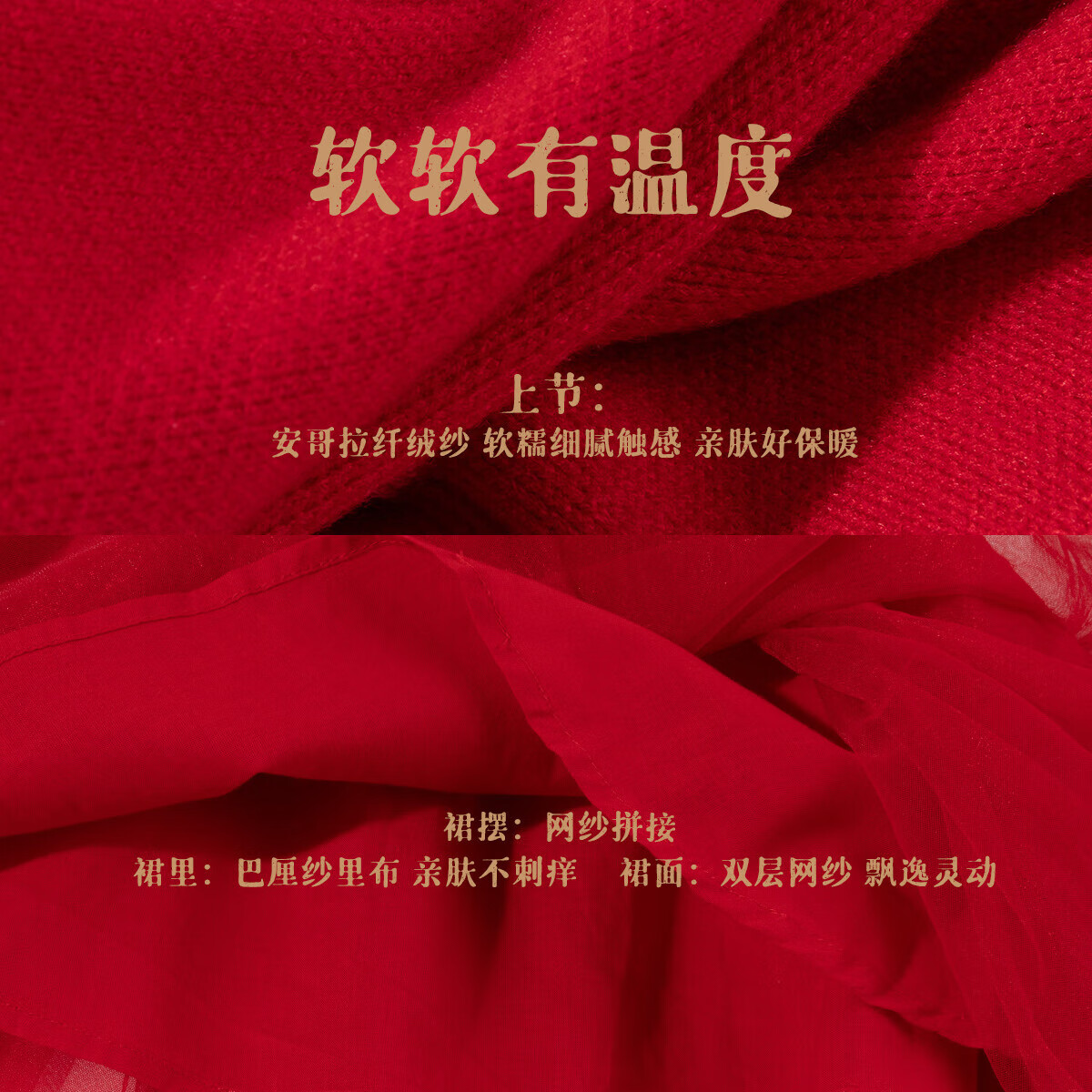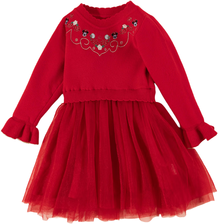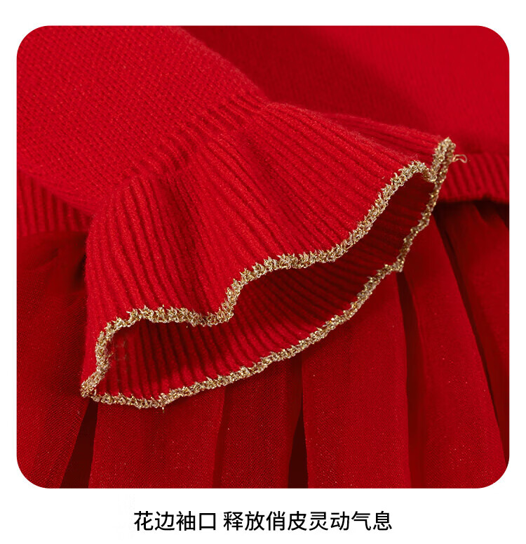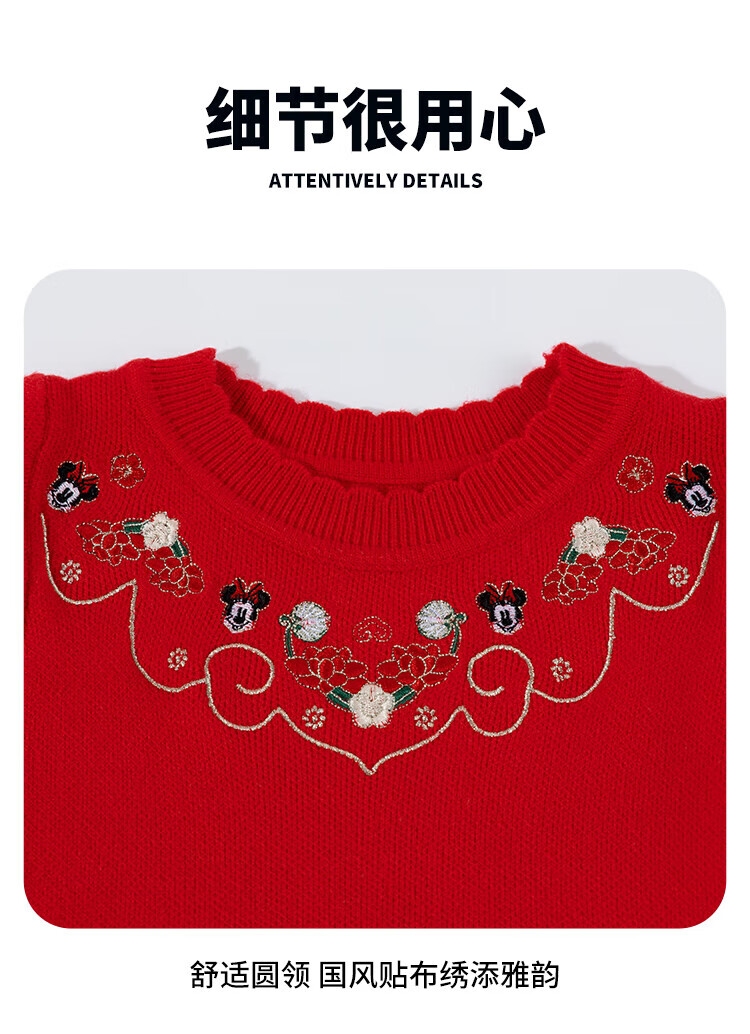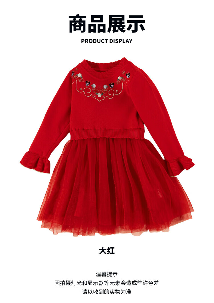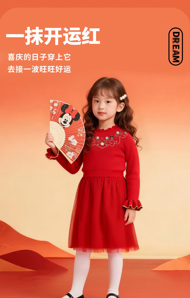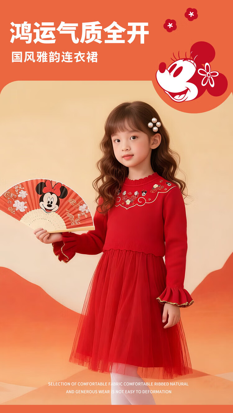Disney (Disney) girls dress new Chinese style red New Year's greeting dress fresh and sweet daily versatile and comfortable for children big red 120