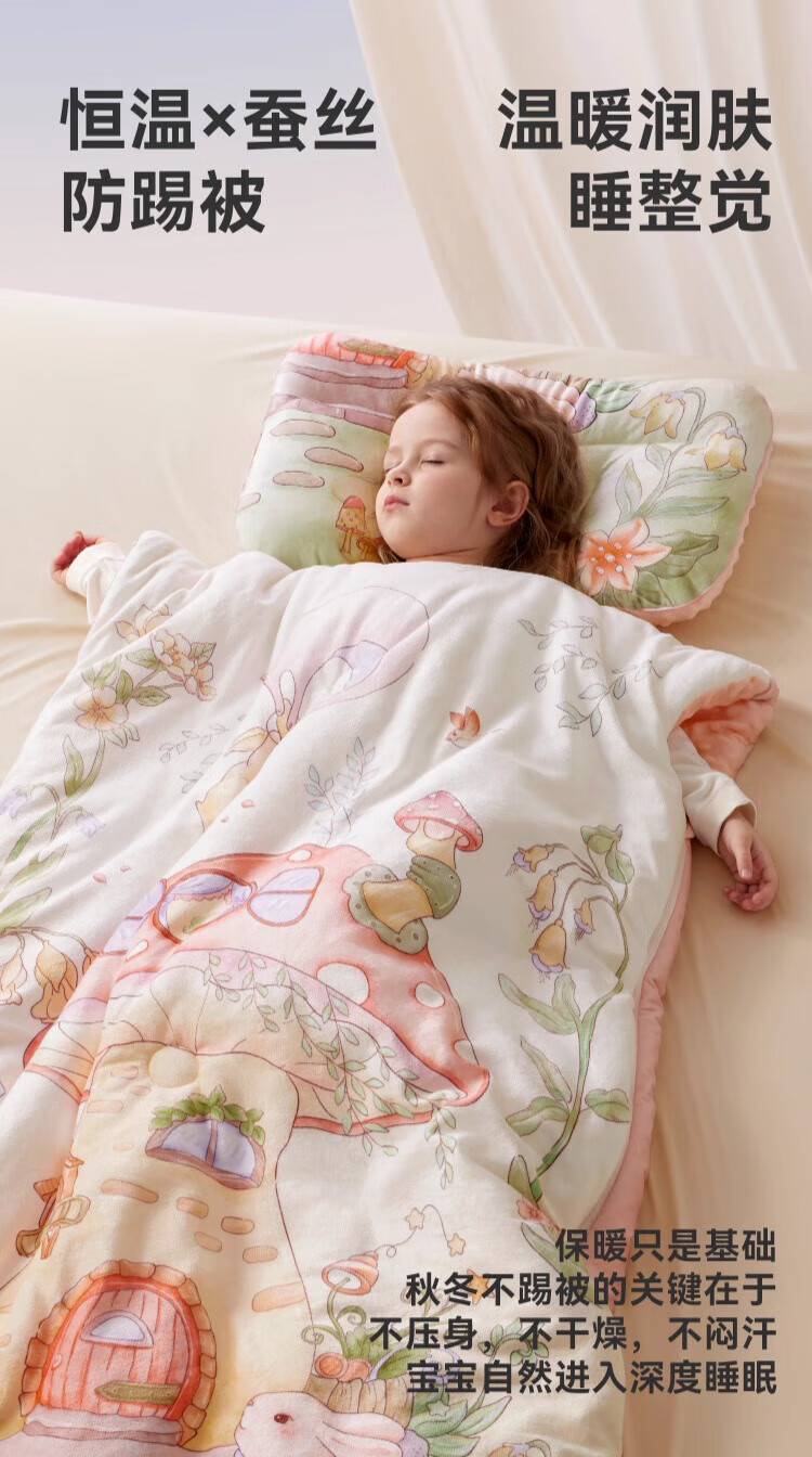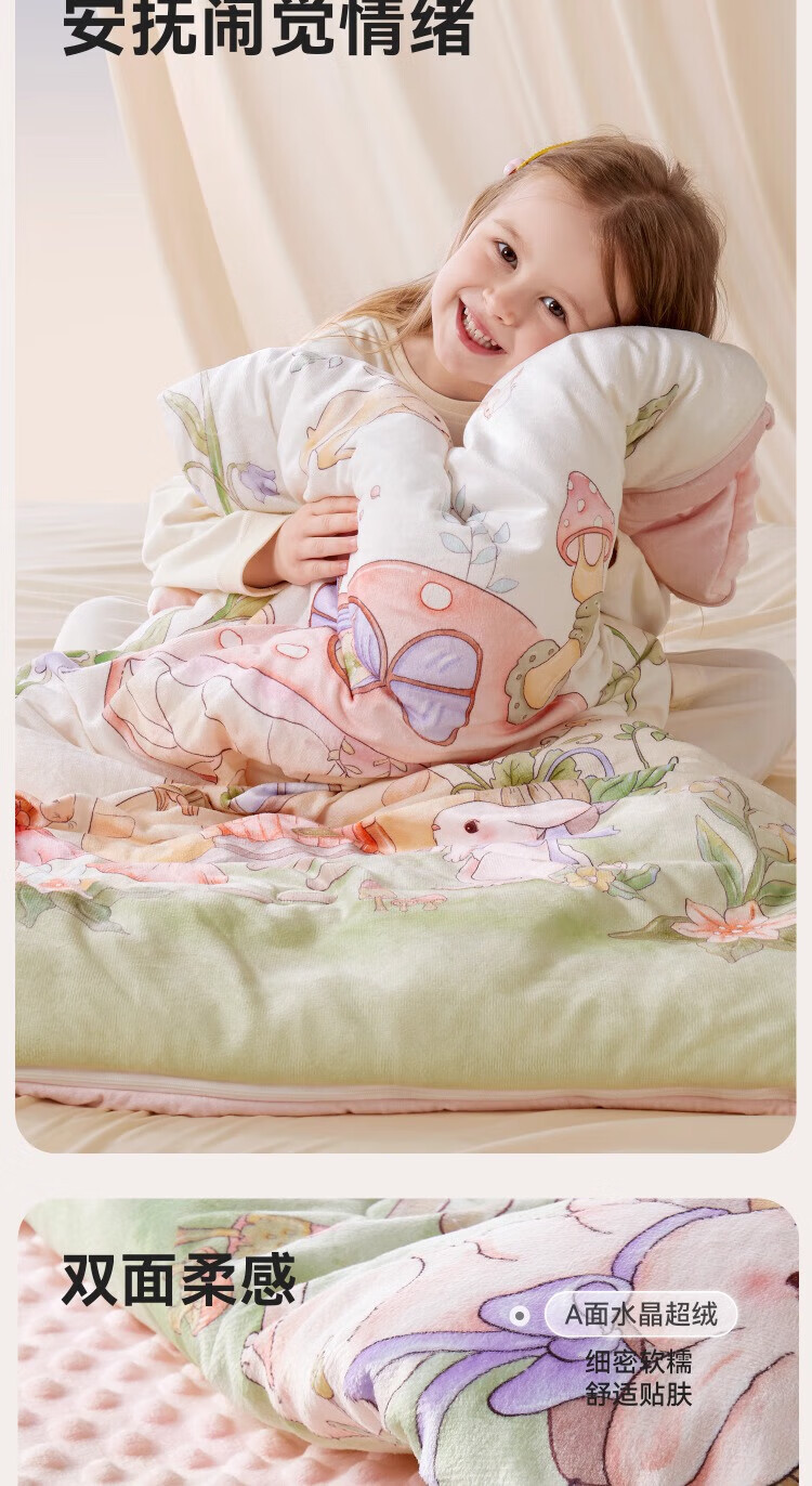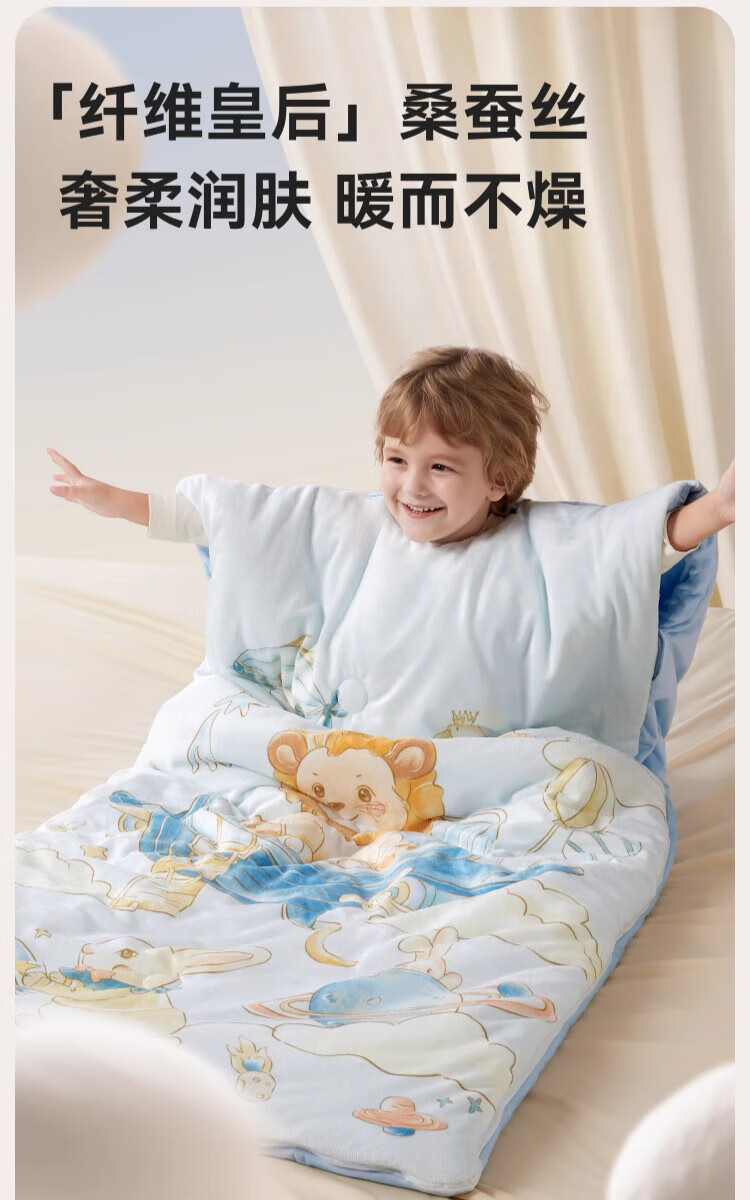 AIBEDILA new product, children's anti-kick quilt, baby sleeping bag, autumn and winter model, constant temperature sleeping thickened, constant temperature, suitable for all seasons, medium-thick model, recommended room temperature 15-25 C, Leon Journey, free same-flower pillow, L size (100*160CM) - suitable for 4-12 years old