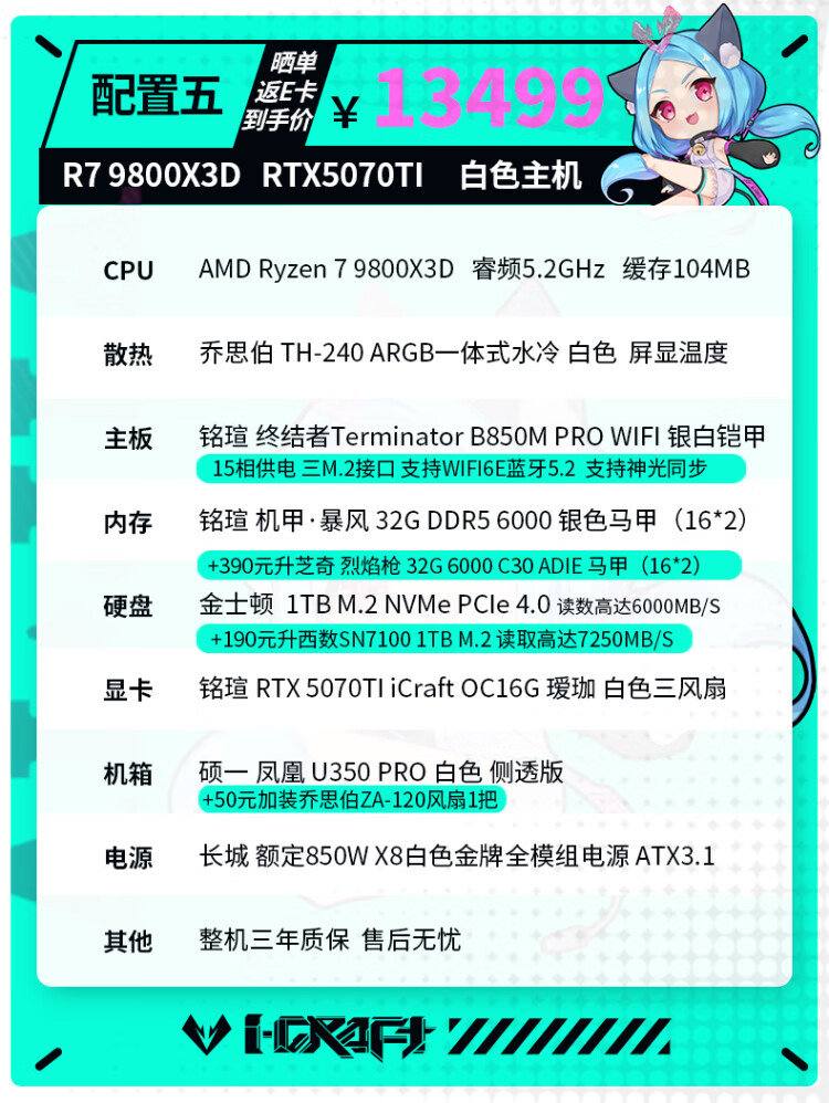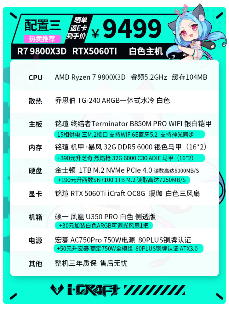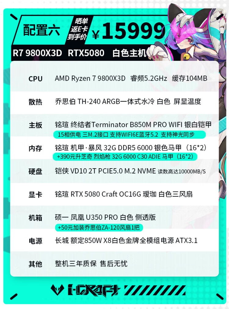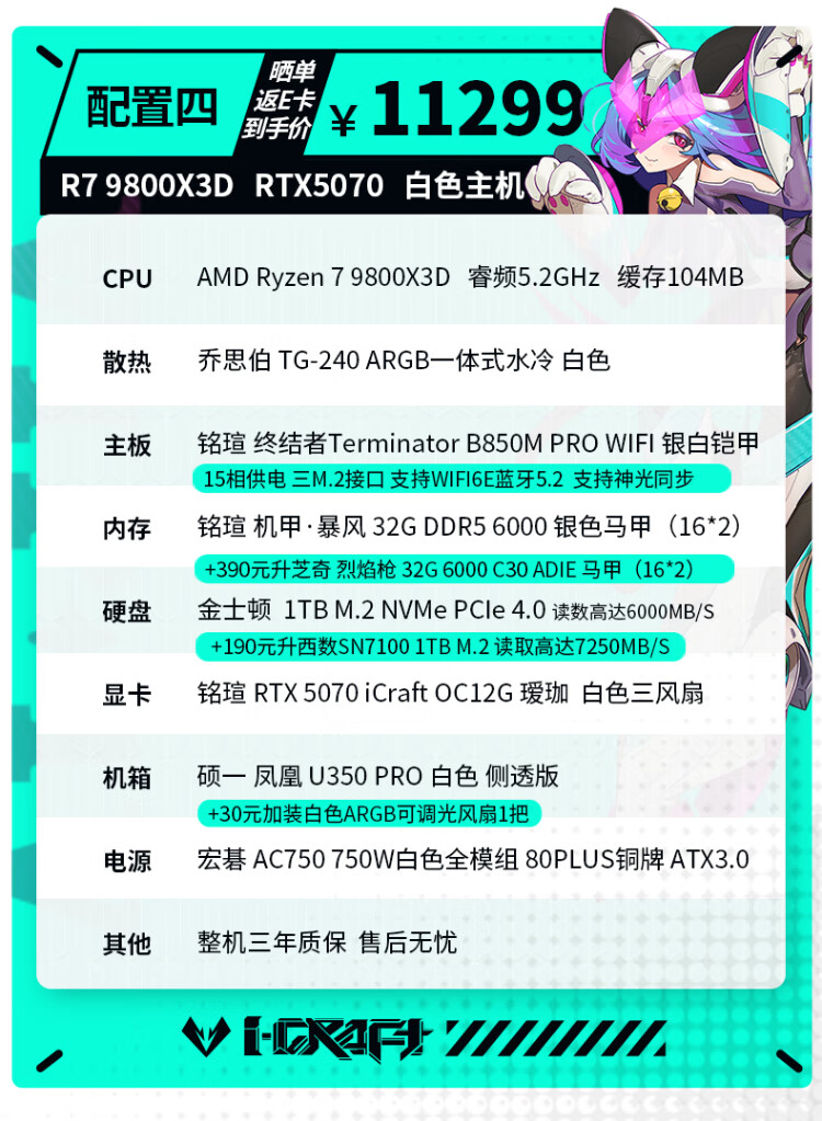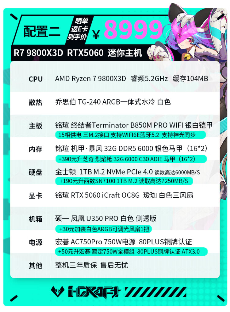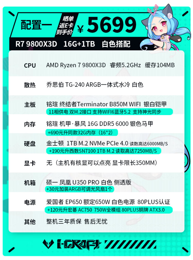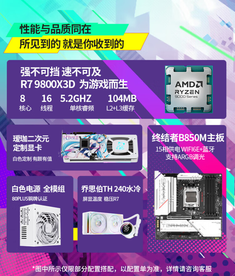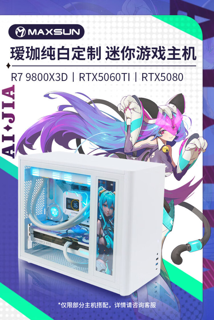 MAXSUN AMD R7 9800X3D/RTX5080/5070/5060TI Aijia pure white mini desktop assembly computer host e-sports game live rendering DIY design complete machine configuration 丨 R7 9800X3D 丨 barebones