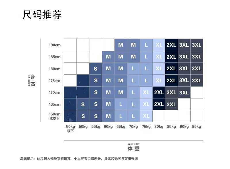 China (cm) 165 / 88-90 170 / 96-98 175 / 108-110 180 / 118-122 185 / 126-130