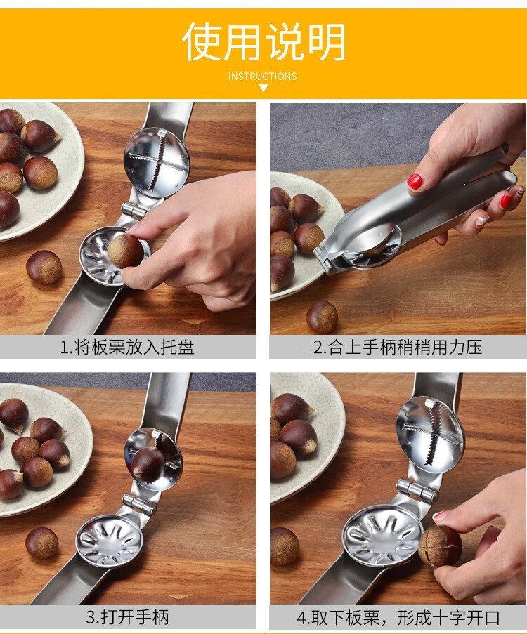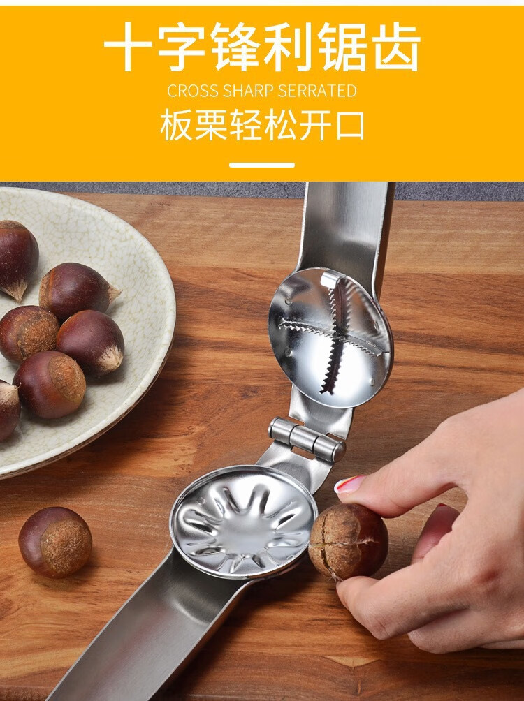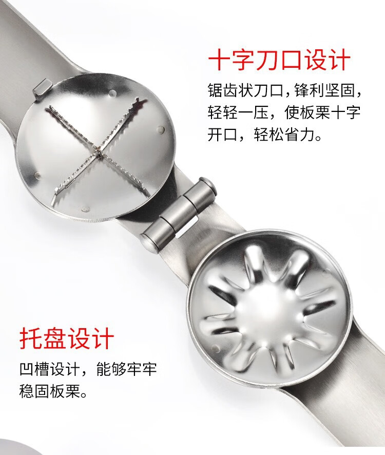 Chestnut opener cross 304 stainless steel chestnut peeling artifact peeler clip household raw chestnut opening machine classic 304 chestnut clip-1 pack