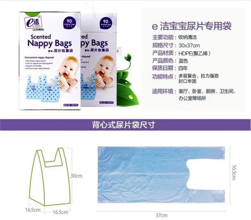 Baby diaper collection bag, baby diaper collection bag, scented diaper bag, infant diapers, diaper waste, 1 box (90 pieces), thickened
