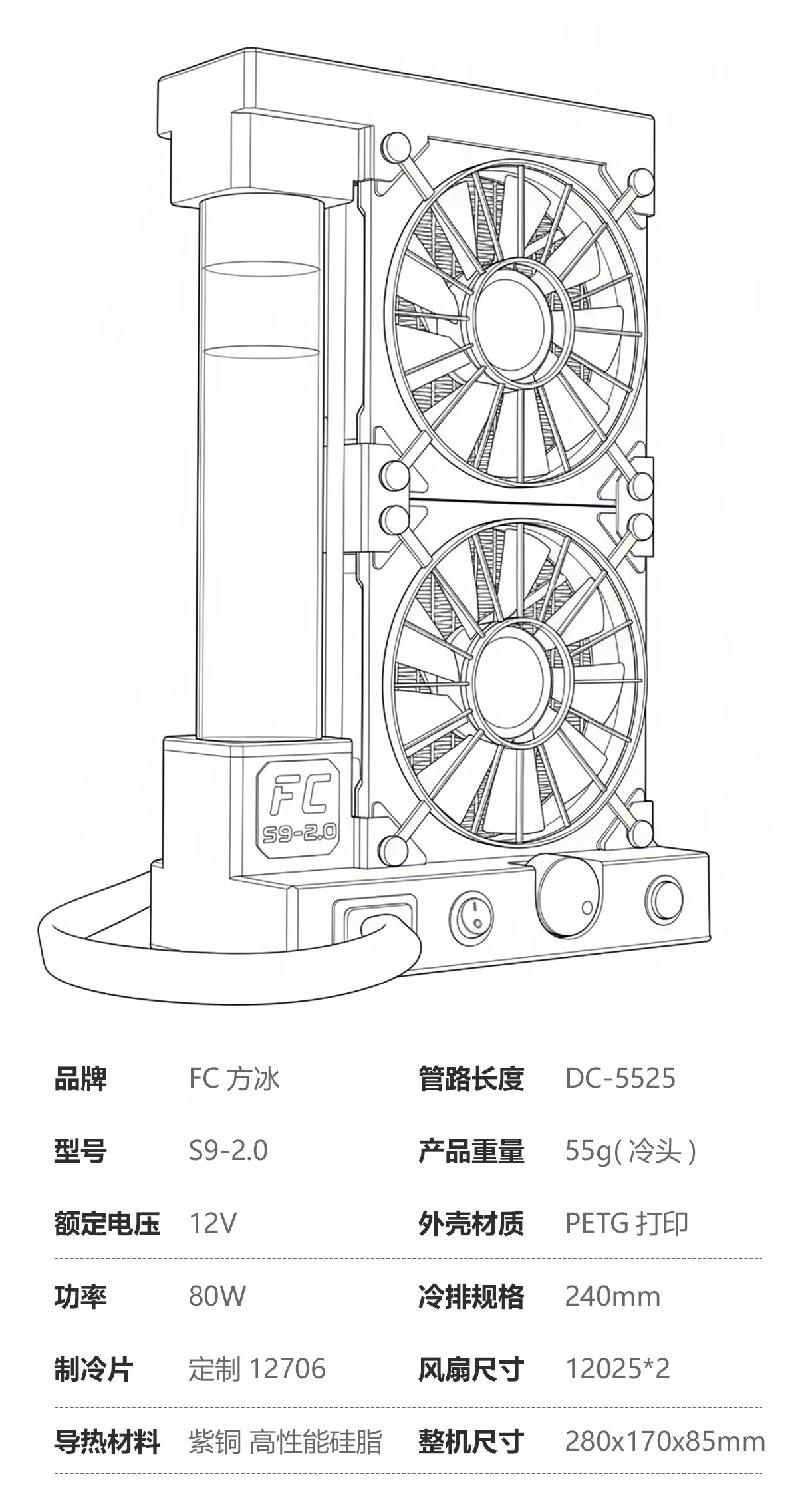 FROSTY COOL liquid cooling S9-2.0 square ice FC water cooling radiator semiconductor refrigeration high power heat dissipation ARGB mobile phone tablet S9-2.0 round head