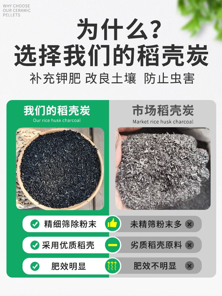 稻壳炭钾肥花用纯草木灰肥料杀虫谷壳碳发酵腐熟砻糠钾肥花用多肉 小颗粒稻壳炭20斤