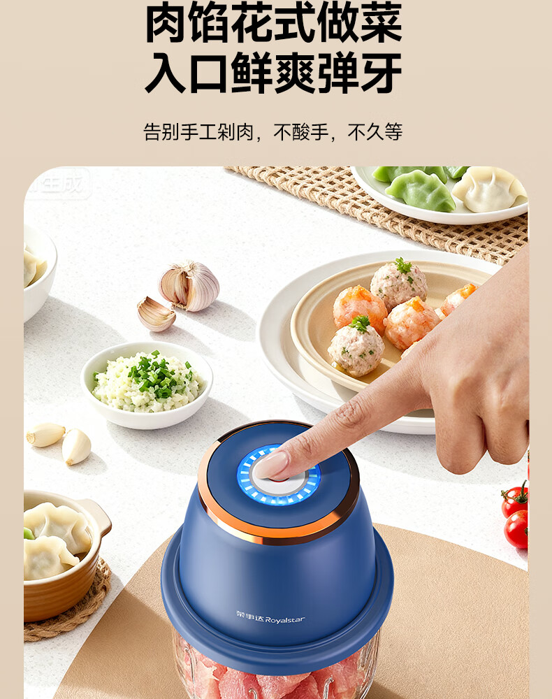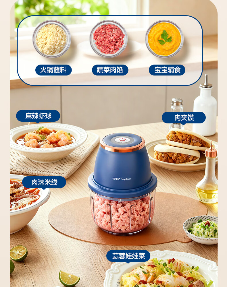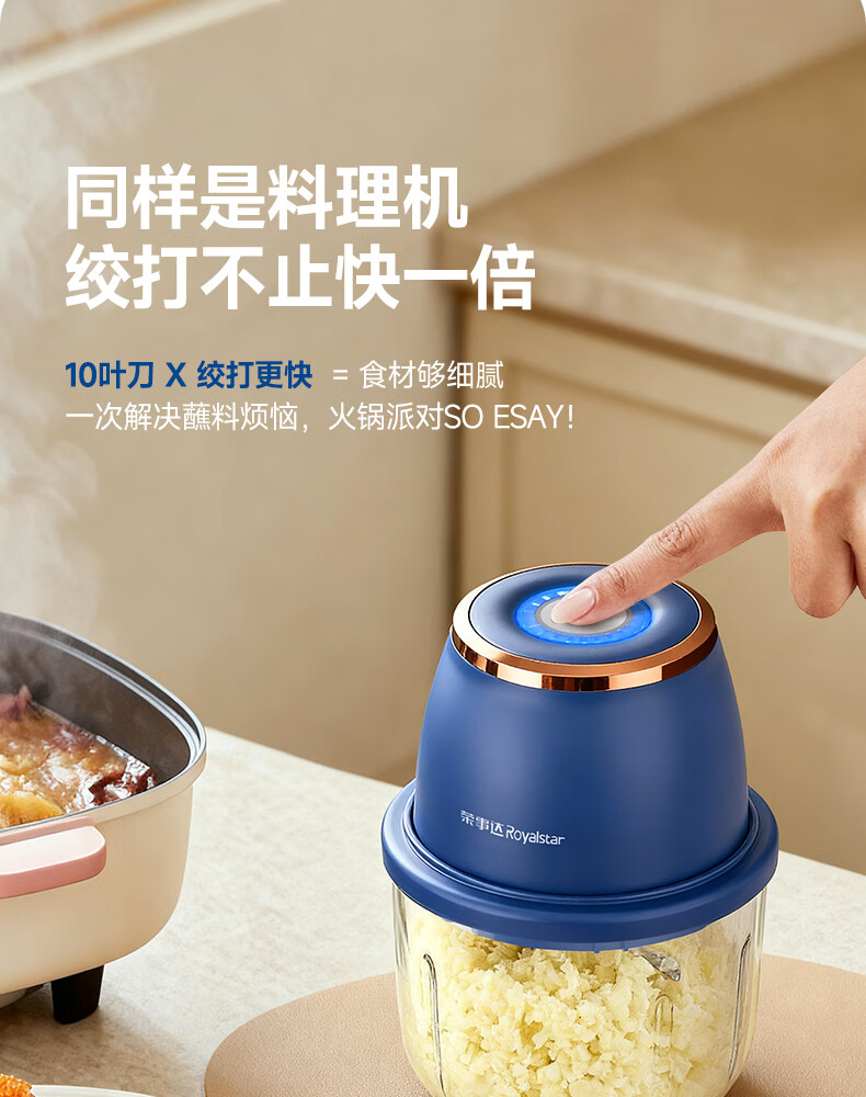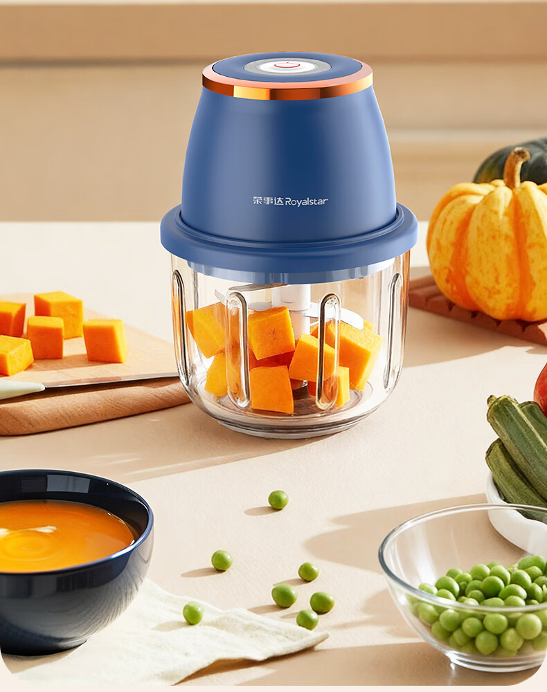 Royalstar garlic pounder electric garlic mashed artifact small meat grinder household garlic press garlic masher garlic garlic masher glass cup large ten-leaf knife 350 ml
